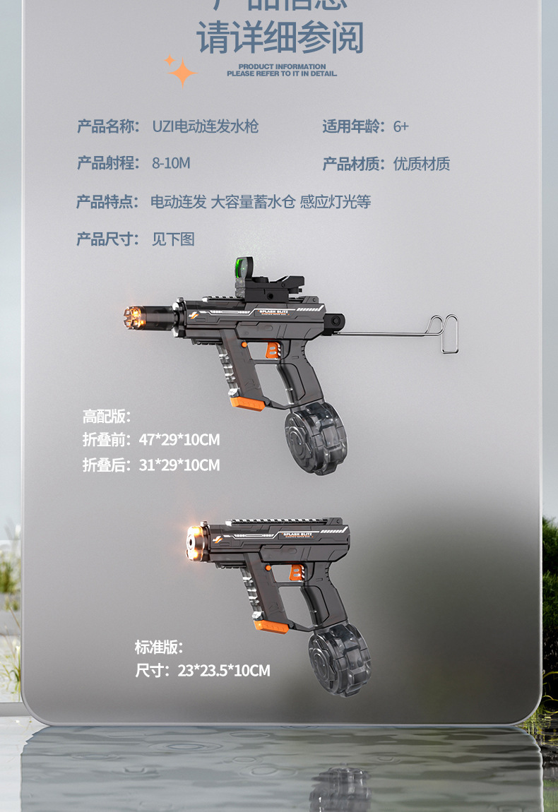 • KB347 연동 UZI 물총-투명 블랙 [전자상거래 박스] 확장 버전