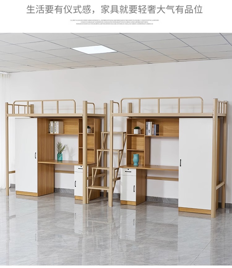 침대와 테이블 조합 침대 학교 기숙사 대학생 높은 침대와 하단 캐비닛 철제 침대 직원 아파트 싱글 침대스토어 가기