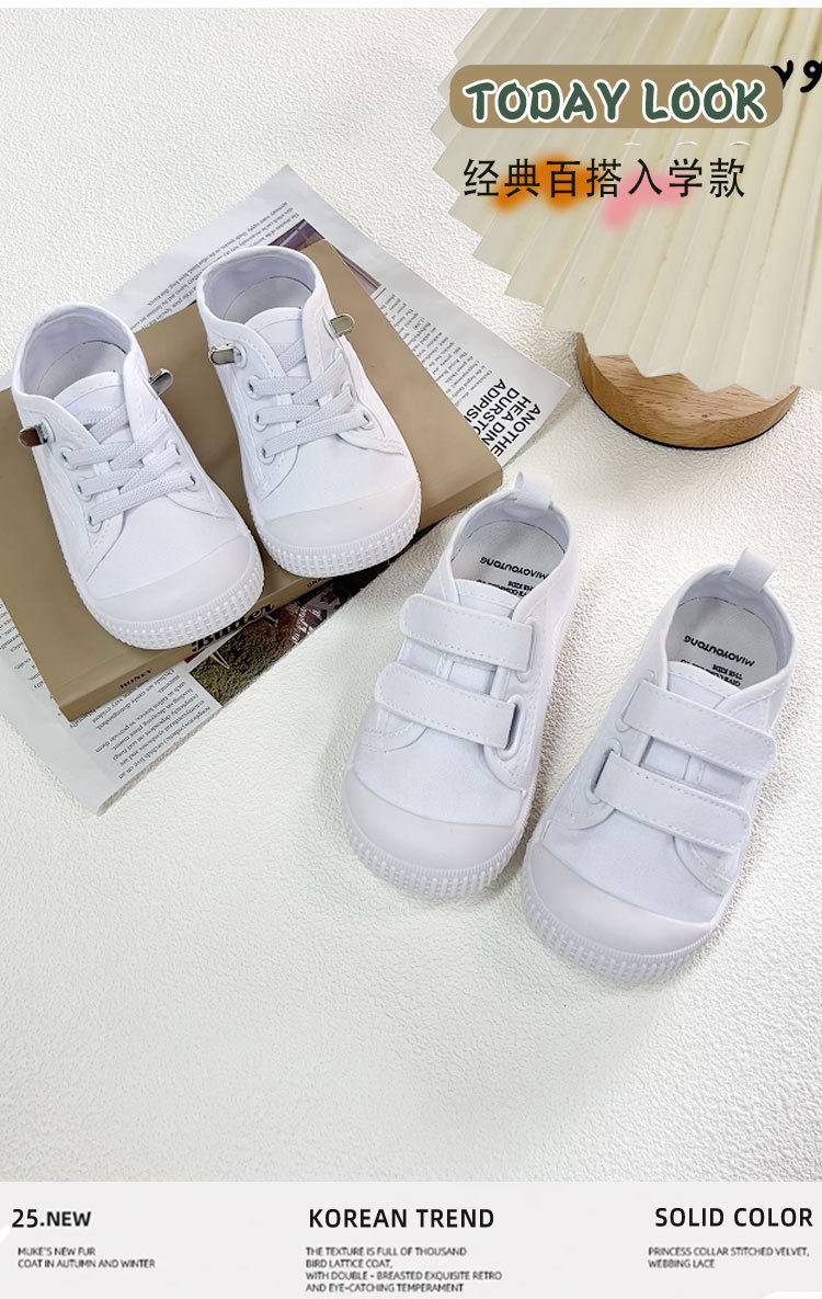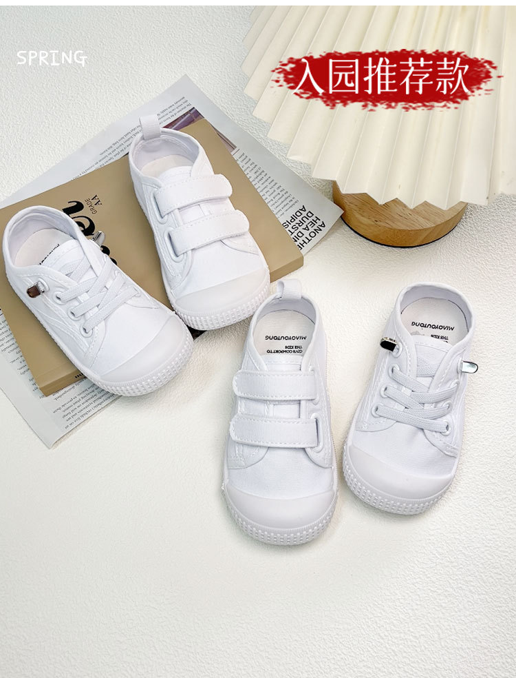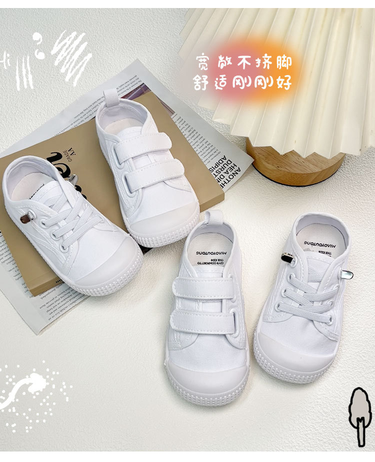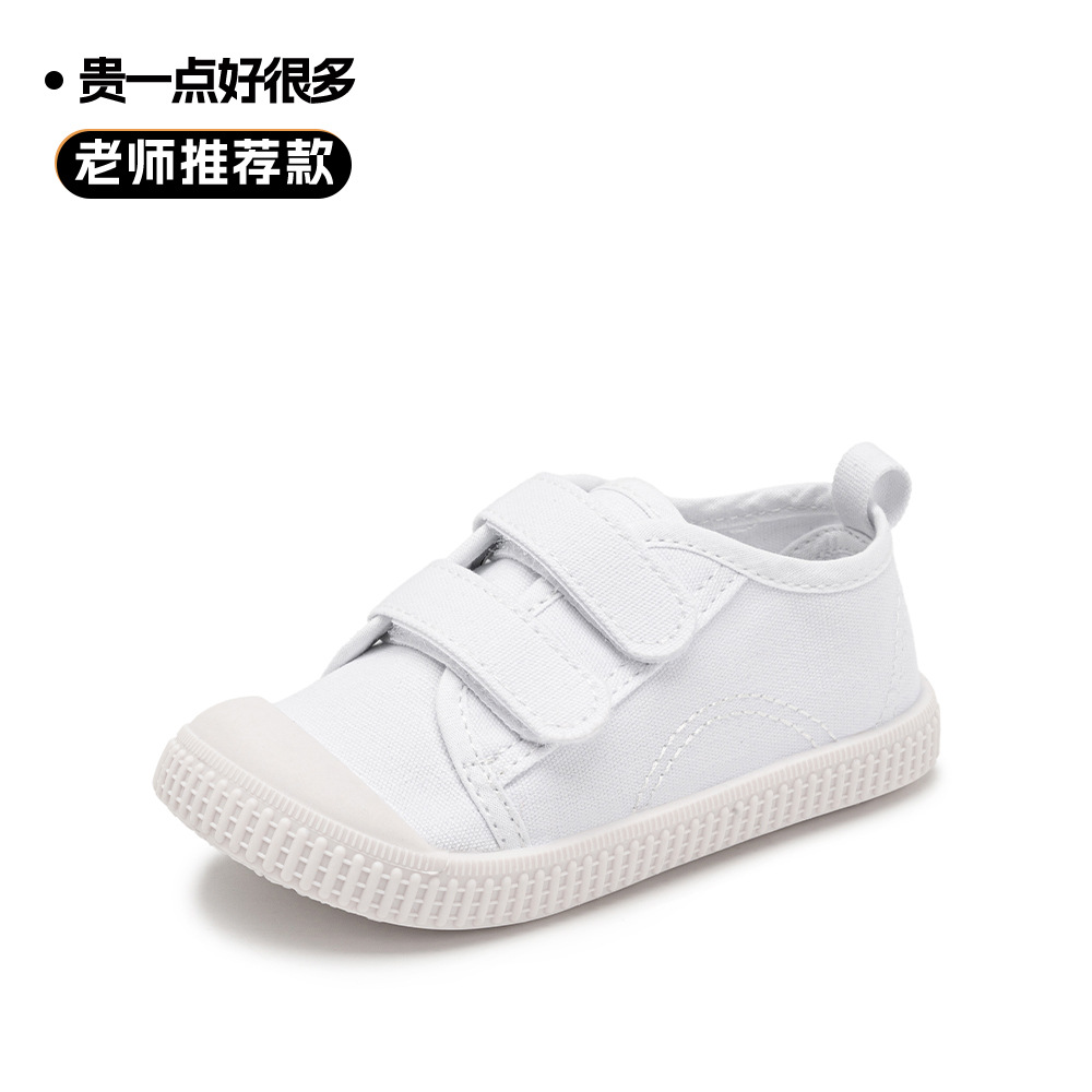 어린이 흰색 신발 여름 유치원 실내 부드러운 밑창 어린이 신발 벨크로 아기 캔버스 신발 슬립 온 운동화스토어 가기