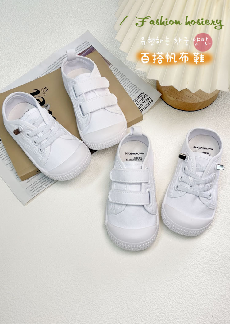 어린이 흰색 신발 여름 유치원 실내 부드러운 밑창 어린이 신발 벨크로 아기 캔버스 신발 슬립 온 운동화