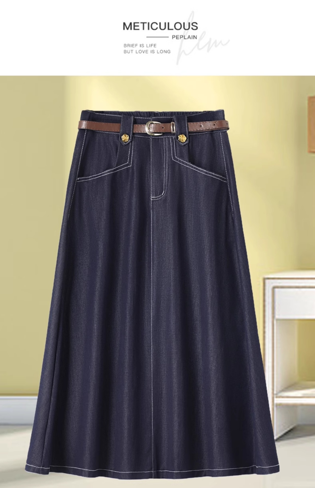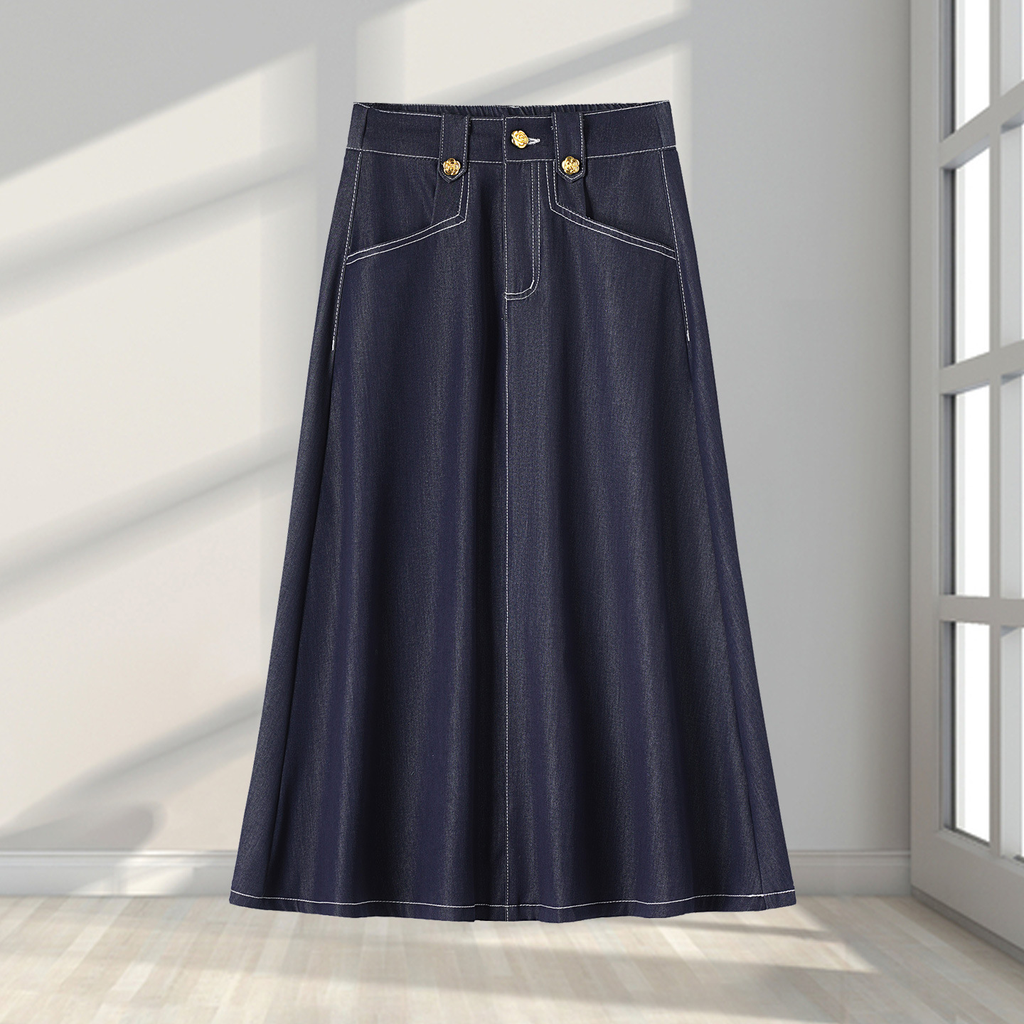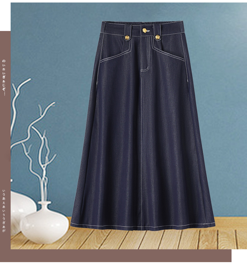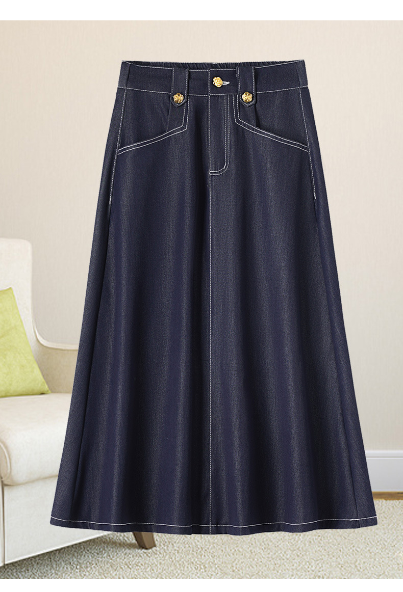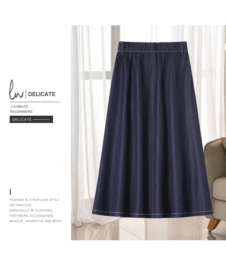 데님 블루 여름 얇은 데님 스커트 여성 2025 패션 새로운 캐주얼 스커트 탄성 높은 허리 a 라인 롱 스커트스토어 가기