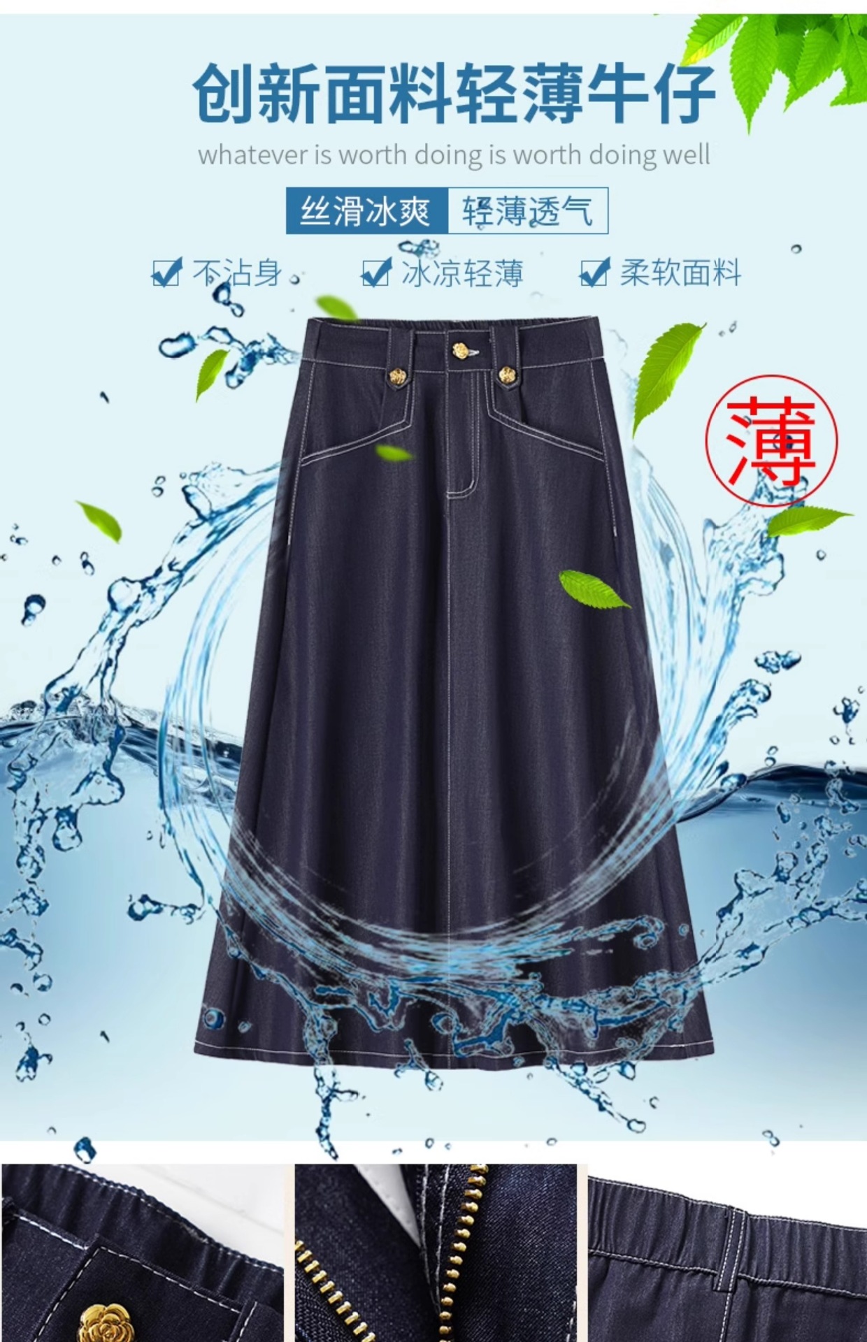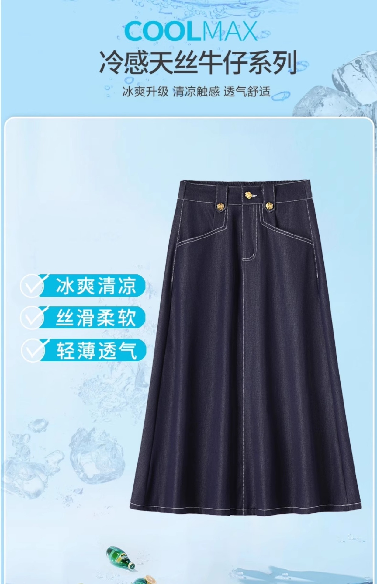 데님 블루 여름 얇은 데님 스커트 여성 2025 패션 새로운 캐주얼 스커트 탄성 높은 허리 a 라인 롱 스커트