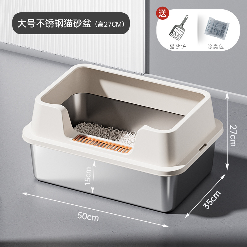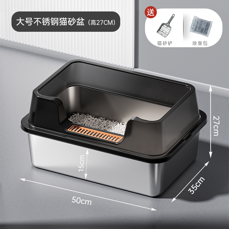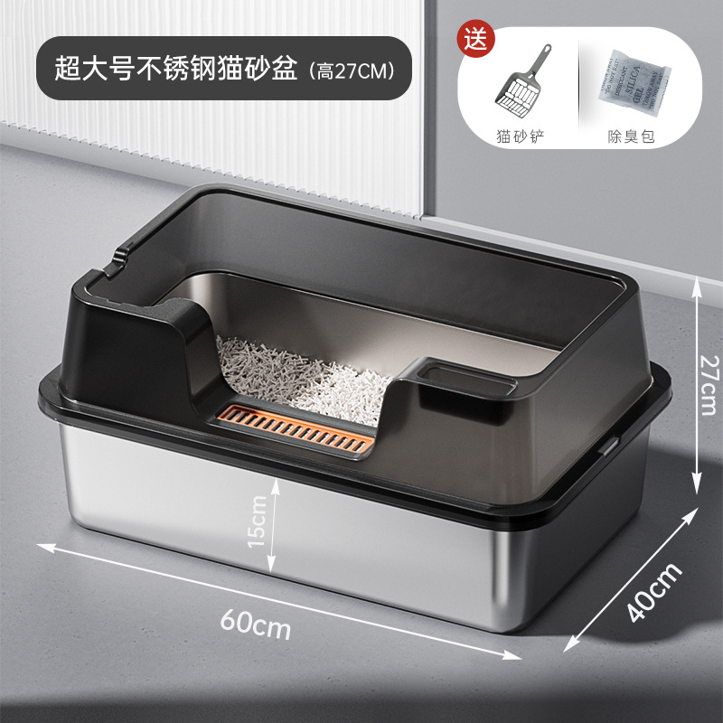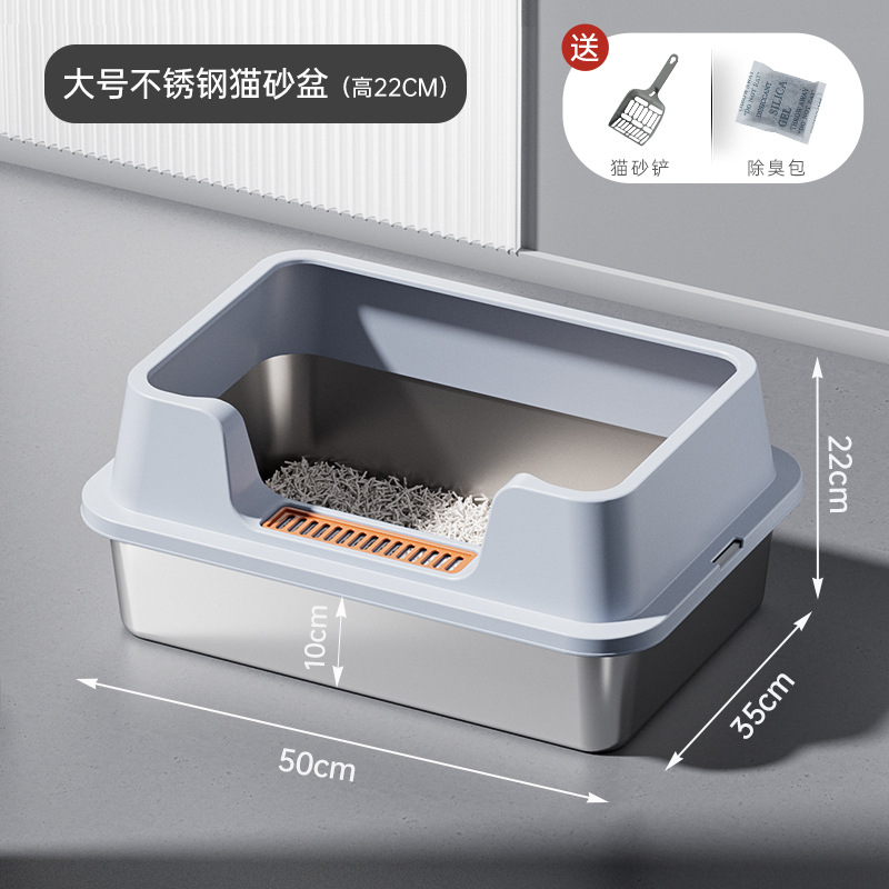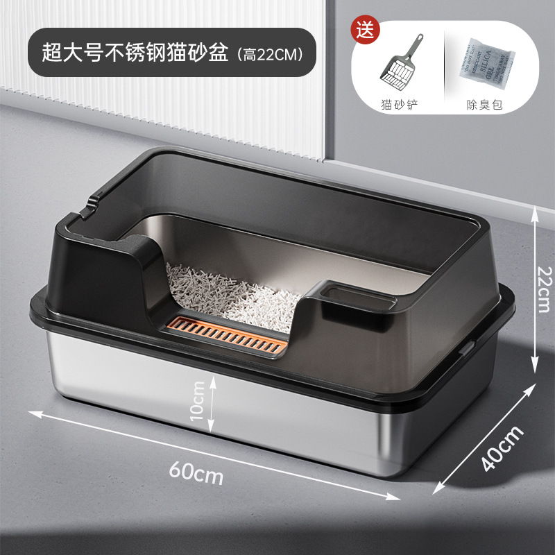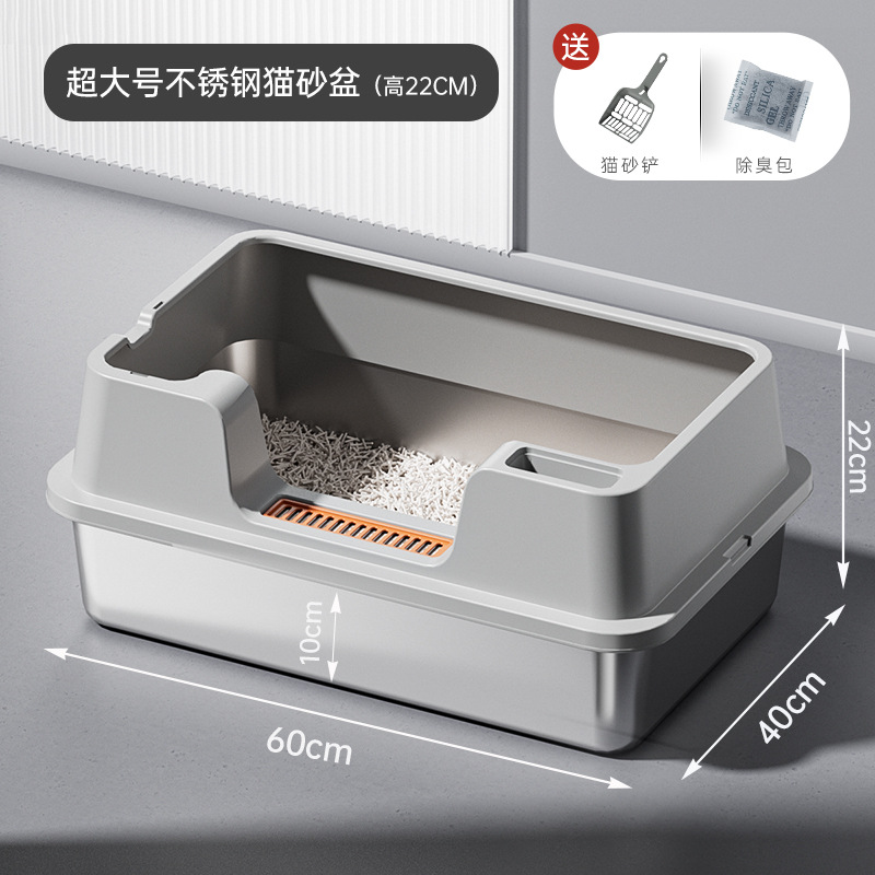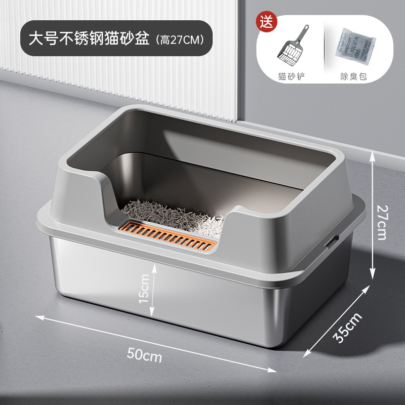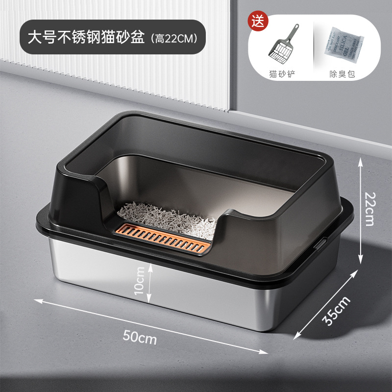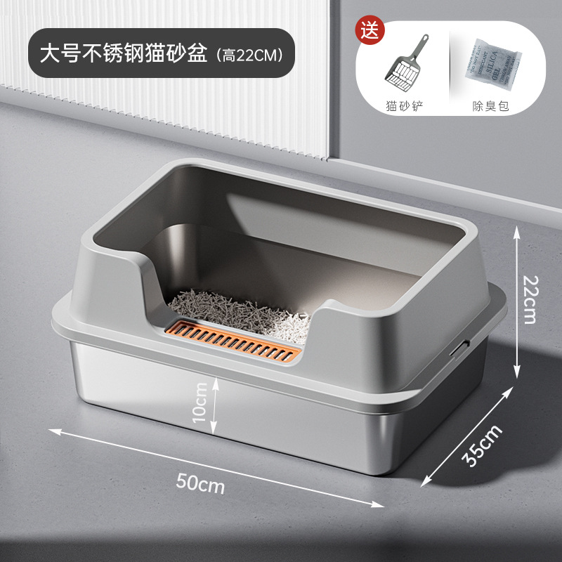 스테인레스 스틸 고양이 쓰레기 상자 개방형 높은 울타리 초대형 안티 스플래시 깊은 반 밀폐형 고양이 화장실 애완 동물 용품스토어 가기