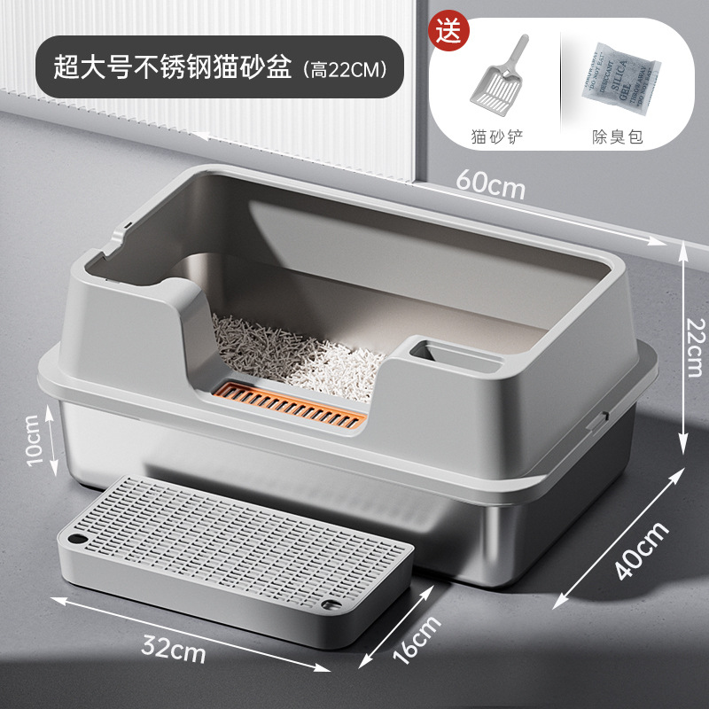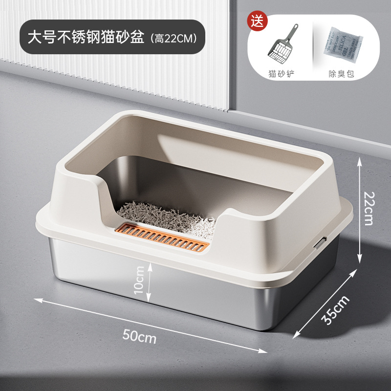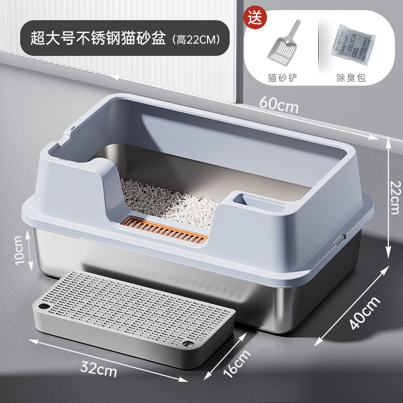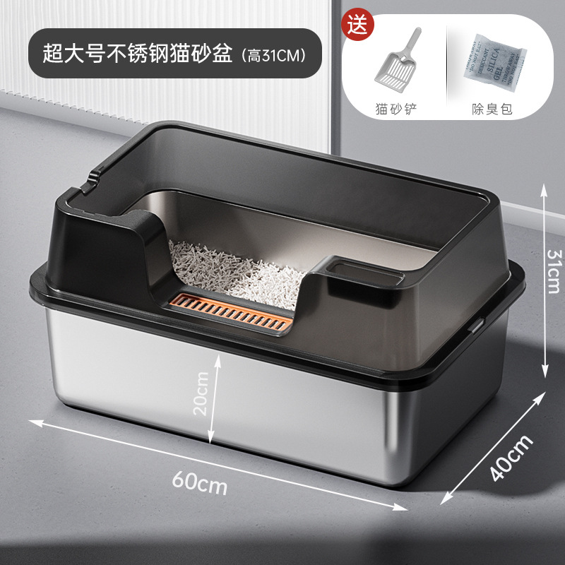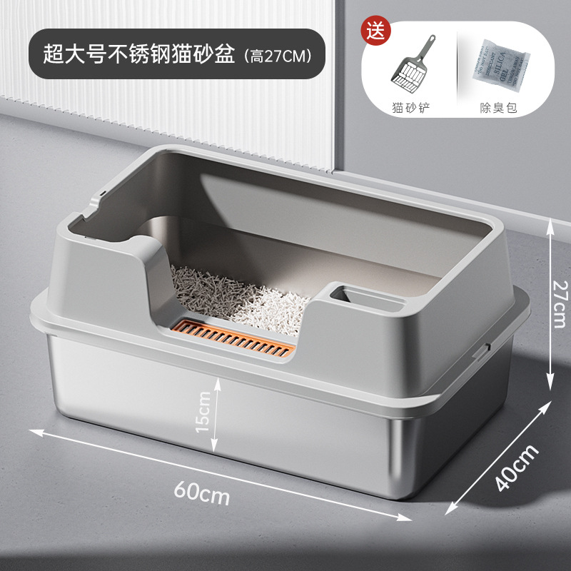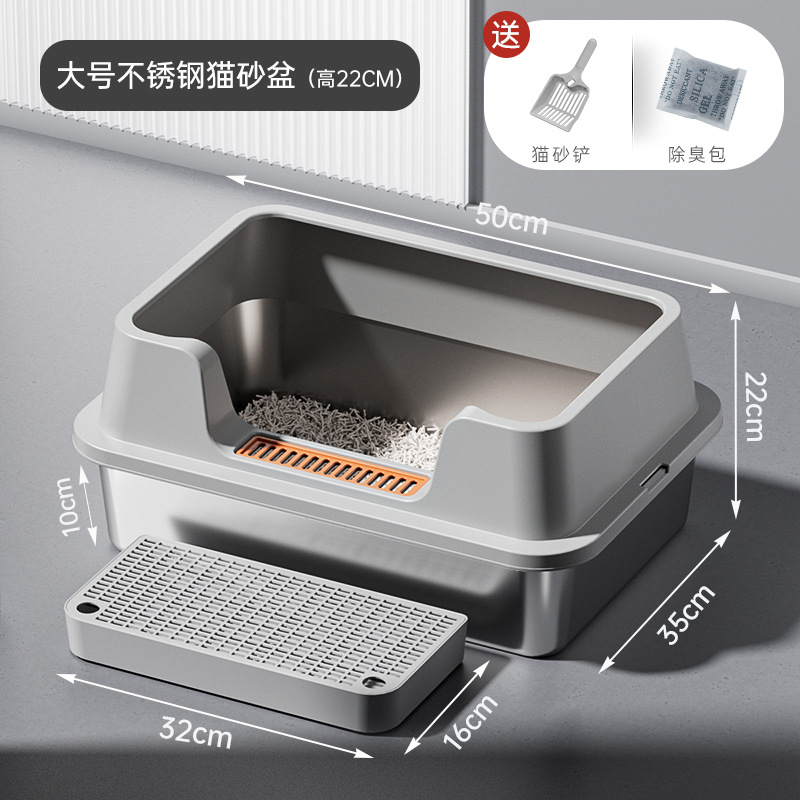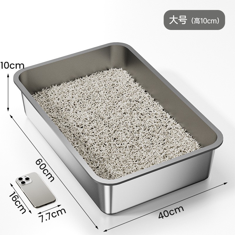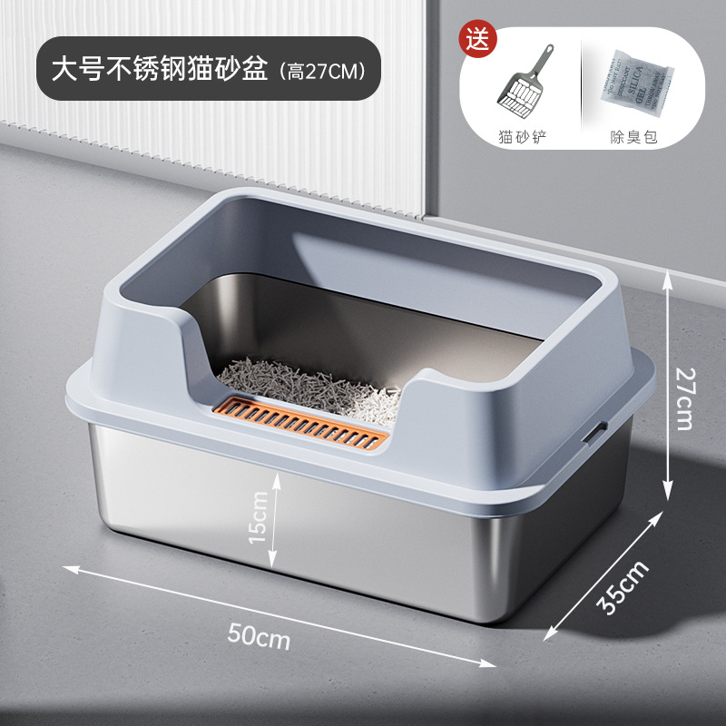 스테인레스 스틸 고양이 쓰레기 상자 개방형 높은 울타리 초대형 안티 스플래시 깊은 반 밀폐형 고양이 화장실 애완 동물 용품스토어 가기