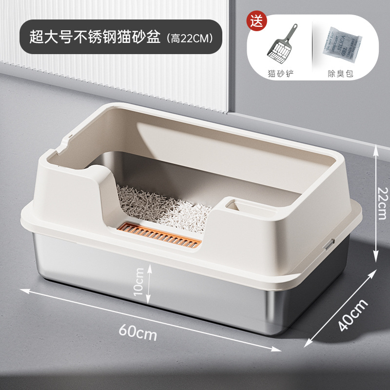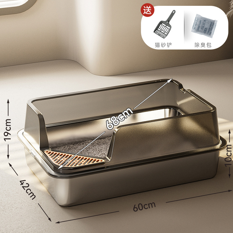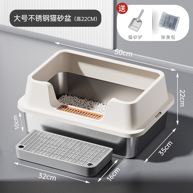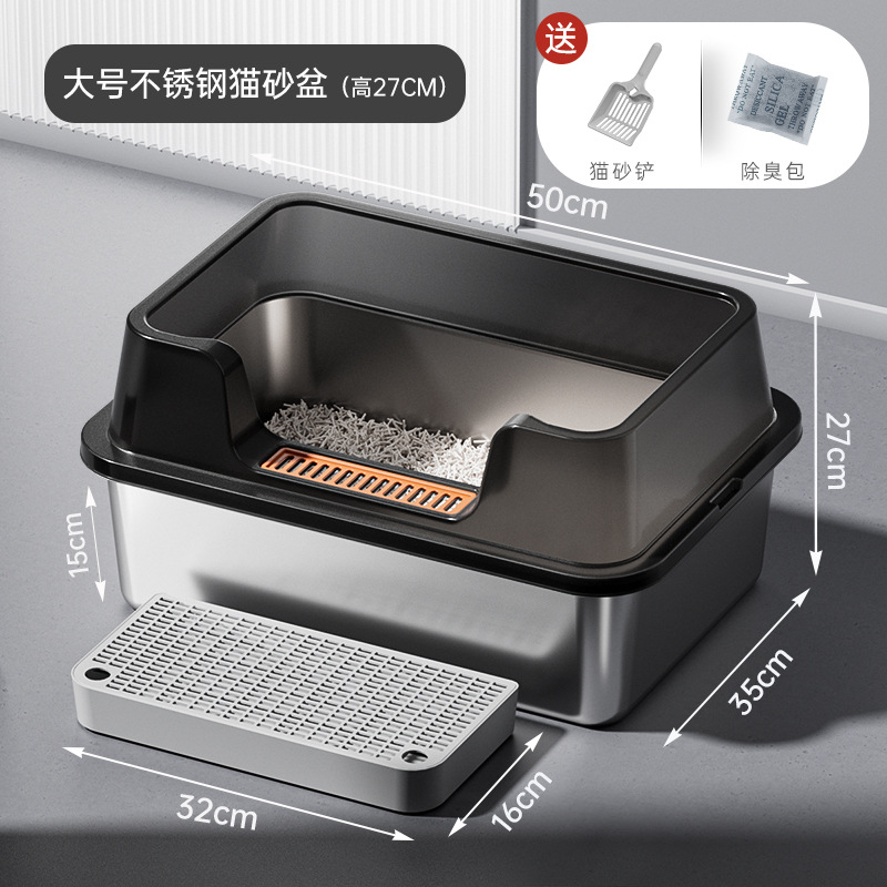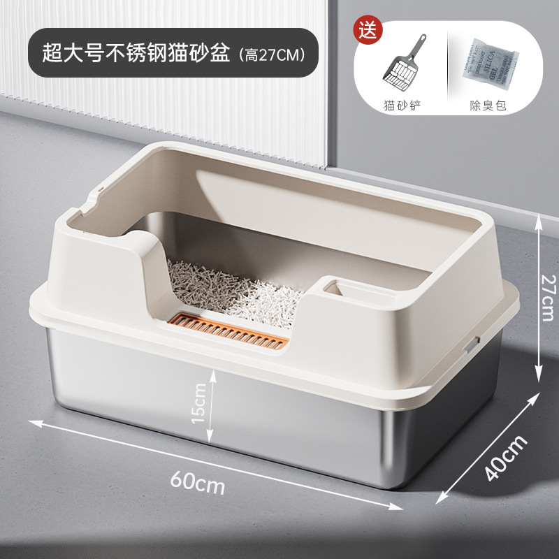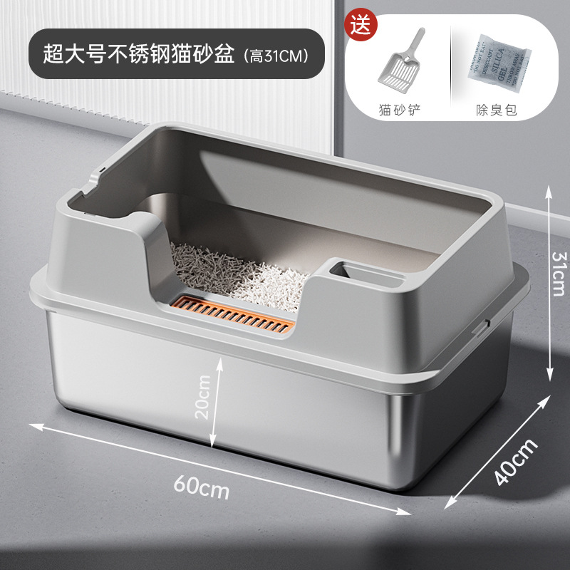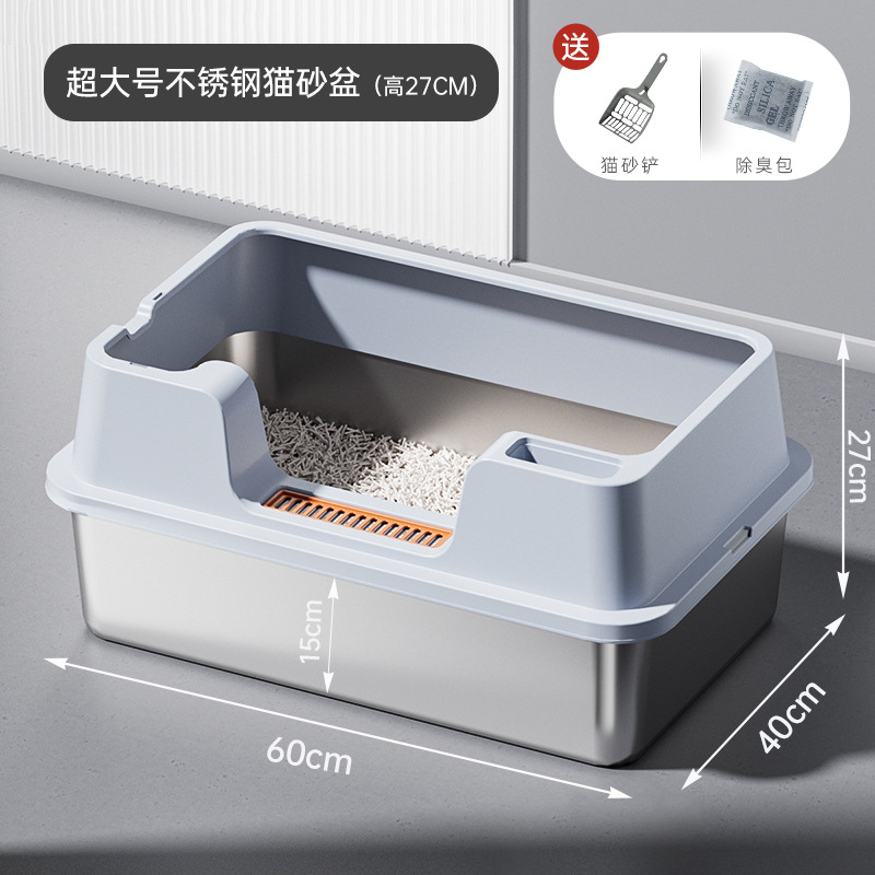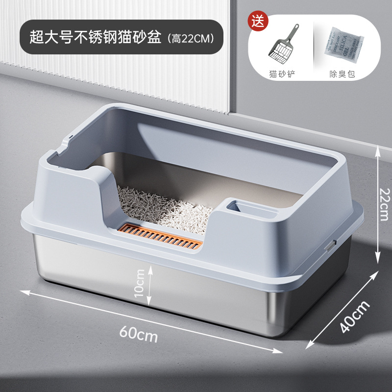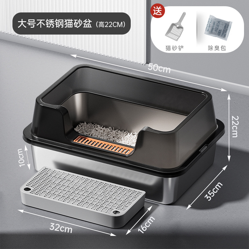 스테인레스 스틸 고양이 쓰레기 상자 개방형 높은 울타리 초대형 안티 스플래시 깊은 반 밀폐형 고양이 화장실 애완 동물 용품스토어 가기