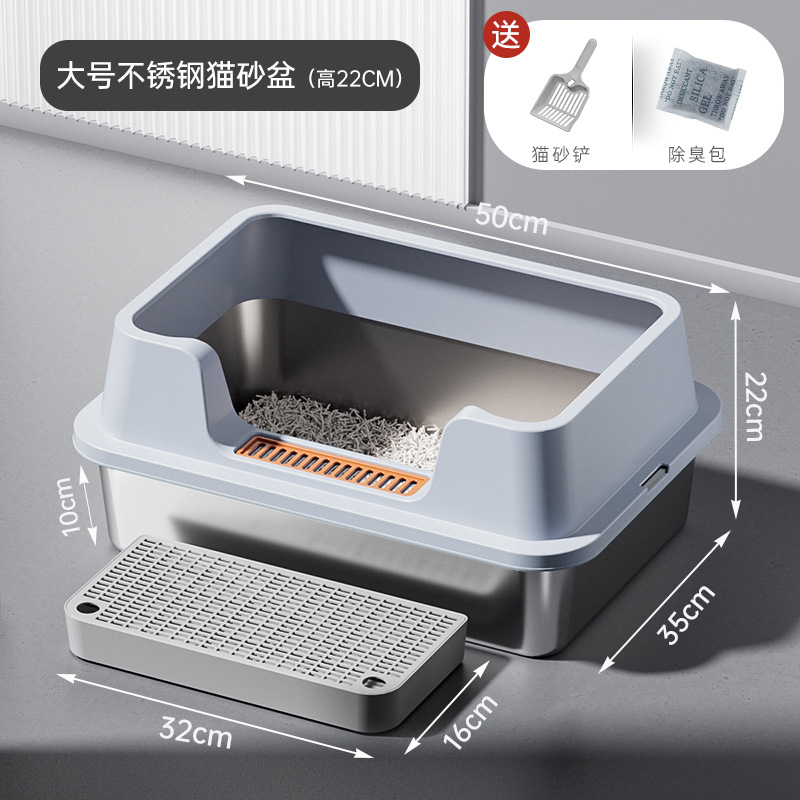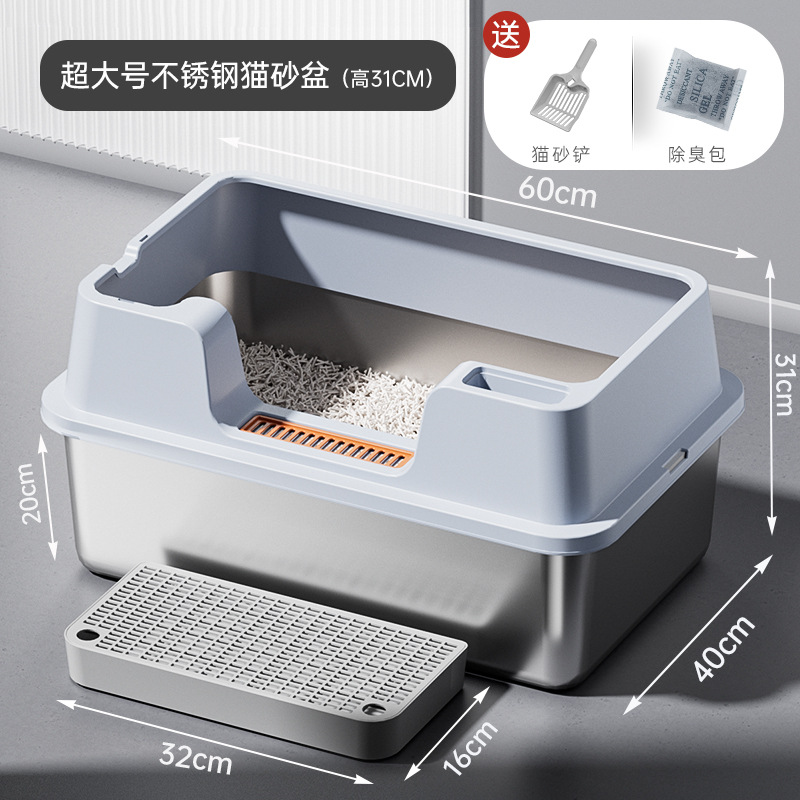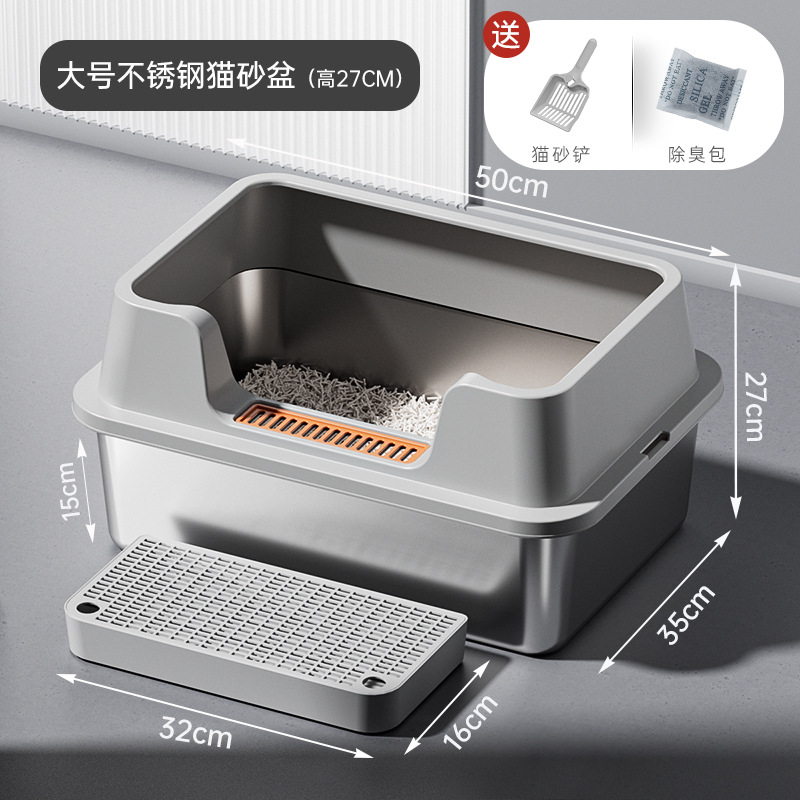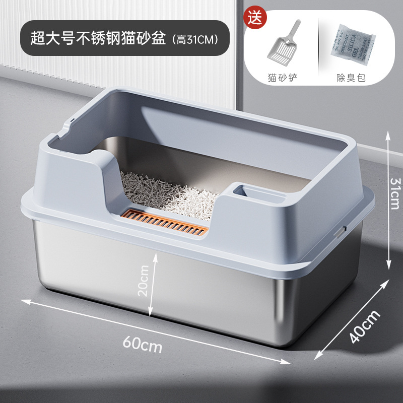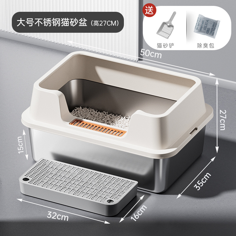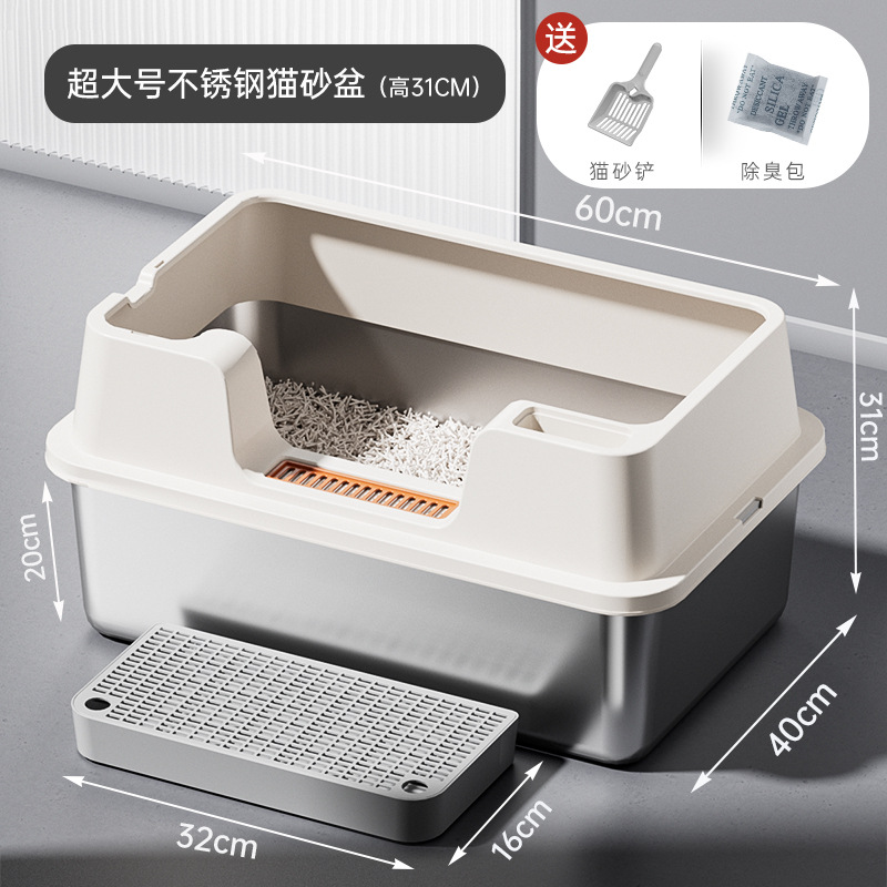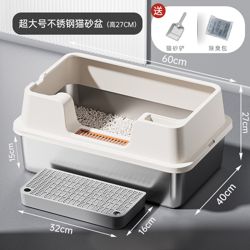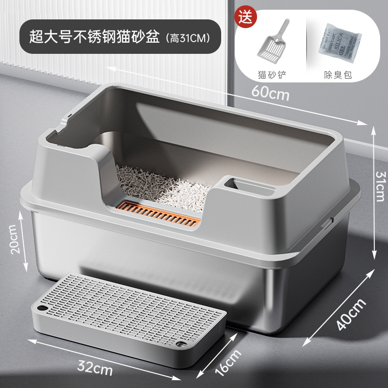 스테인레스 스틸 고양이 쓰레기 상자 개방형 높은 울타리 초대형 안티 스플래시 깊은 반 밀폐형 고양이 화장실 애완 동물 용품스토어 가기
