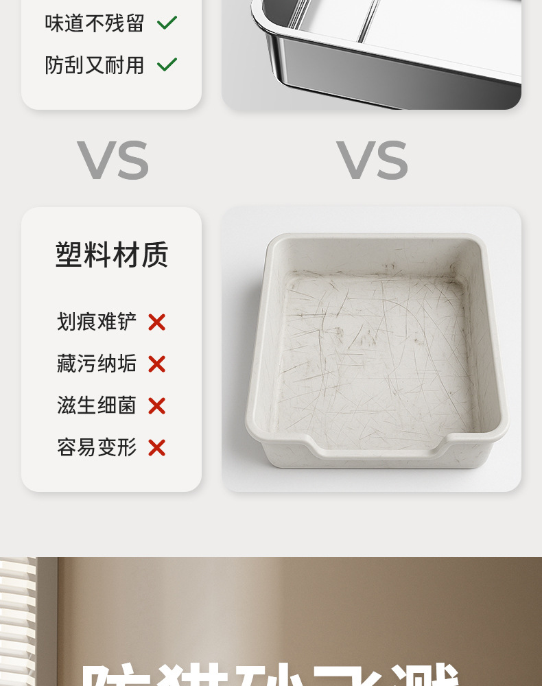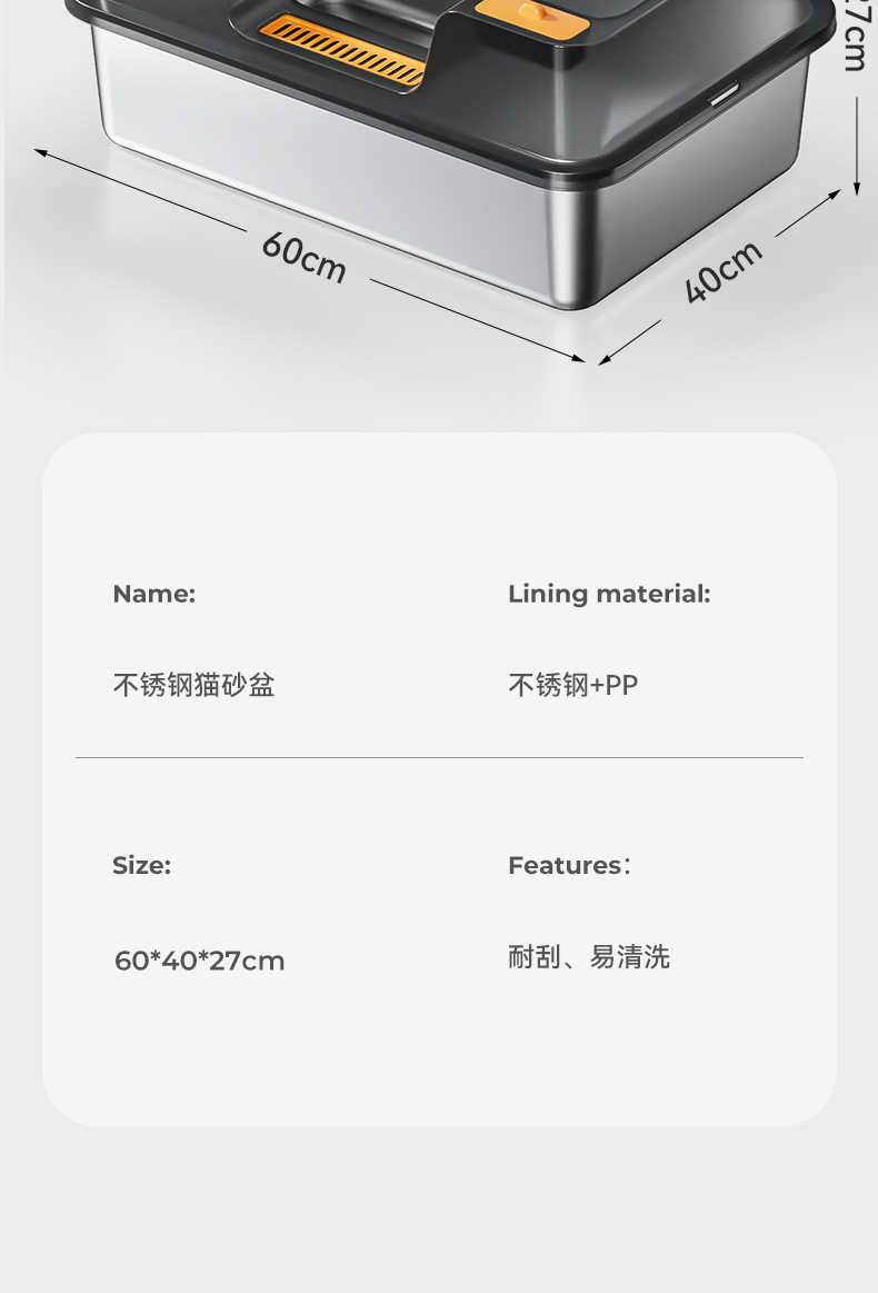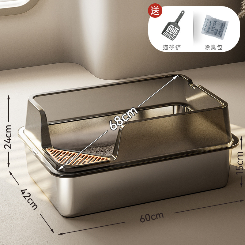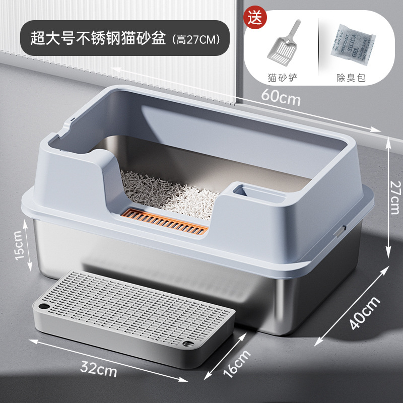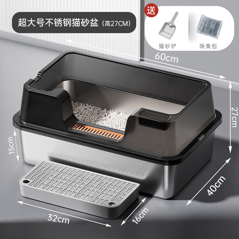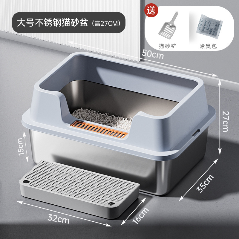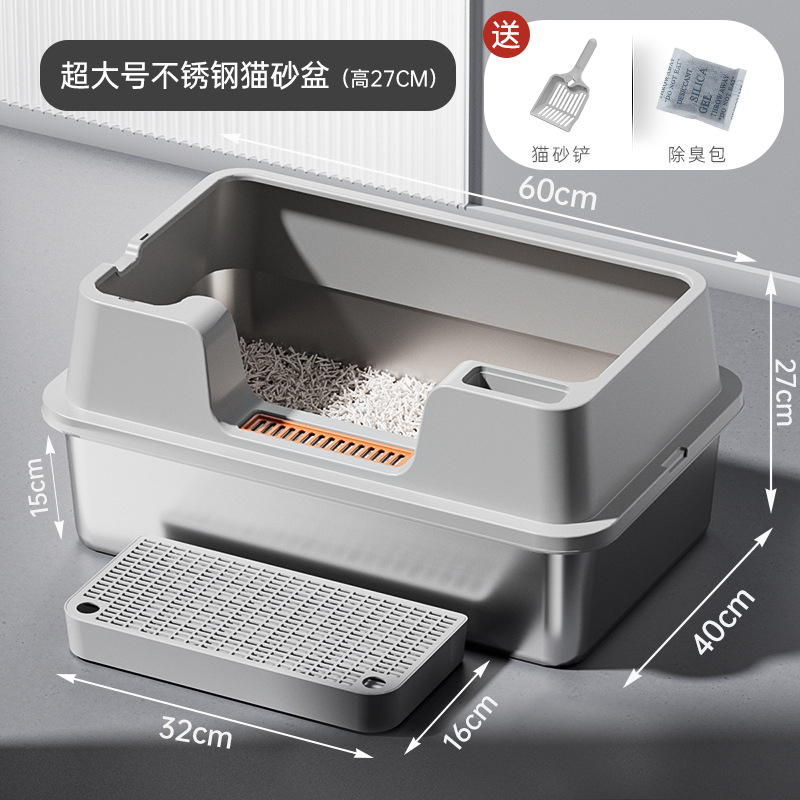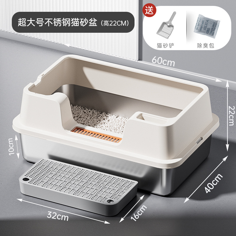 스테인레스 스틸 고양이 쓰레기 상자 개방형 높은 울타리 초대형 안티 스플래시 깊은 반 밀폐형 고양이 화장실 애완 동물 용품스토어 가기