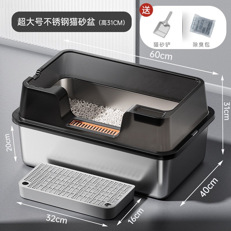 스테인레스 스틸 고양이 쓰레기 상자 개방형 높은 울타리 초대형 안티 스플래시 깊은 반 밀폐형 고양이 화장실 애완 동물 용품