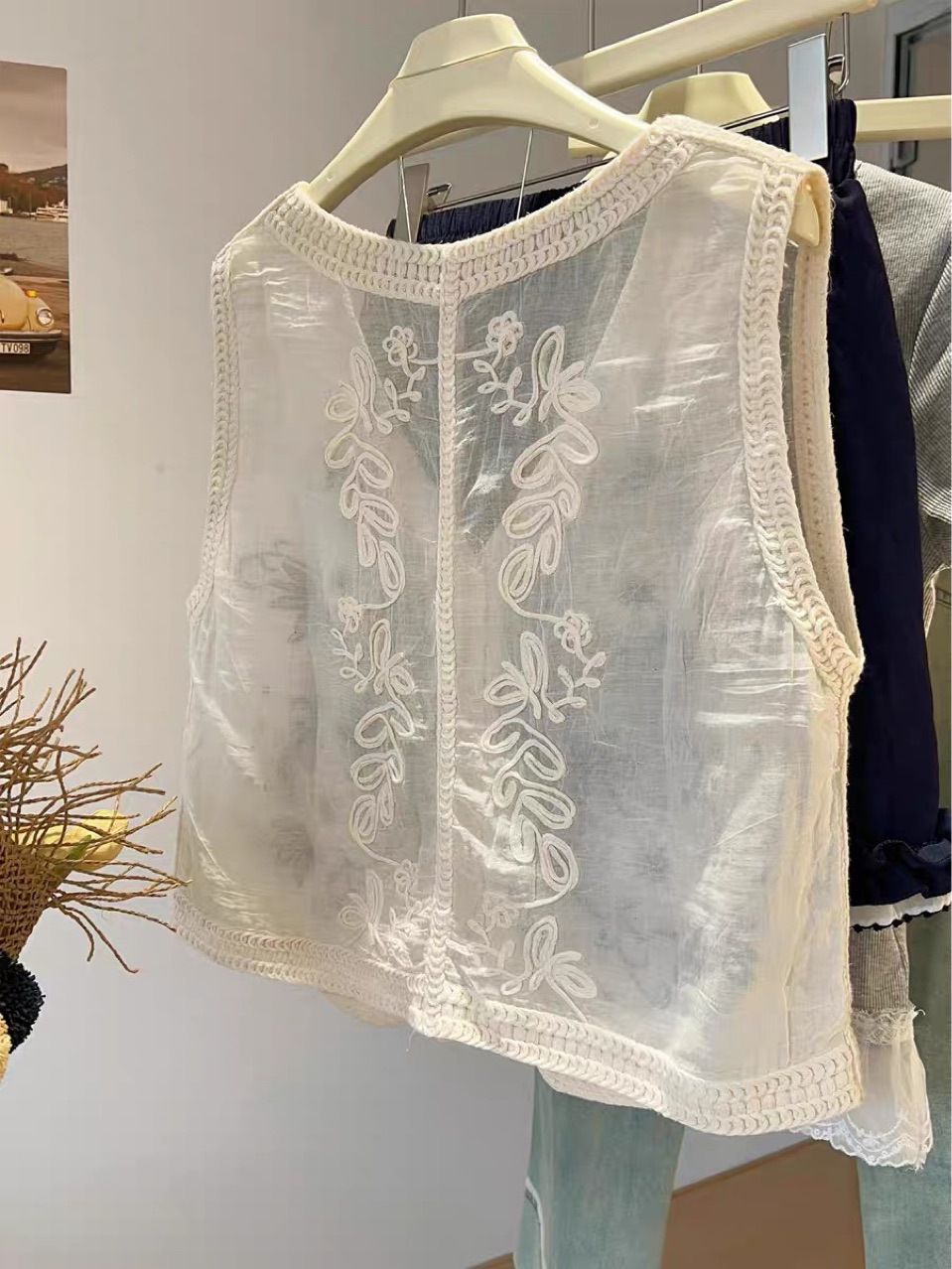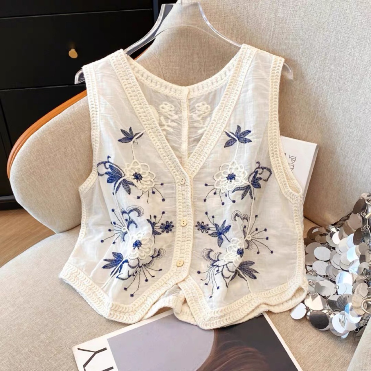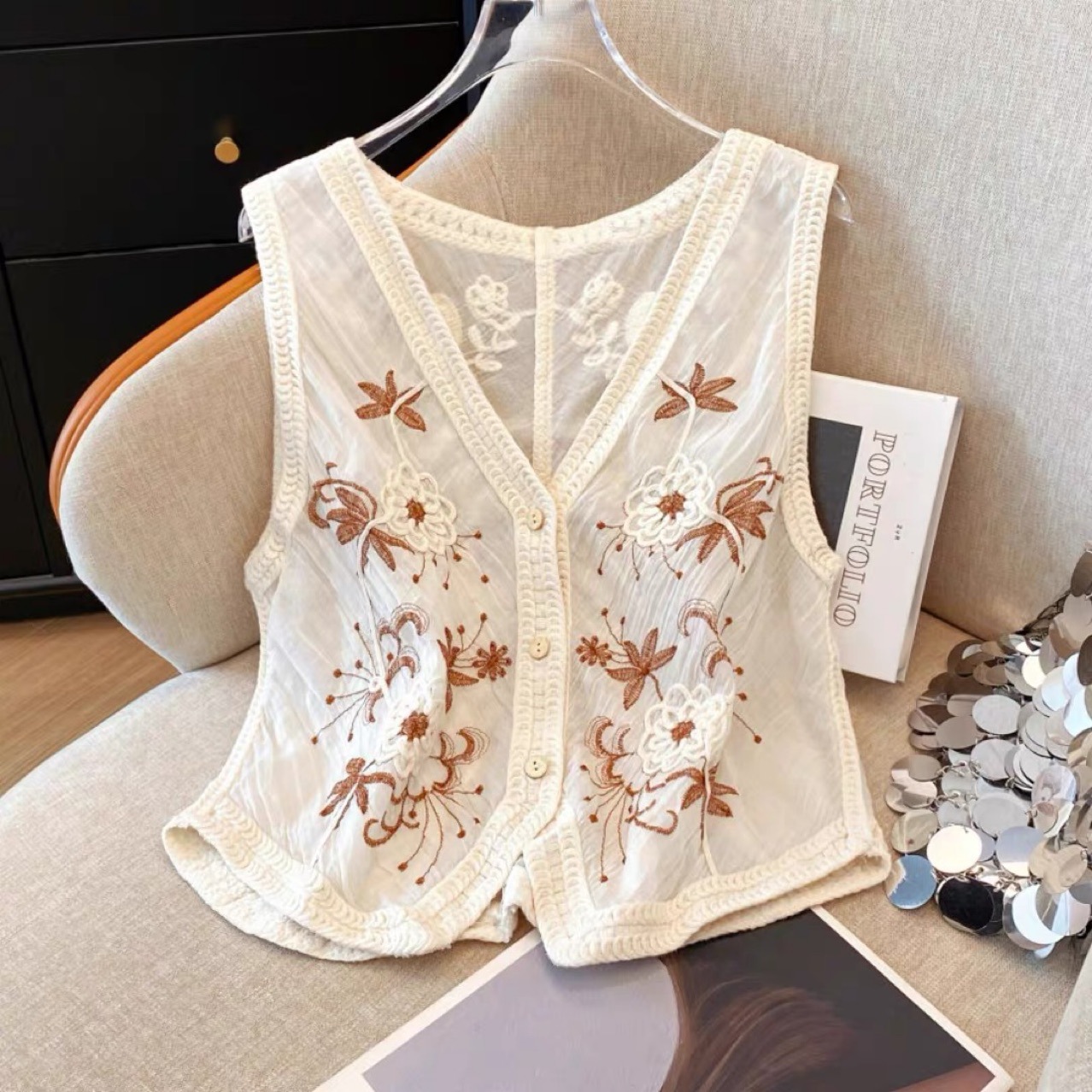 여성을위한 프랑스 복고풍 크로 셰 뜨개질 v 넥 조끼 봄 스타일 중공 니트 조끼 세련된 양복 조끼 탑