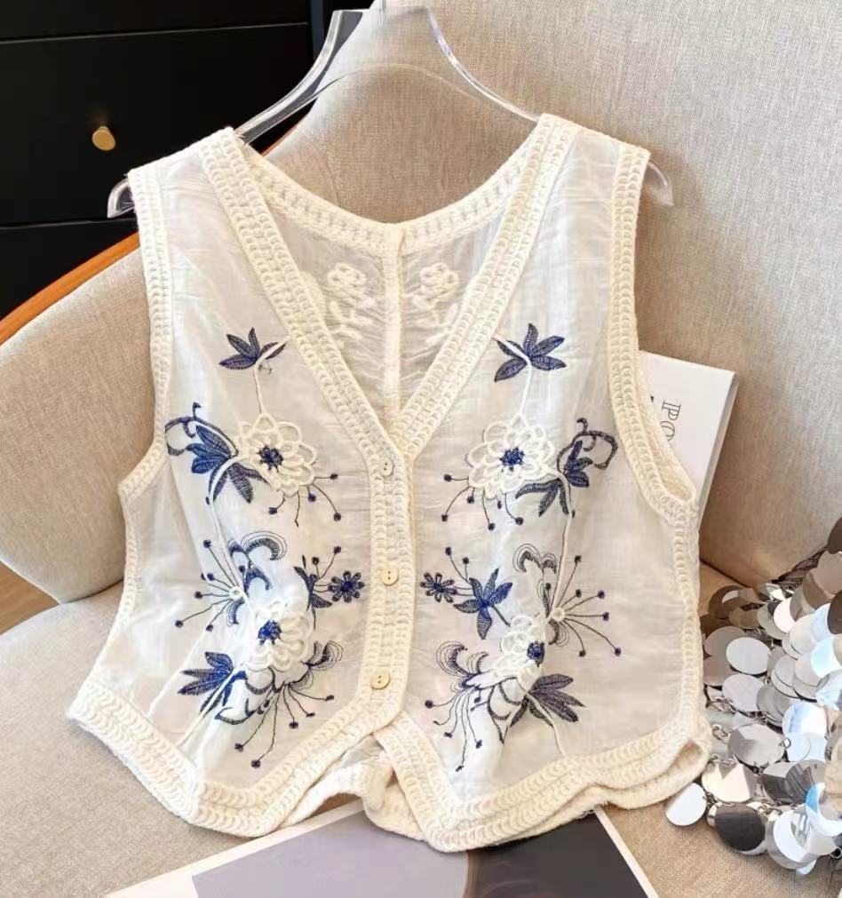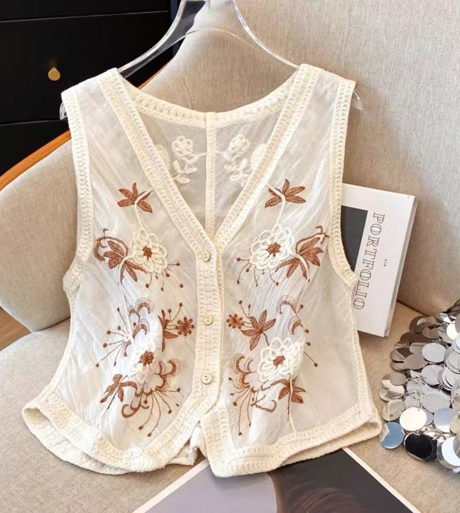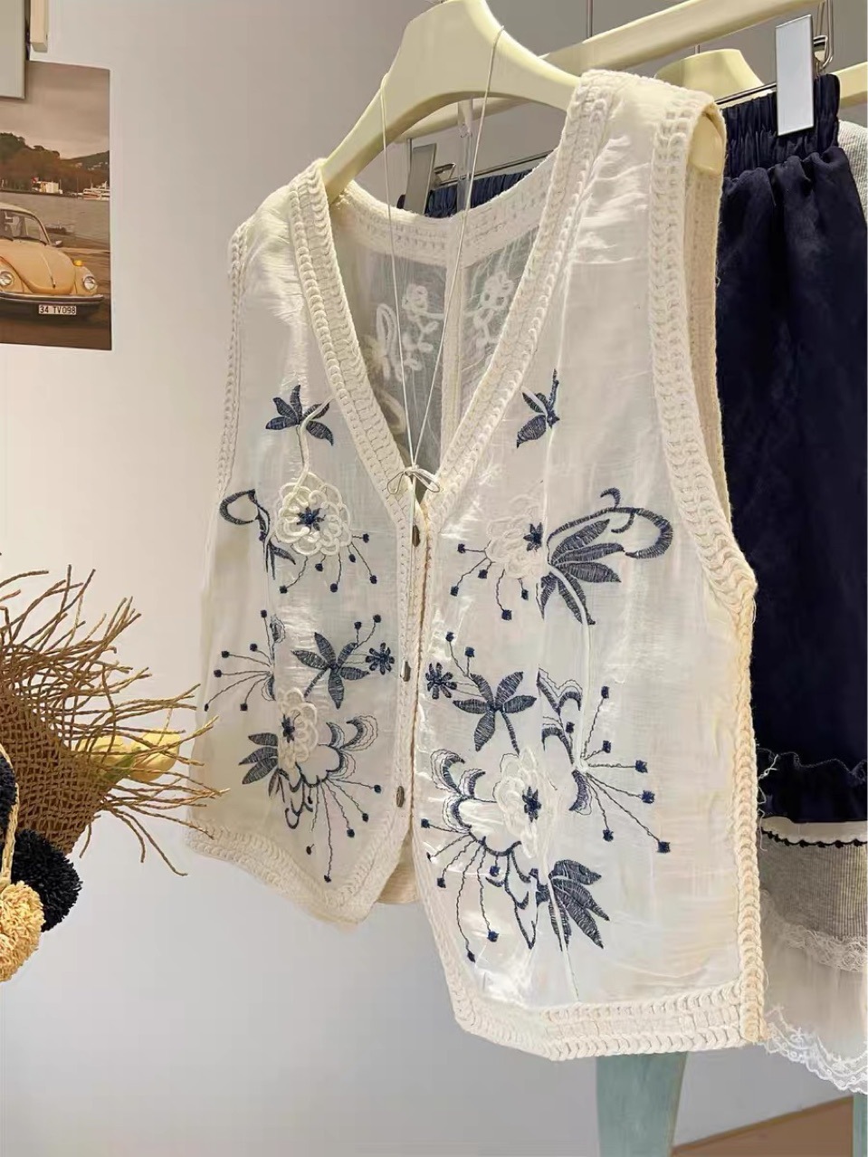 여성을위한 프랑스 복고풍 크로 셰 뜨개질 v 넥 조끼 봄 스타일 중공 니트 조끼 세련된 양복 조끼 탑