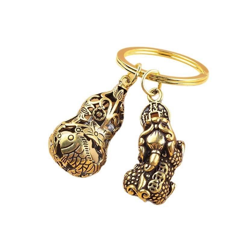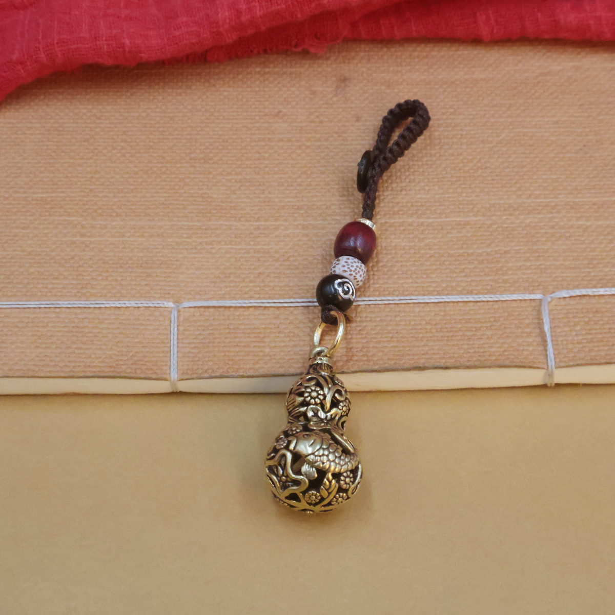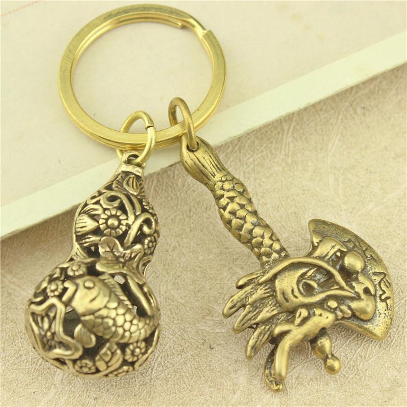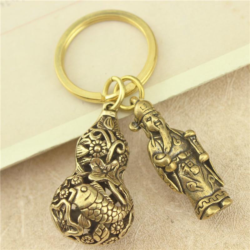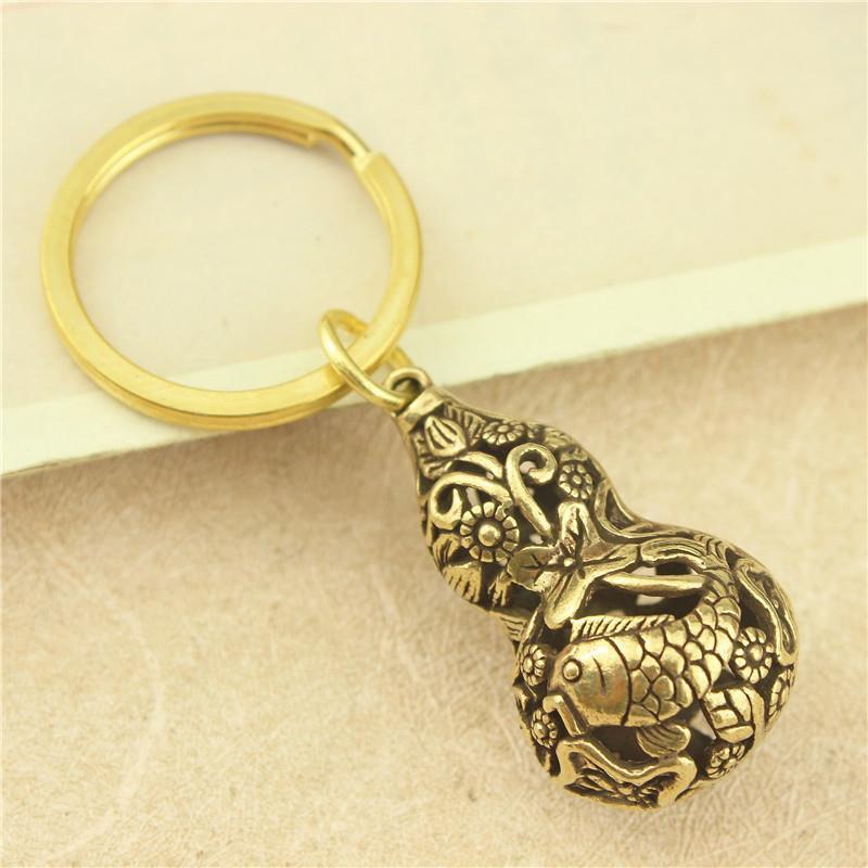 모조 황동 오래된 중공 조롱박 열쇠 고리 펜던트 물고기 자동차 열쇠 고리 펜던트 남성과 여성을위한 민족 스타일 펜던트