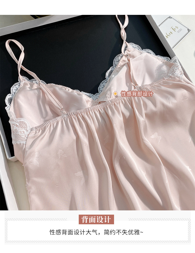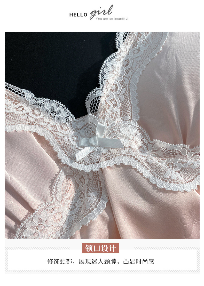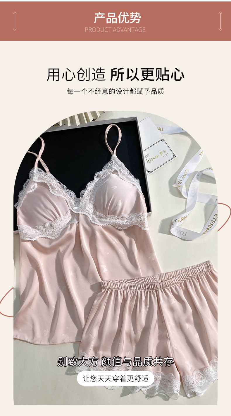 여름 새로운 얼음 실크 슬링 반바지 세트 여성 홈 잠옷 가볍고 편안한 답답하지 않은 레이스 트림 잠옷스토어 가기