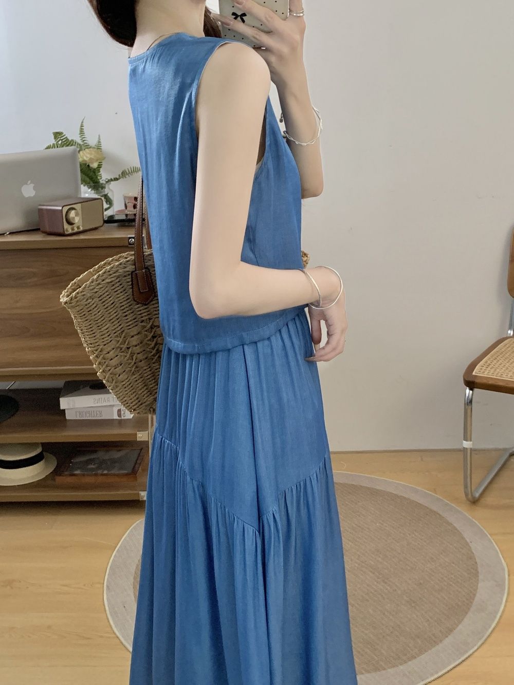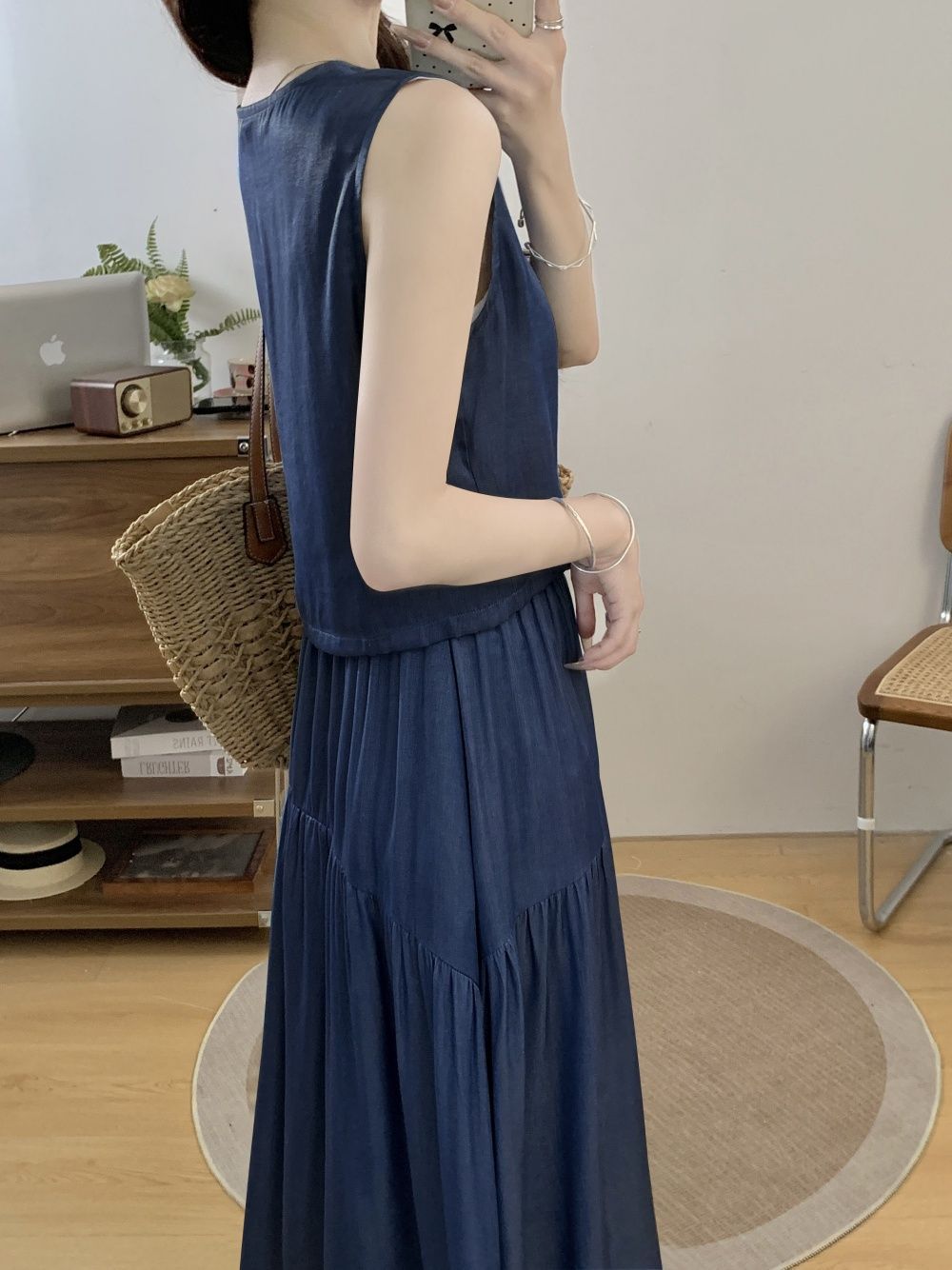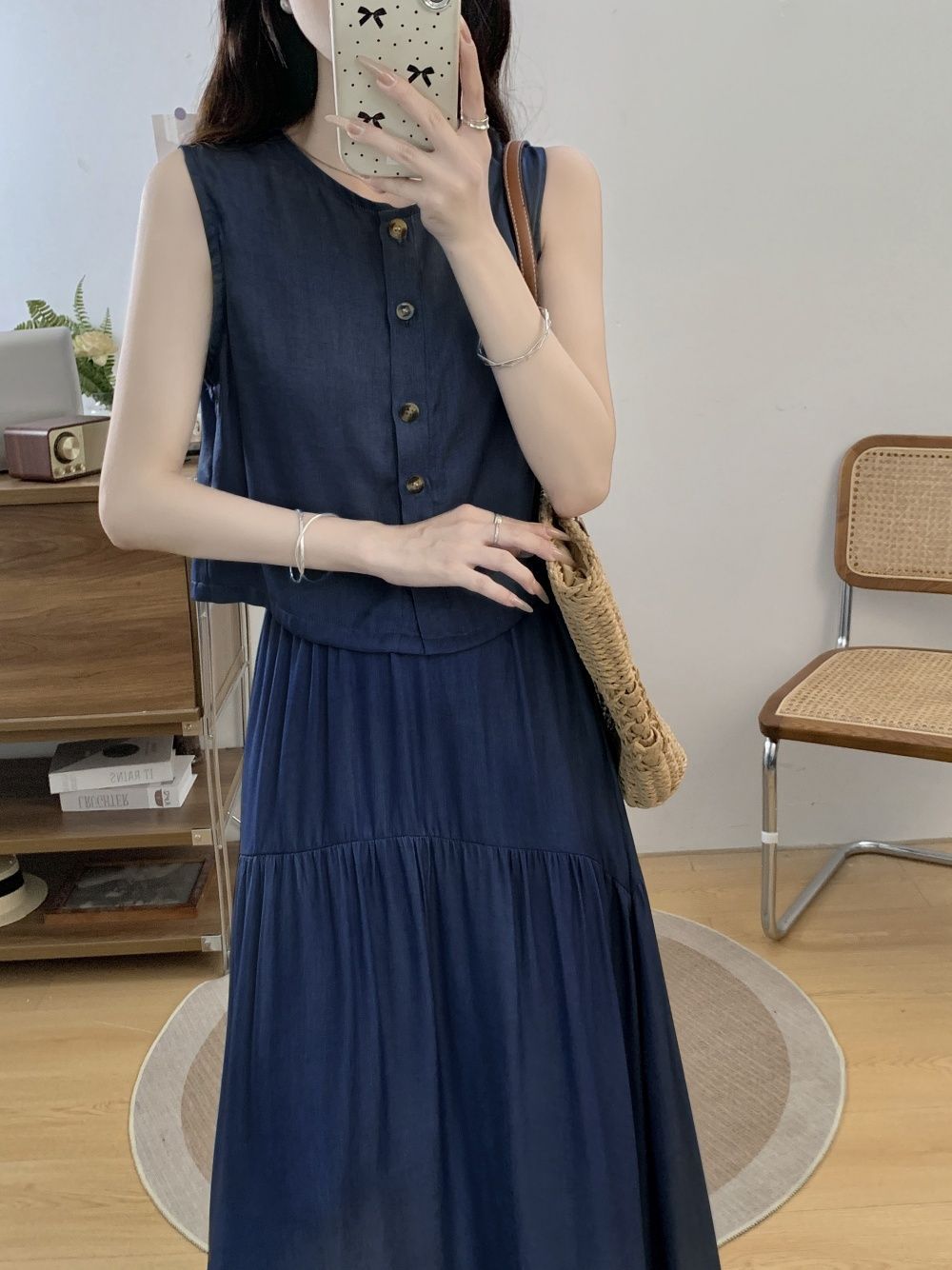 여성을위한 투피스 프렌치 햅번 스타일 민소매 조끼 탑 여름 2025 새로운 대형 스커트 정장스토어 가기