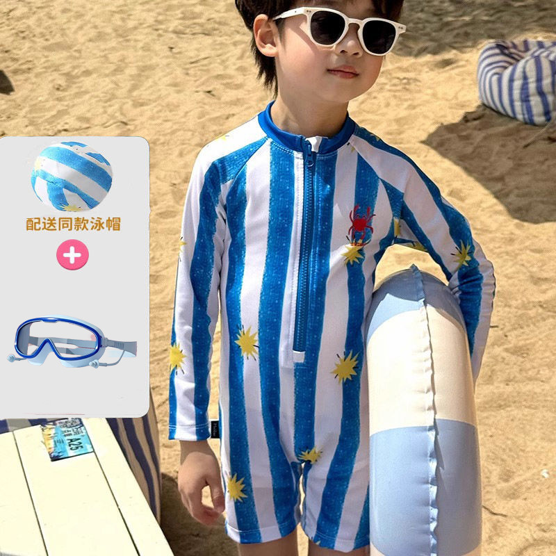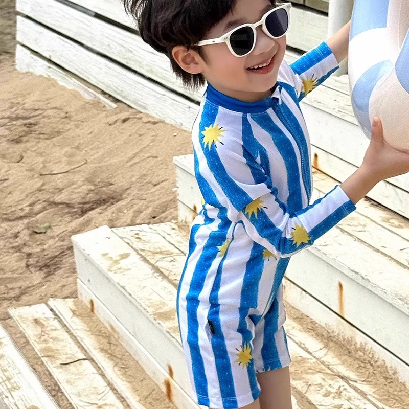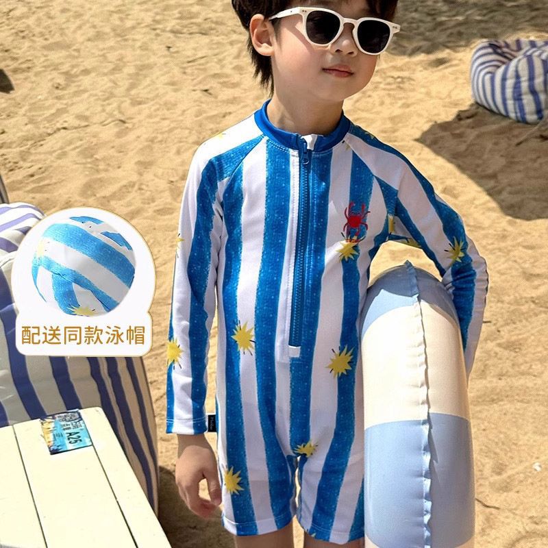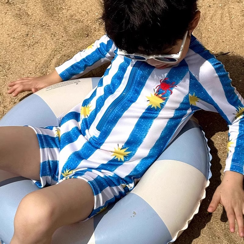 남성과 여성을위한 새로운 여름 어린이 긴팔 자외선 차단제 원피스 수영복 귀여운 게 온천 휴가 속건성 수영복