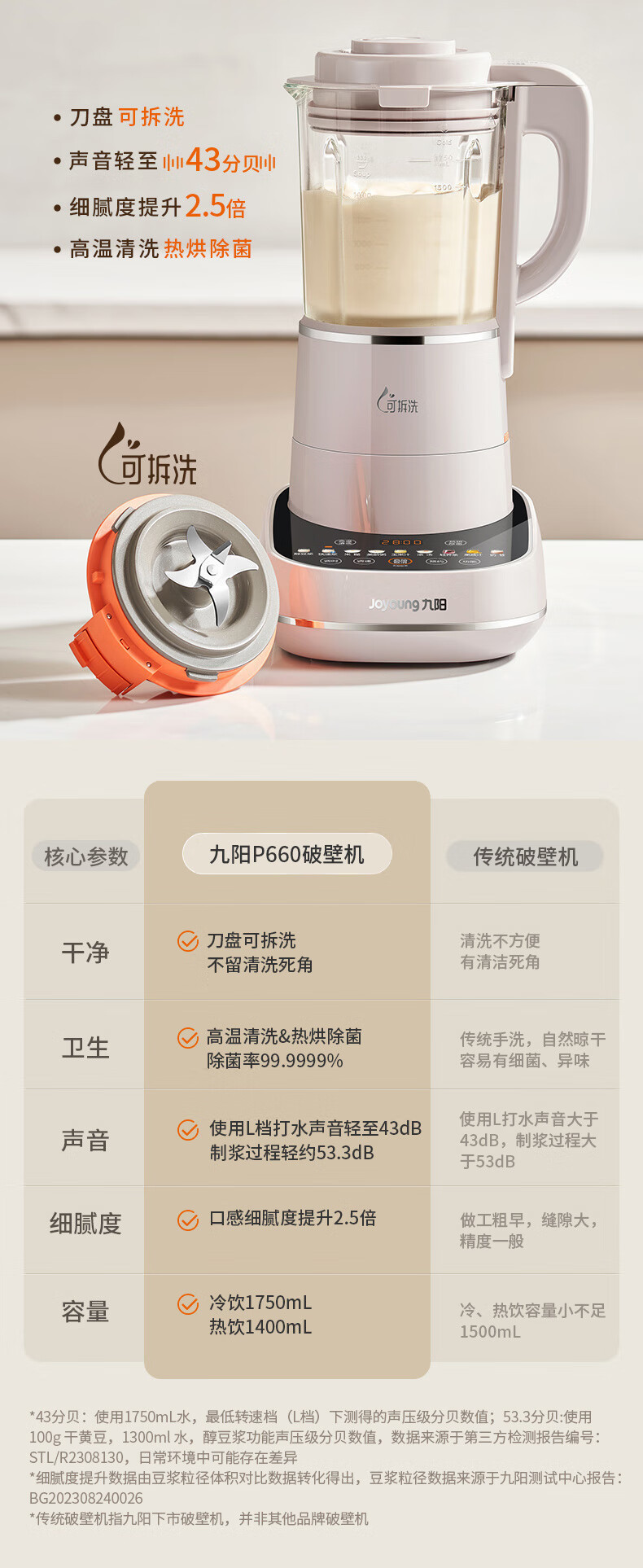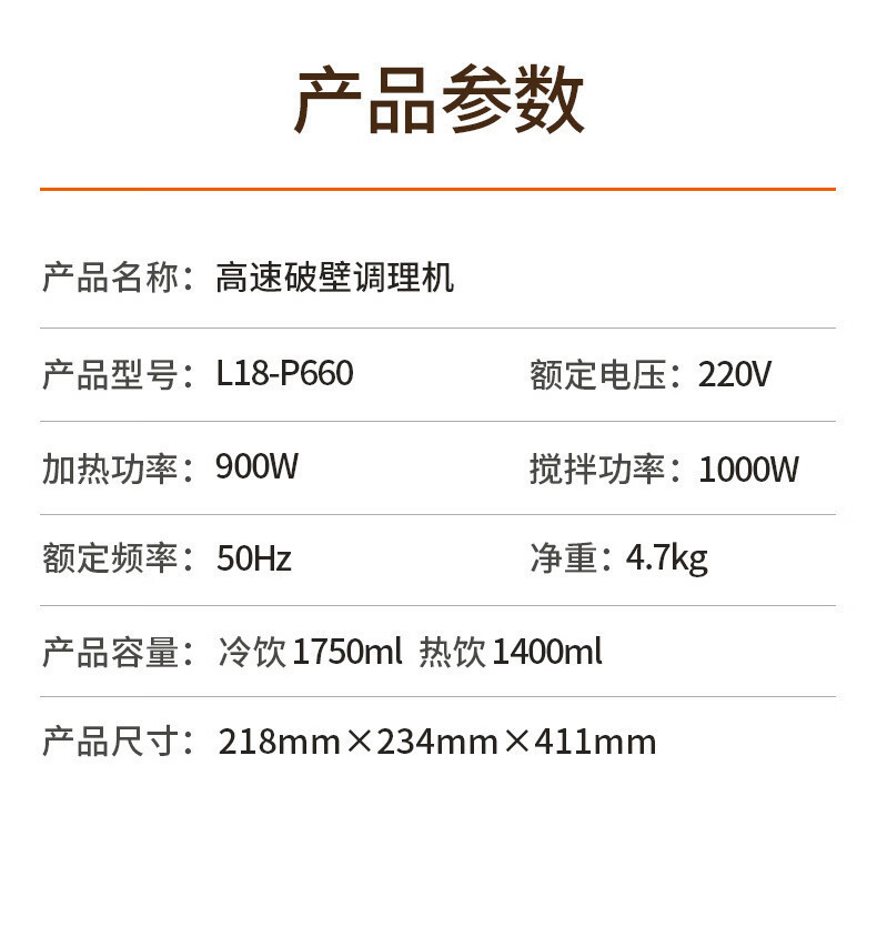 Joyoung 경음벽파괴기, 분리 및 세척이 용이한 가정용 주스기, 두유기, 다중소음감소 L18-P660