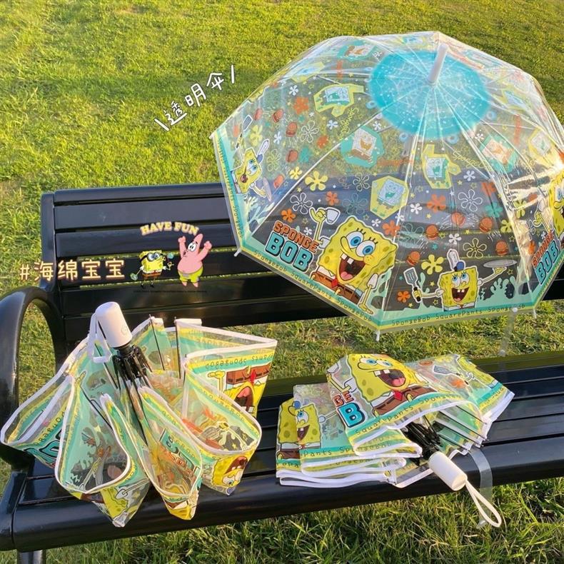 스폰지밥 우산 ins 고급스러운 투명 학생 우산 귀여운 소녀 하트 70% off 우산 휴대용 어린이 우산