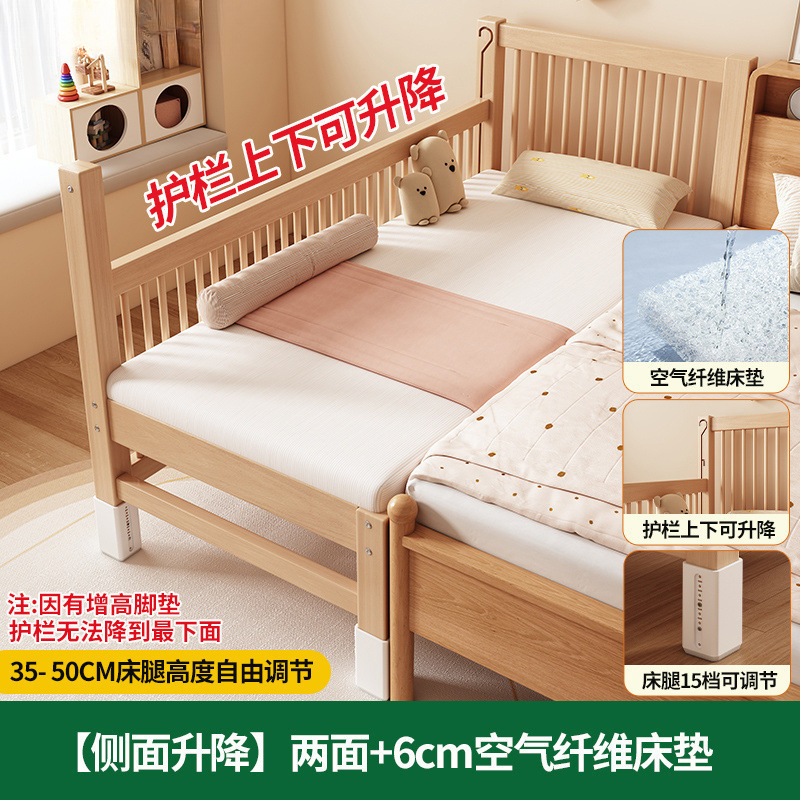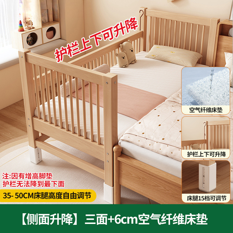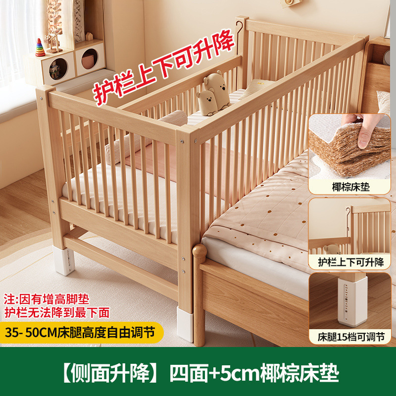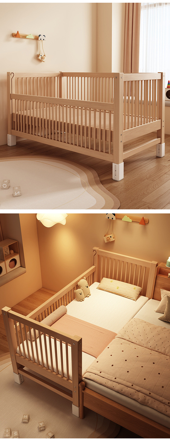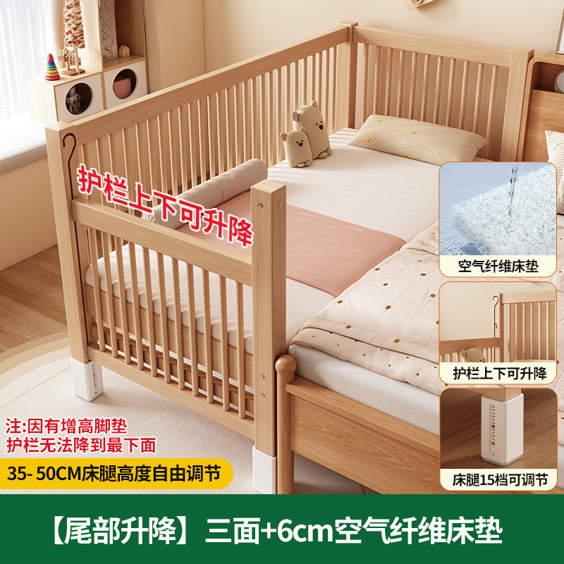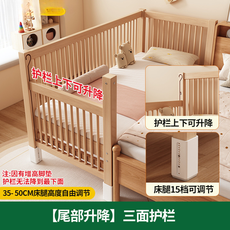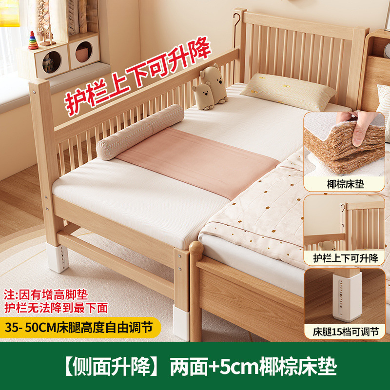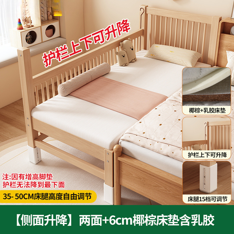 접합 침대, 어린이 침대, 높이 조절 가능한 아기 원목 침대 옆 확장, 성인이 수면할 수 있는 리프팅 울타리, 너도밤나무 침대