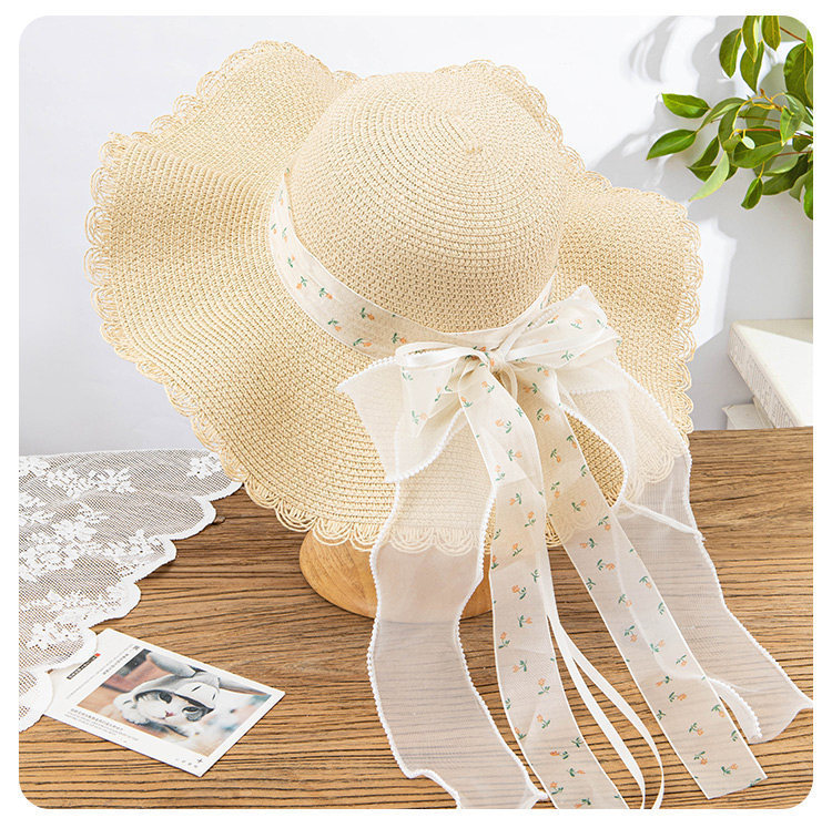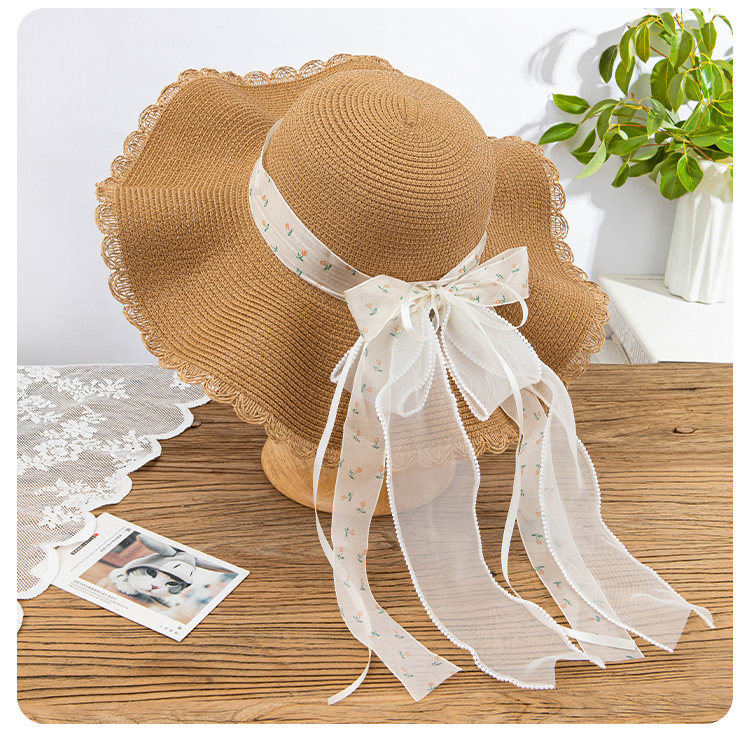 레이스 리본 큰 챙 밀짚모자 2026 신상 해변용 자외선 차단 모자 여성용 예쁜 햇빛 가리개 모자