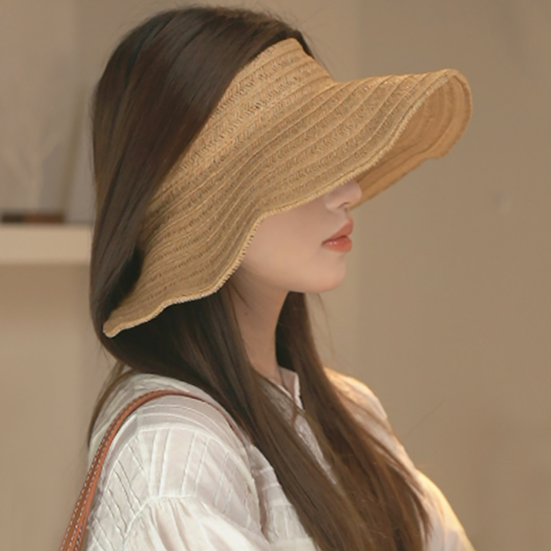 • 큰 물결 모양의 이중 거즈 밀짚모자 - 베이지