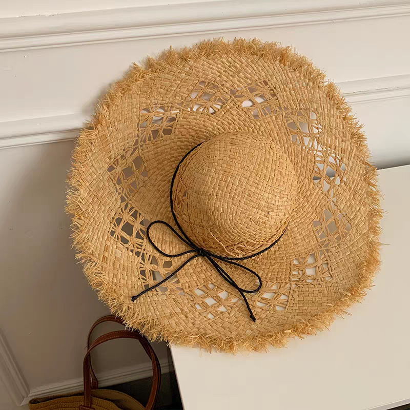 • 챙이 큰 손바느질 라피아 모자 - 4cm 레이스