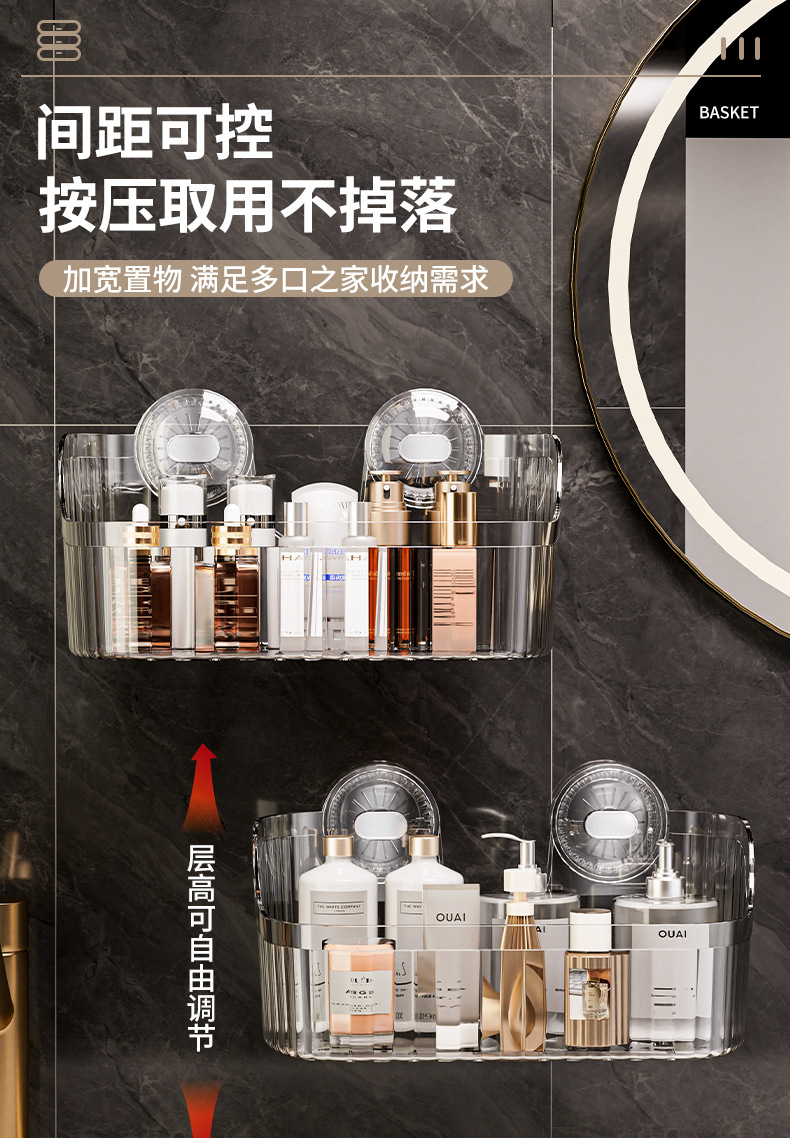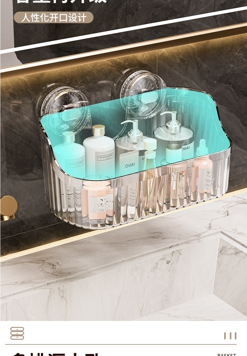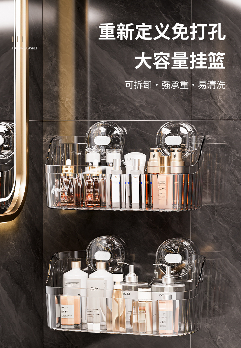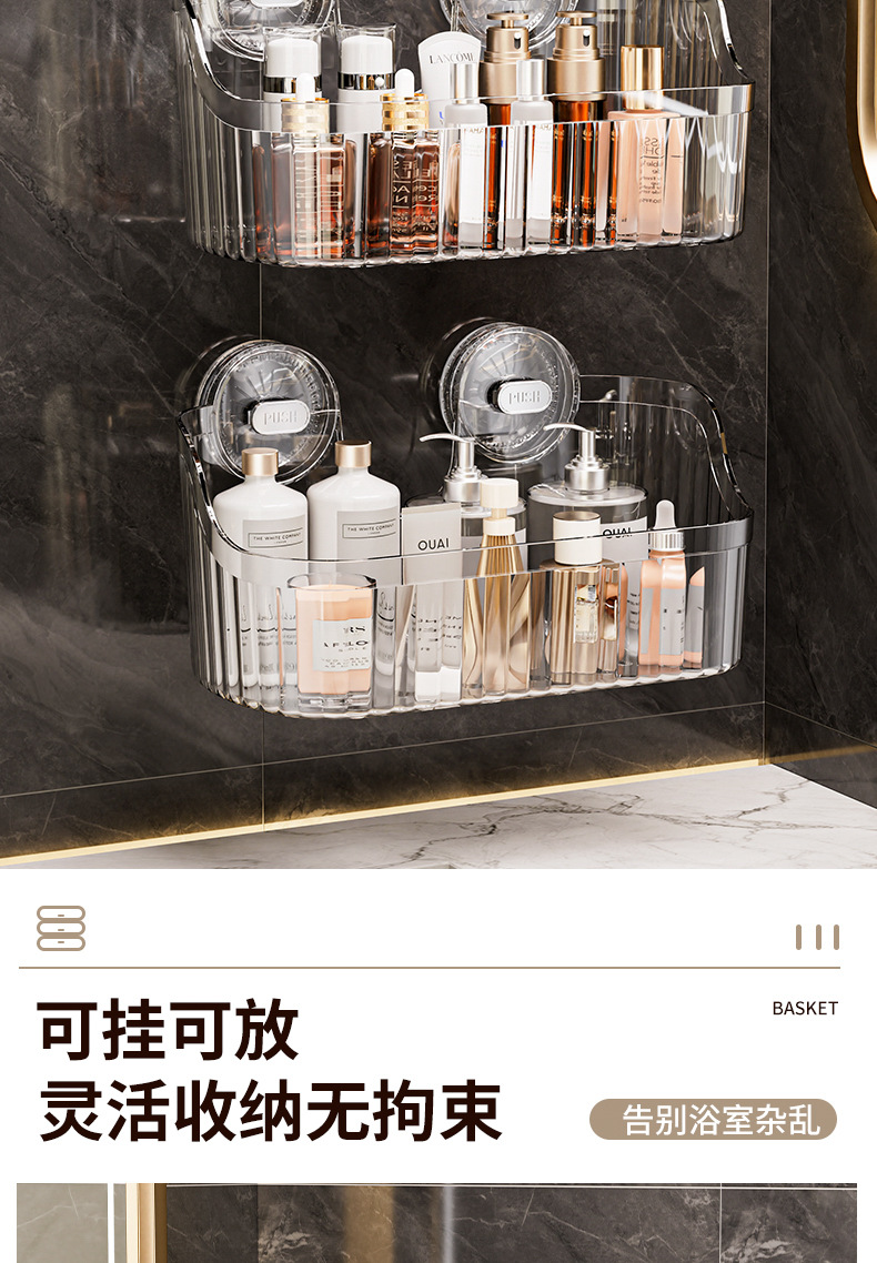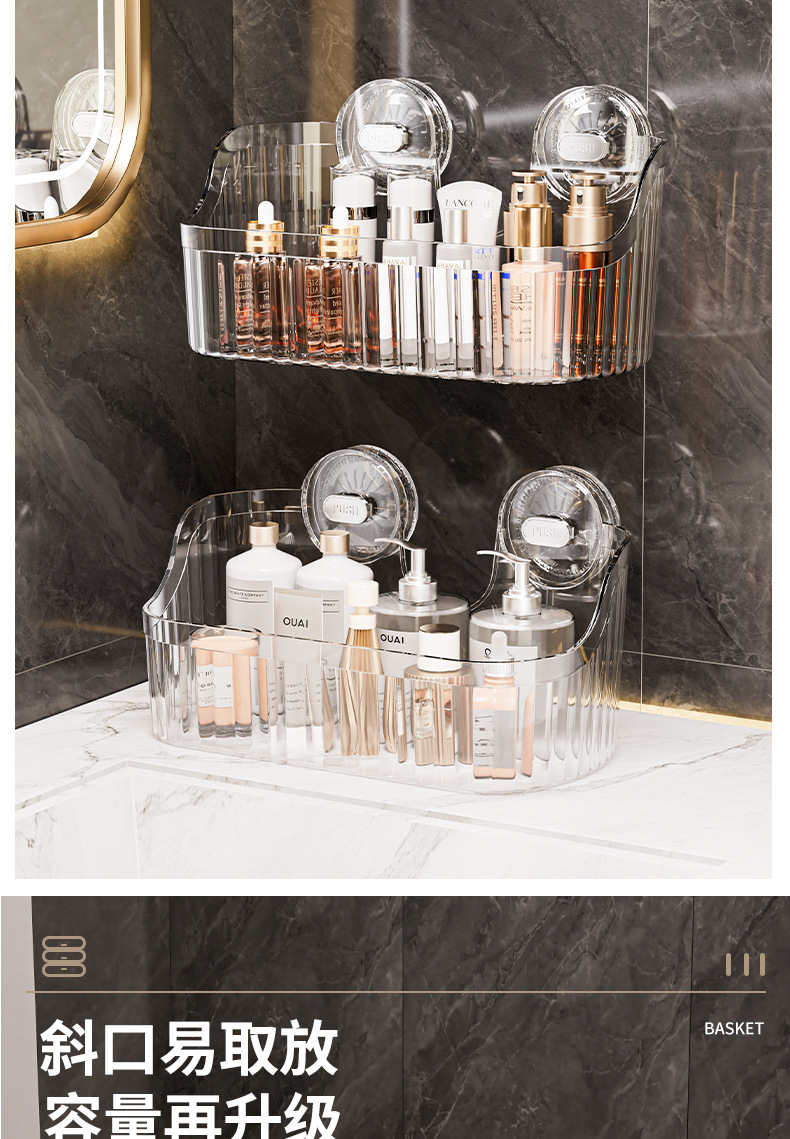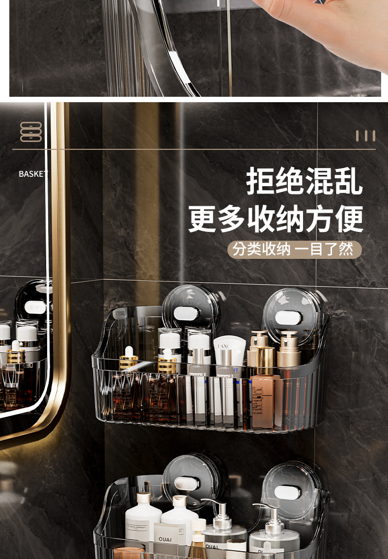벽에 구멍을 뚫지 않고 설치할 수 있는 국경 간 가벼운 고급 욕실 흡입 컵 보관함, 욕실 세면대 화장품 보관함 보관함스토어 가기
