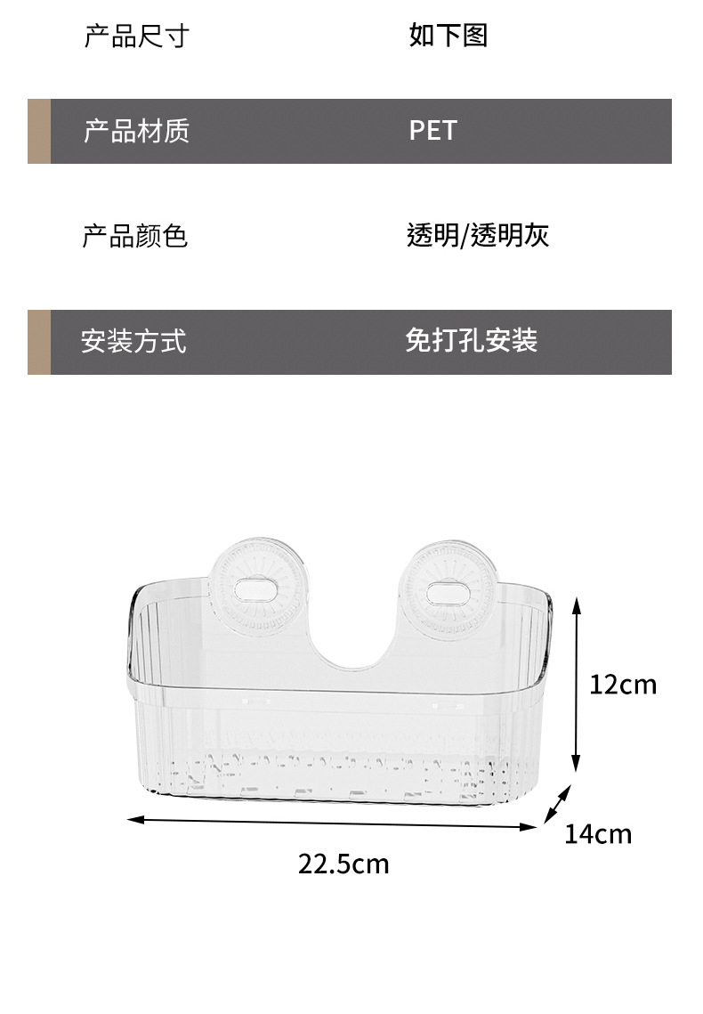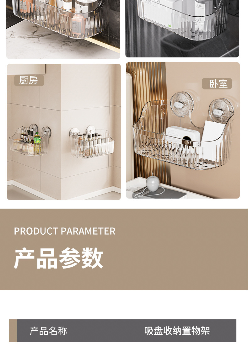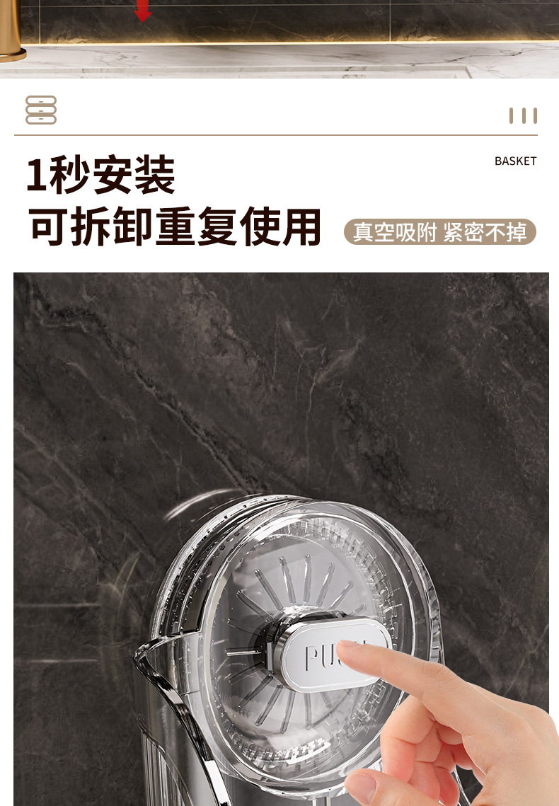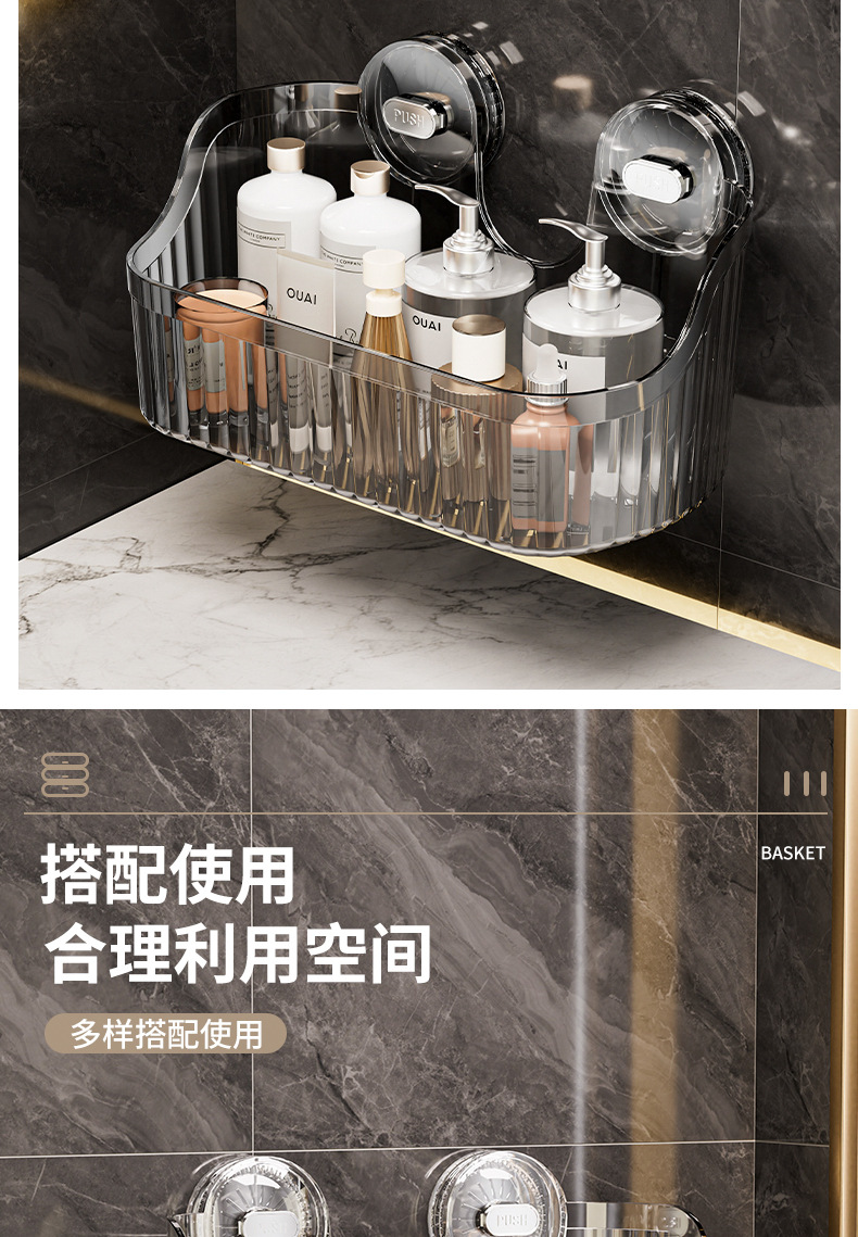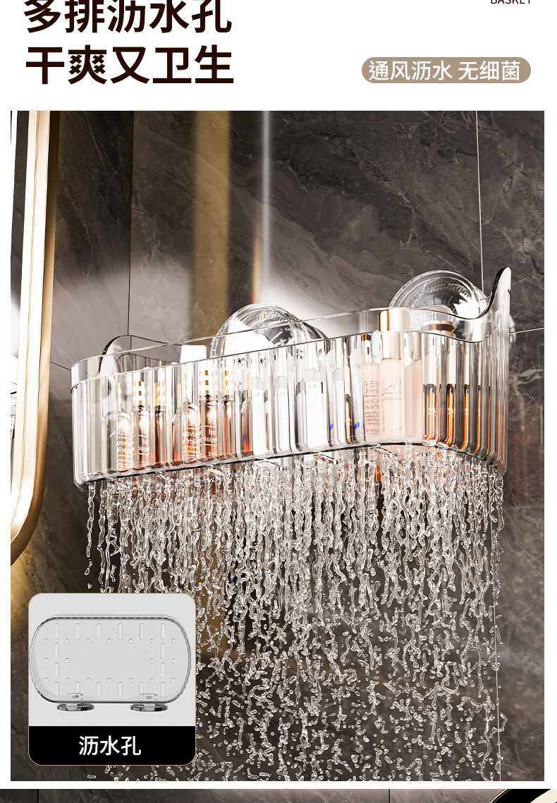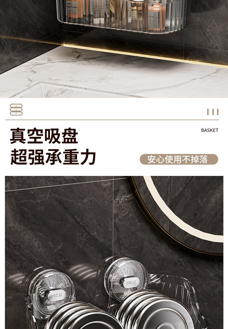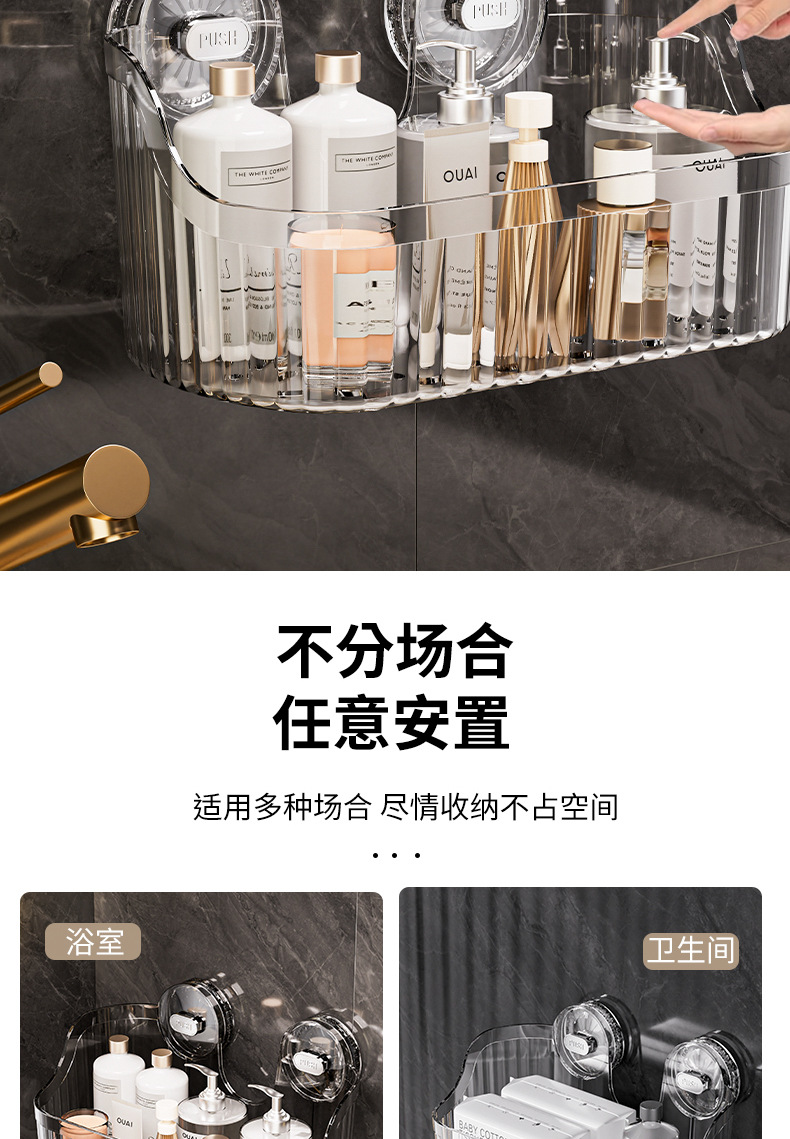 벽에 구멍을 뚫지 않고 설치할 수 있는 국경 간 가벼운 고급 욕실 흡입 컵 보관함, 욕실 세면대 화장품 보관함 보관함스토어 가기