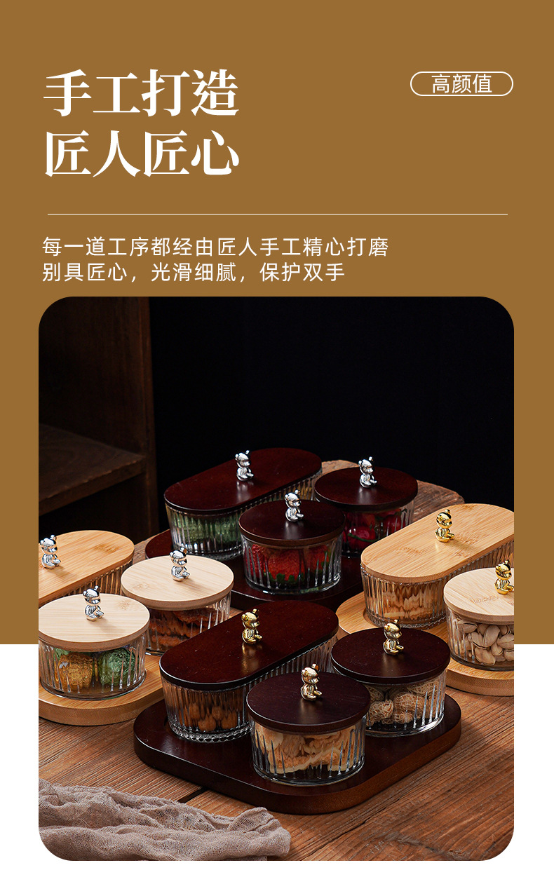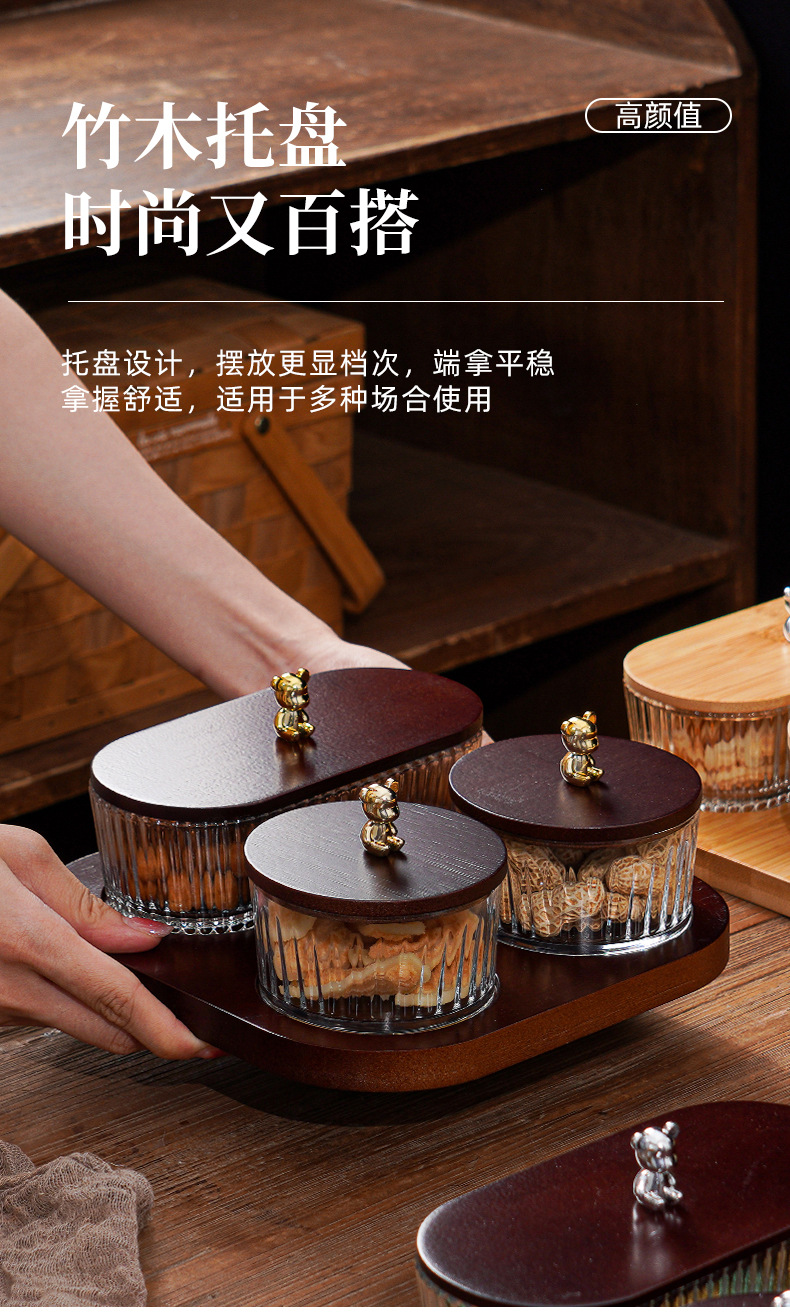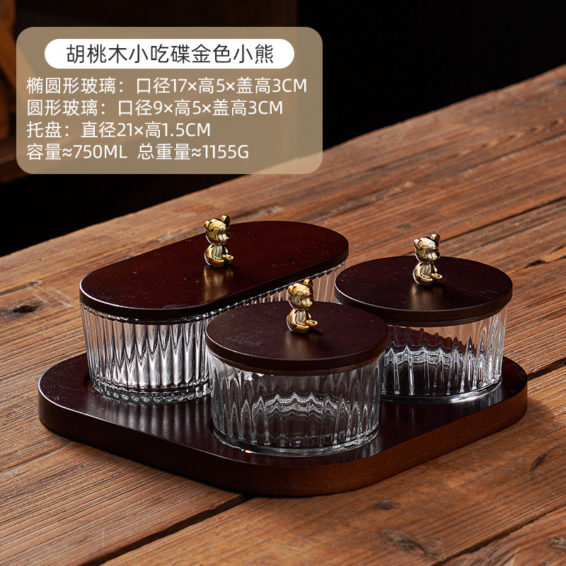 • 다크우드 컬러 쓰리인원 과일접시 [황금곰]