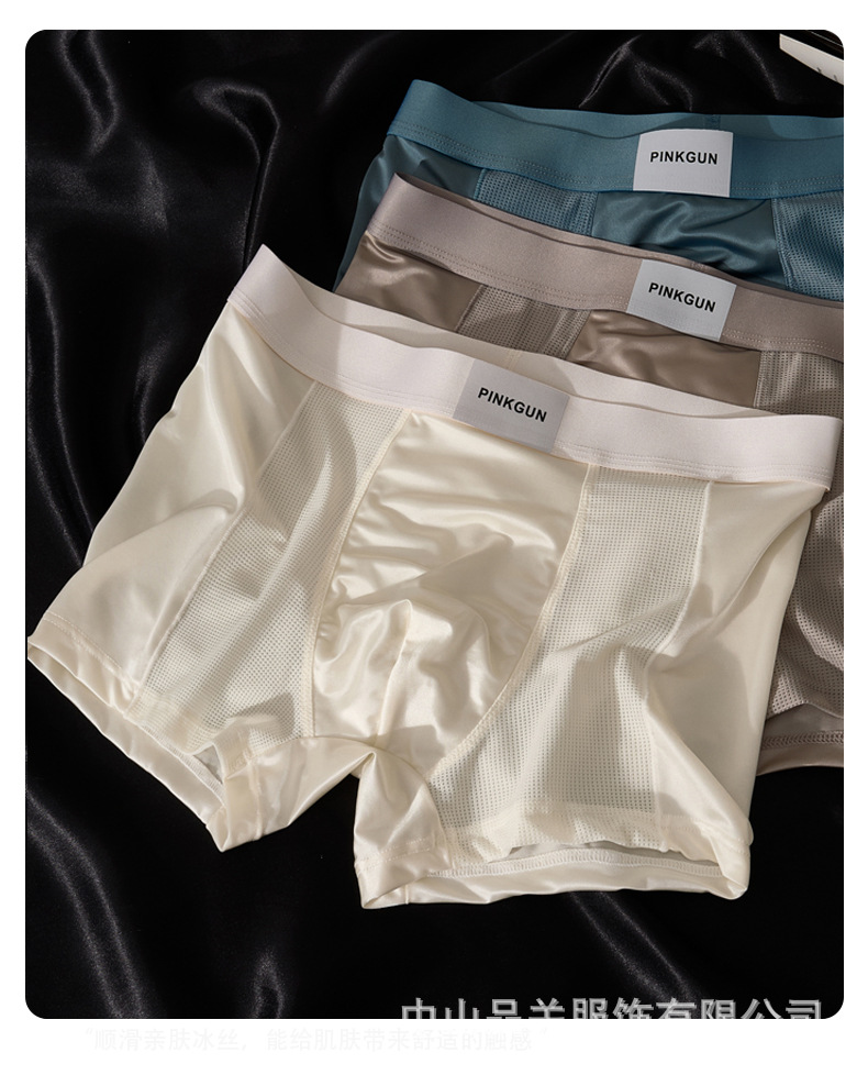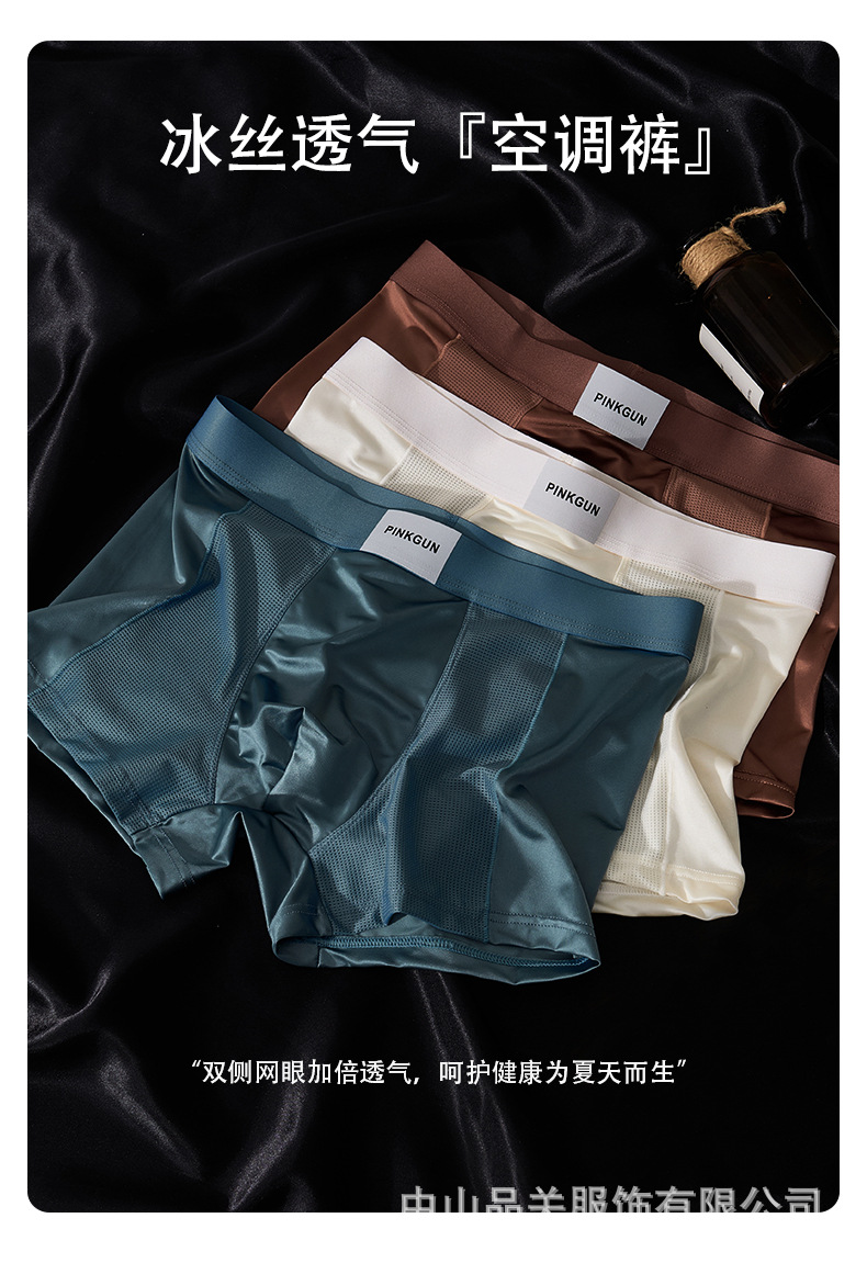남성용 아이스 실크 하이엔드 소년용 라이트 럭셔리 새틴 에어컨 바지 통기성 여름 항균 복서 반바지 파자마스토어 가기