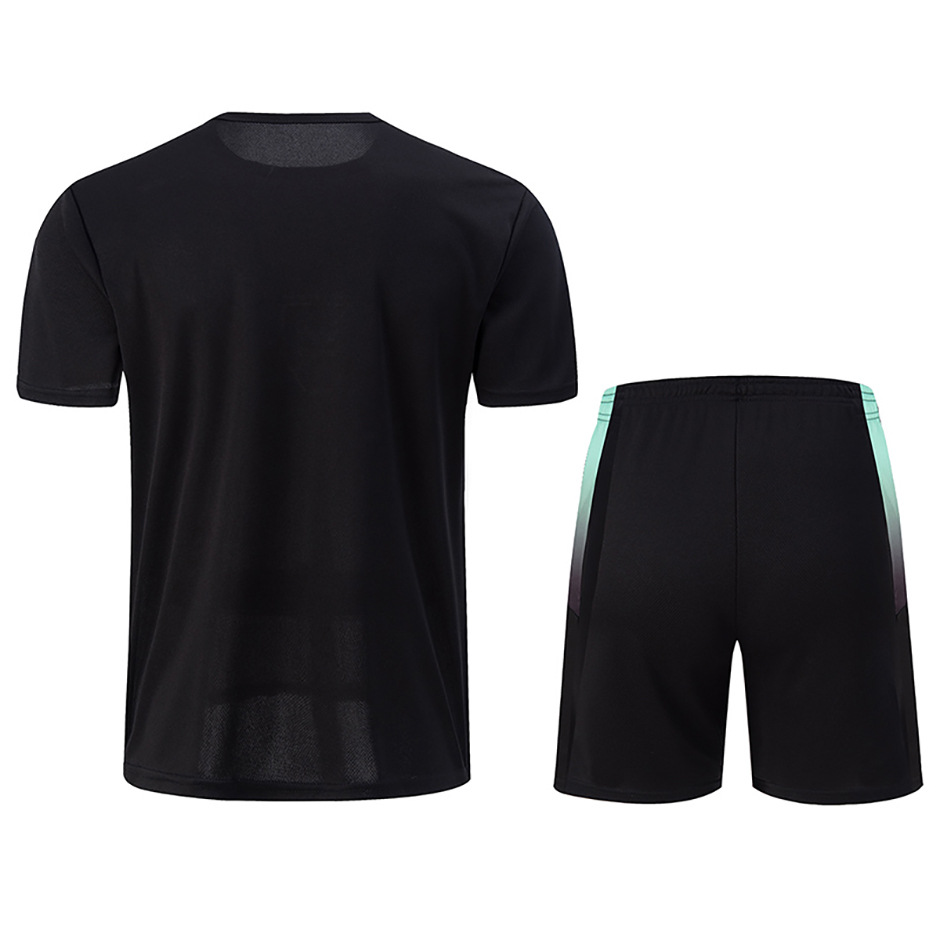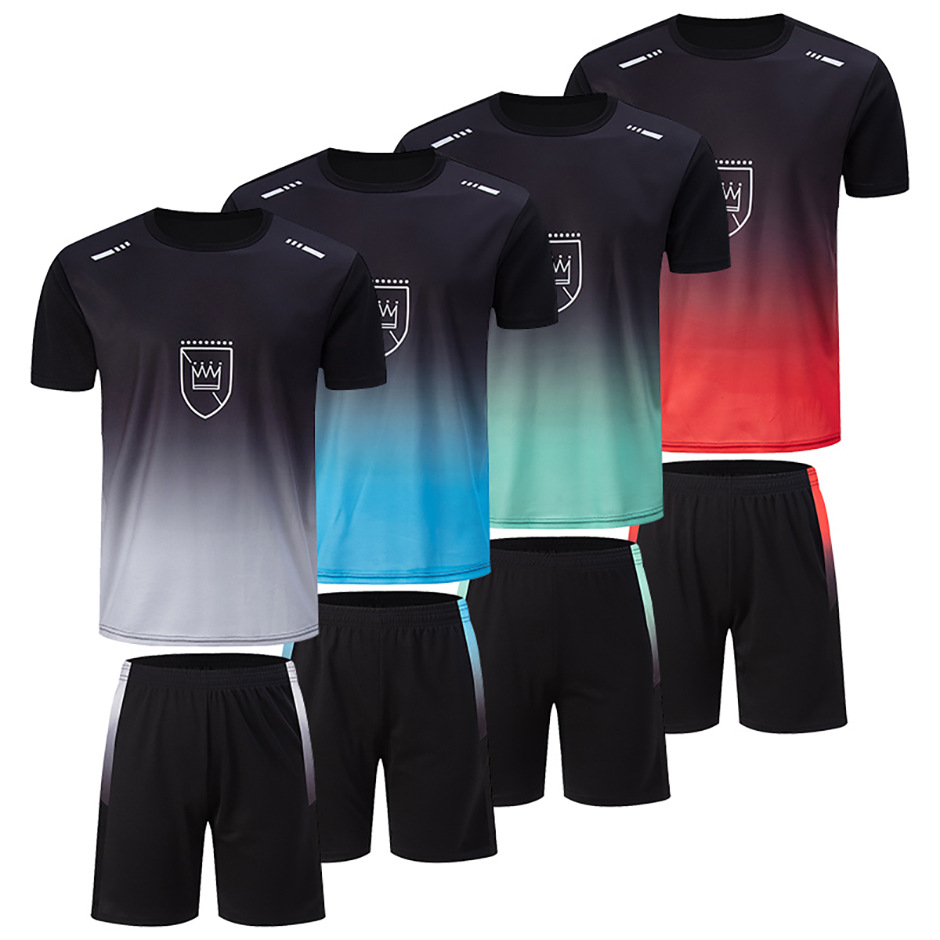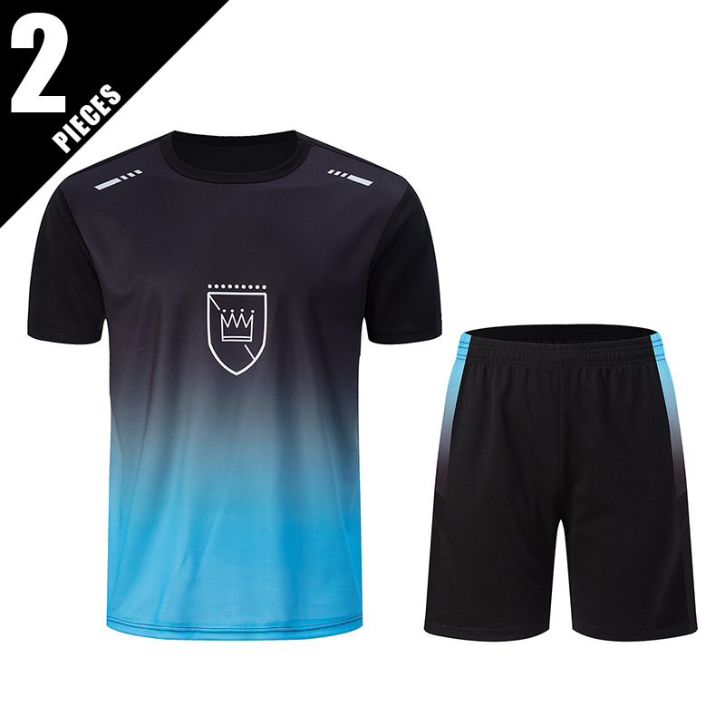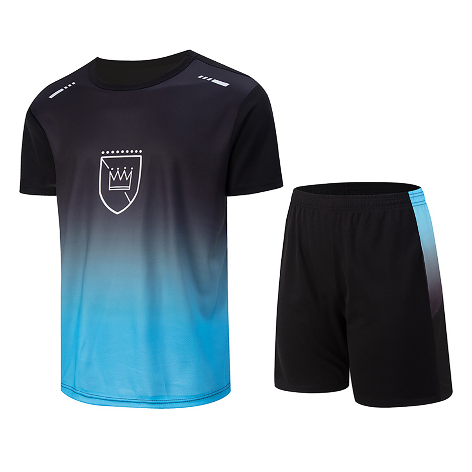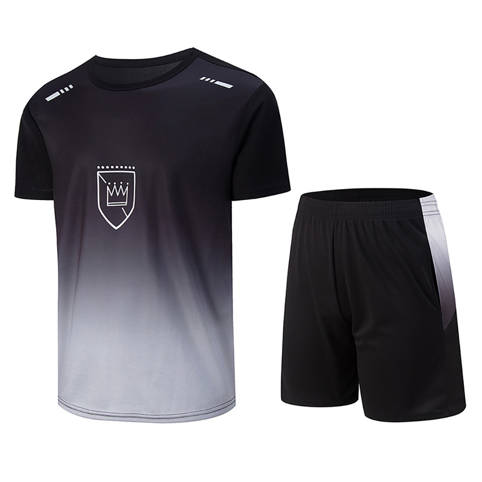 크로스보더 남성 스포츠 반팔 반바지 2피스 세트 2025 여름 시원하고 통기성이 뛰어난 트레이닝복 프린트 탑 그라데이션 티셔츠