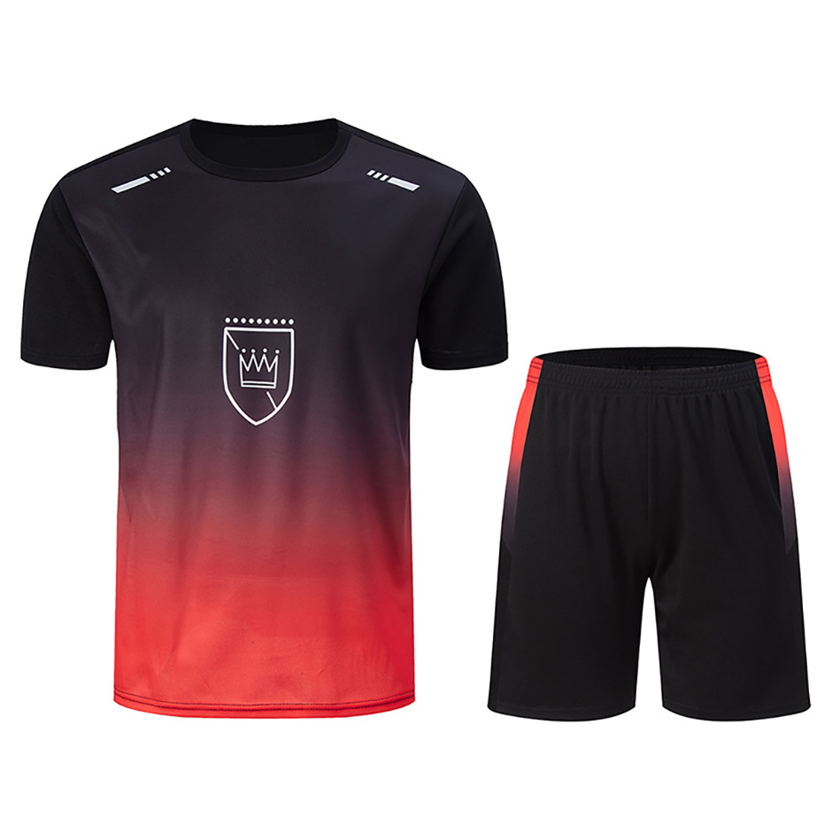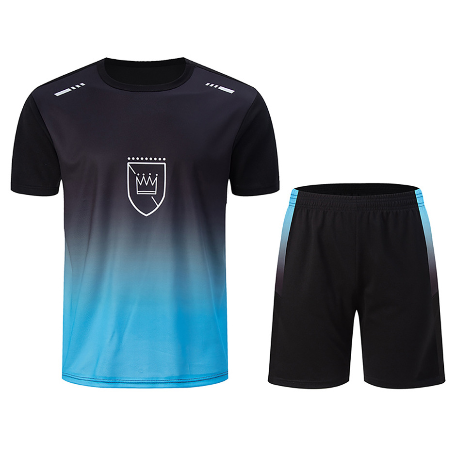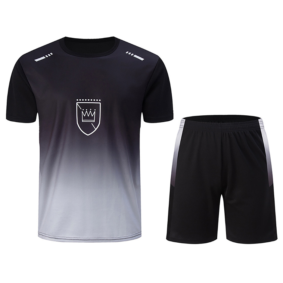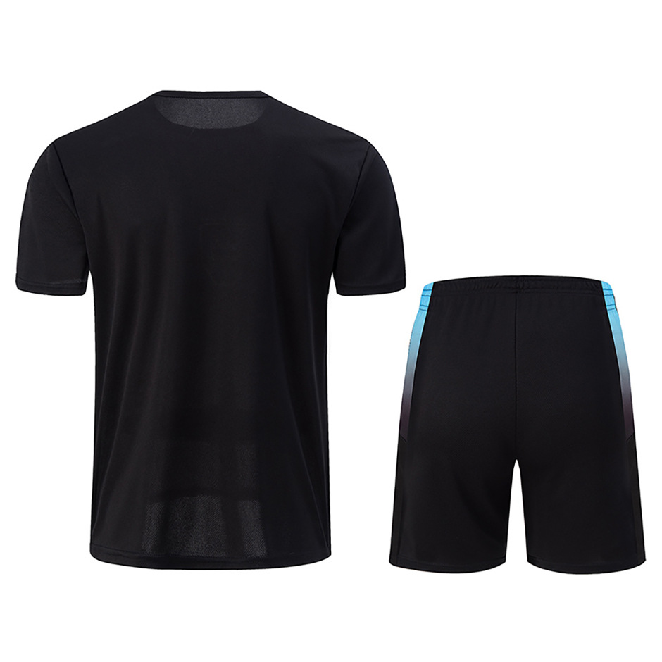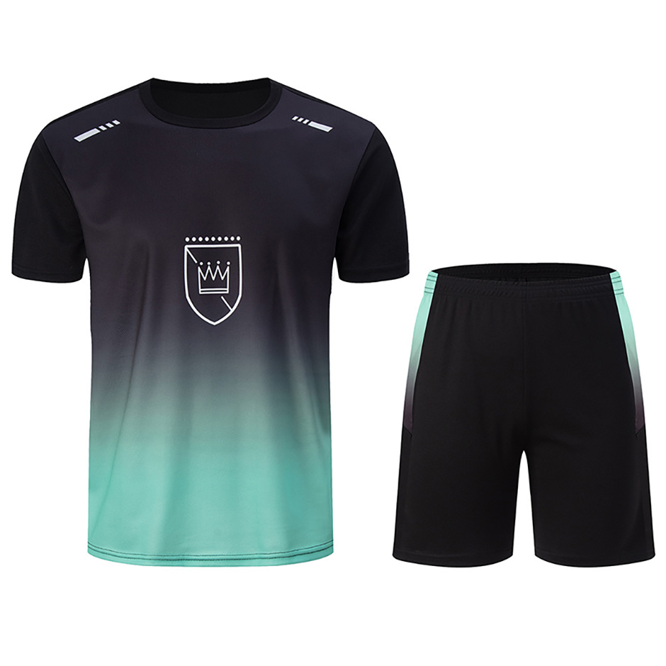 크로스보더 남성 스포츠 반팔 반바지 2피스 세트 2025 여름 시원하고 통기성이 뛰어난 트레이닝복 프린트 탑 그라데이션 티셔츠