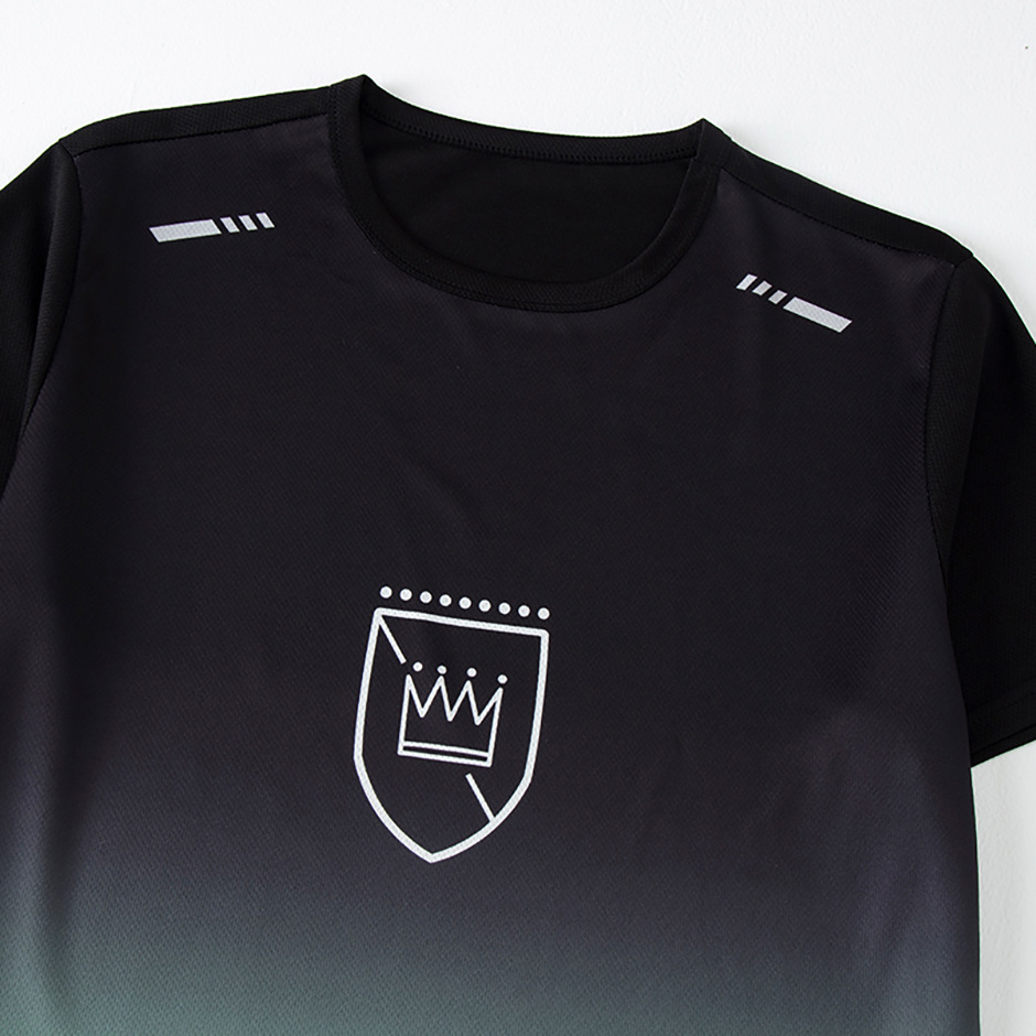 크로스보더 남성 스포츠 반팔 반바지 2피스 세트 2025 여름 시원하고 통기성이 뛰어난 트레이닝복 프린트 탑 그라데이션 티셔츠스토어 가기