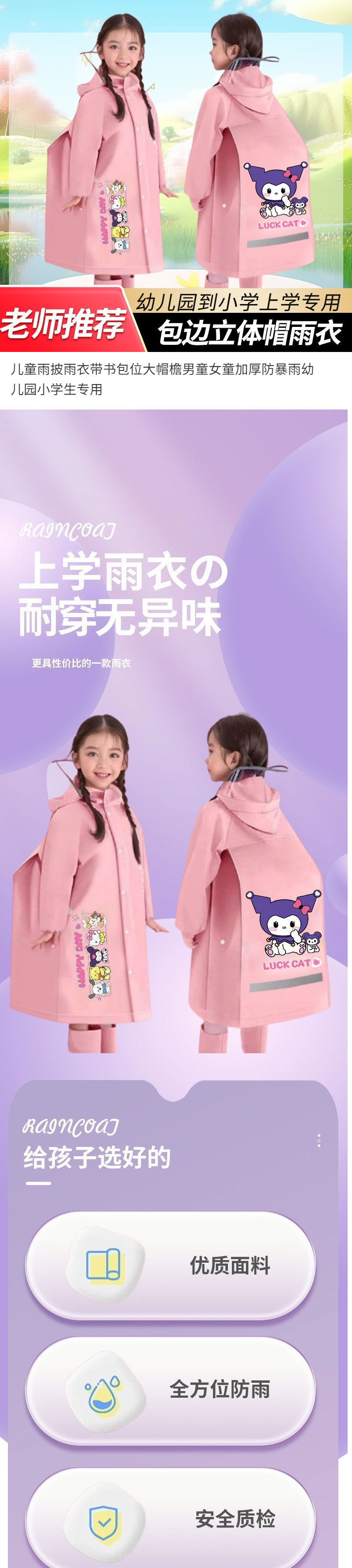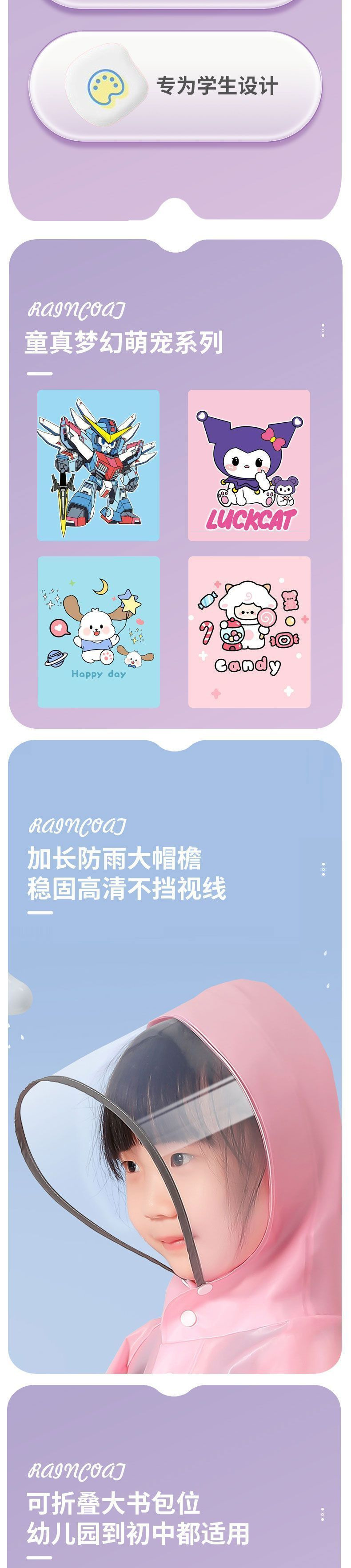 책가방, 큰 챙이 있는 어린이 비옷 및 판초, 남아 및 여아, 두껍고 내구성이 뛰어난 유치원 초등학생스토어 가기