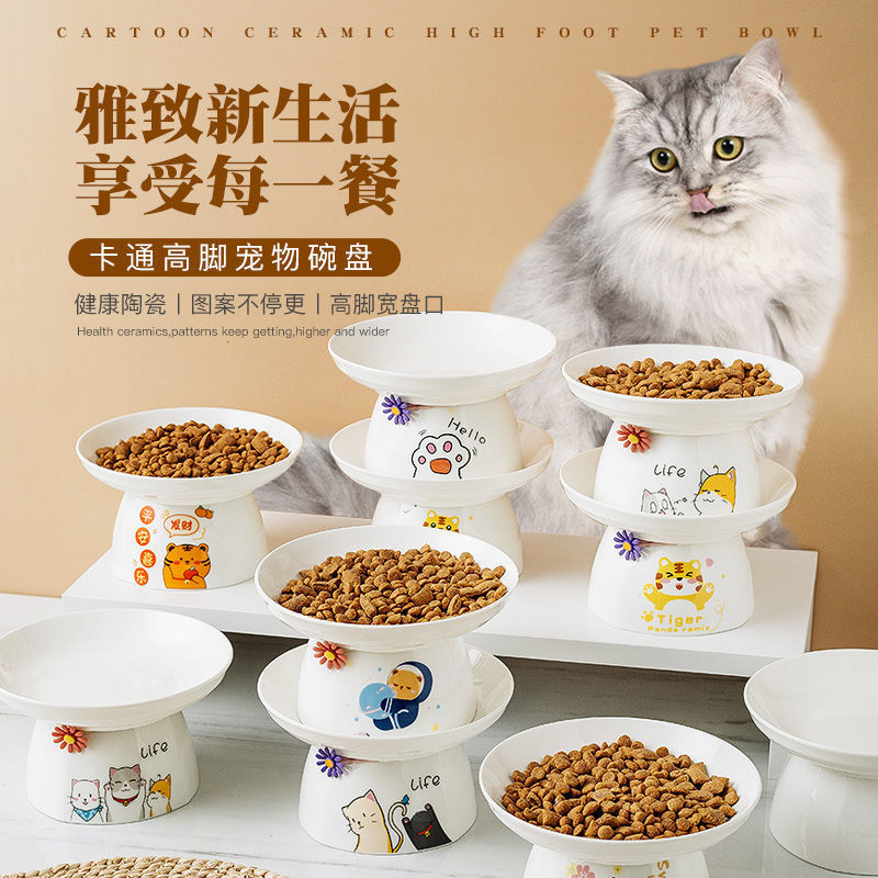 세라믹 애완동물 그릇, 고양이 그릇, 먹이 그릇, 높은 그릇, 목 보호대, 검은 턱 방지, 만화 그릇, 고양이 음식 접시, 습식 식품, 고양이 통조림스토어 가기
