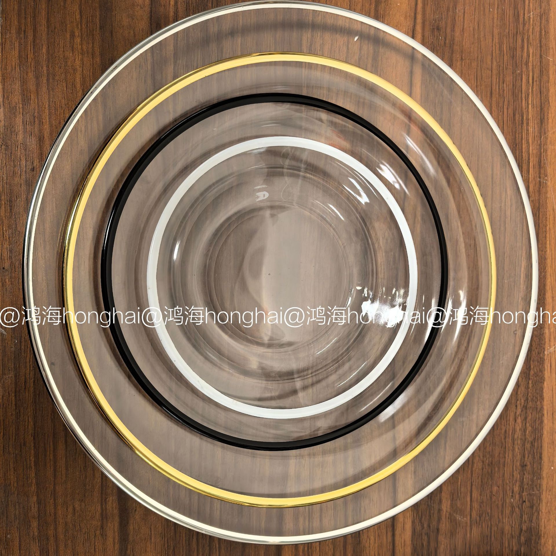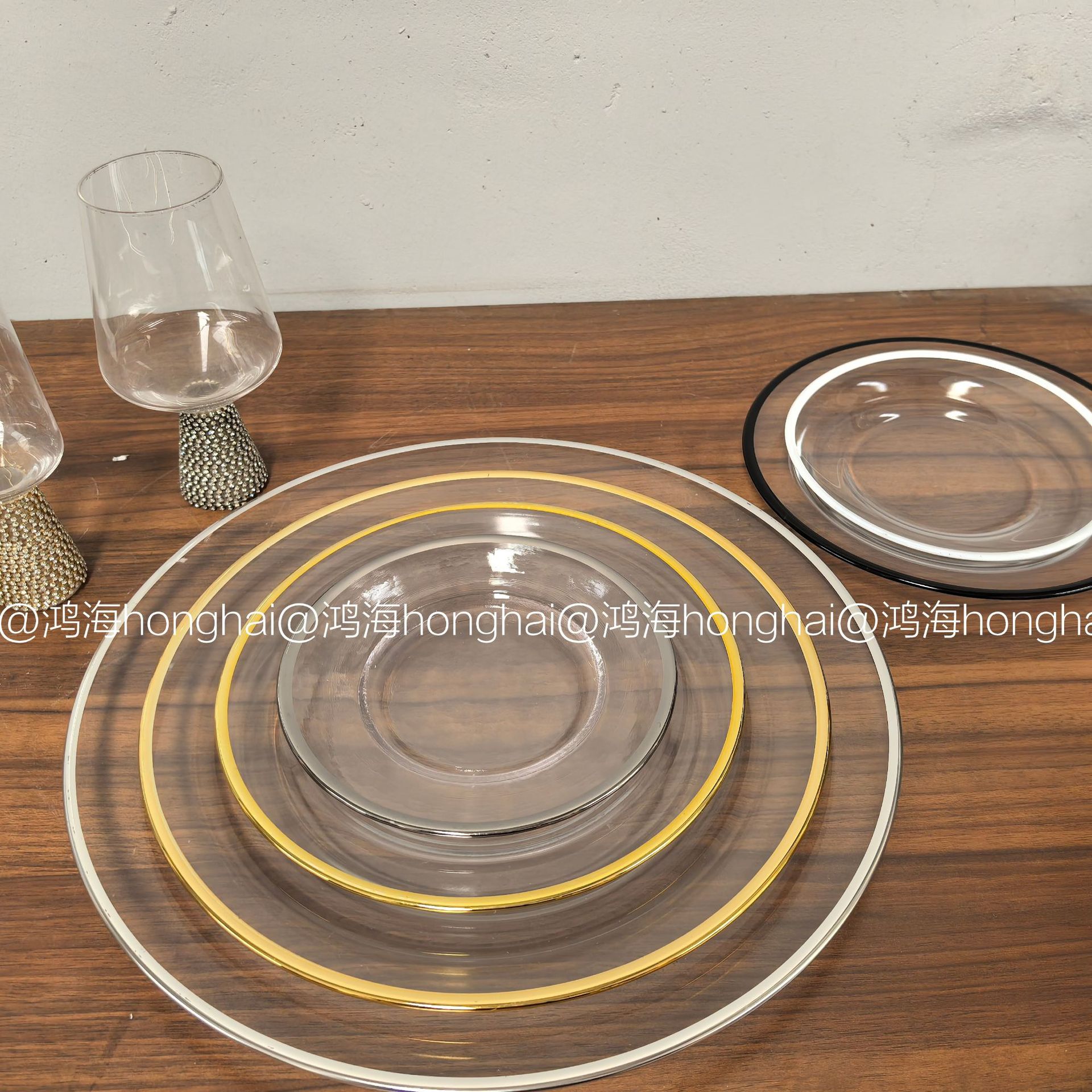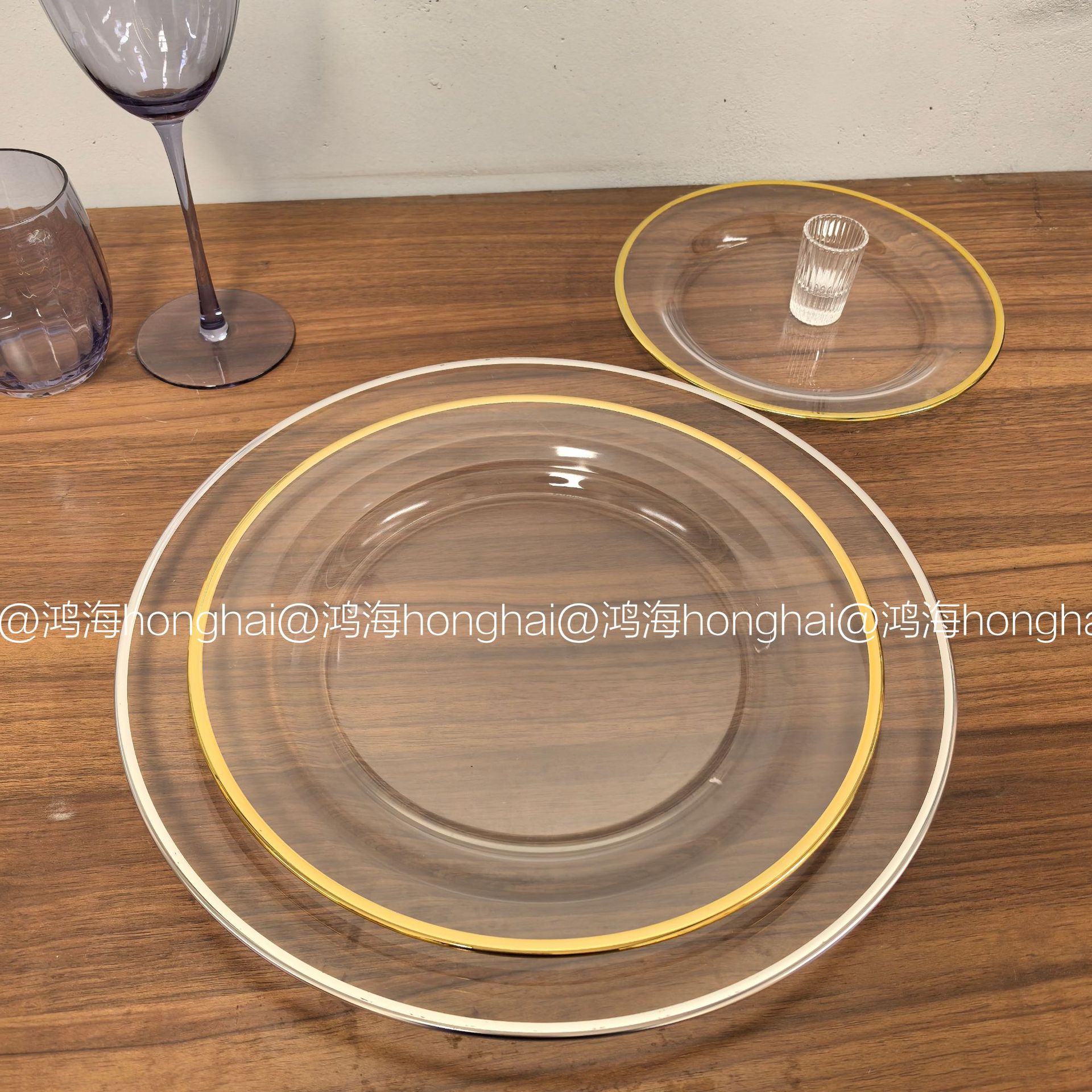 골드림 차저 플레이트 대외 무역 인기 골드림 투명 유리 접시 모던 심플 서양식 디너 플레이트