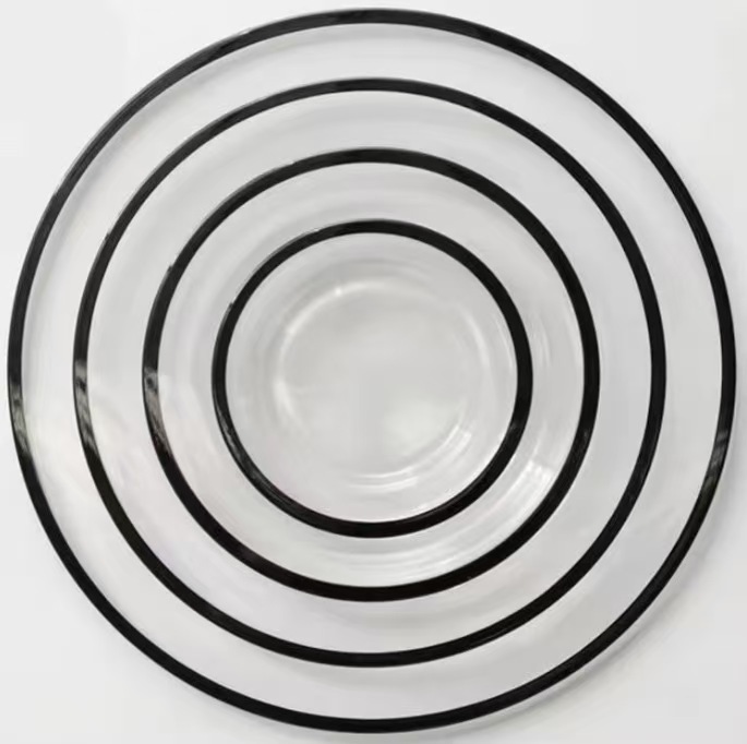 골드림 차저 플레이트 대외 무역 인기 골드림 투명 유리 접시 모던 심플 서양식 디너 플레이트스토어 가기