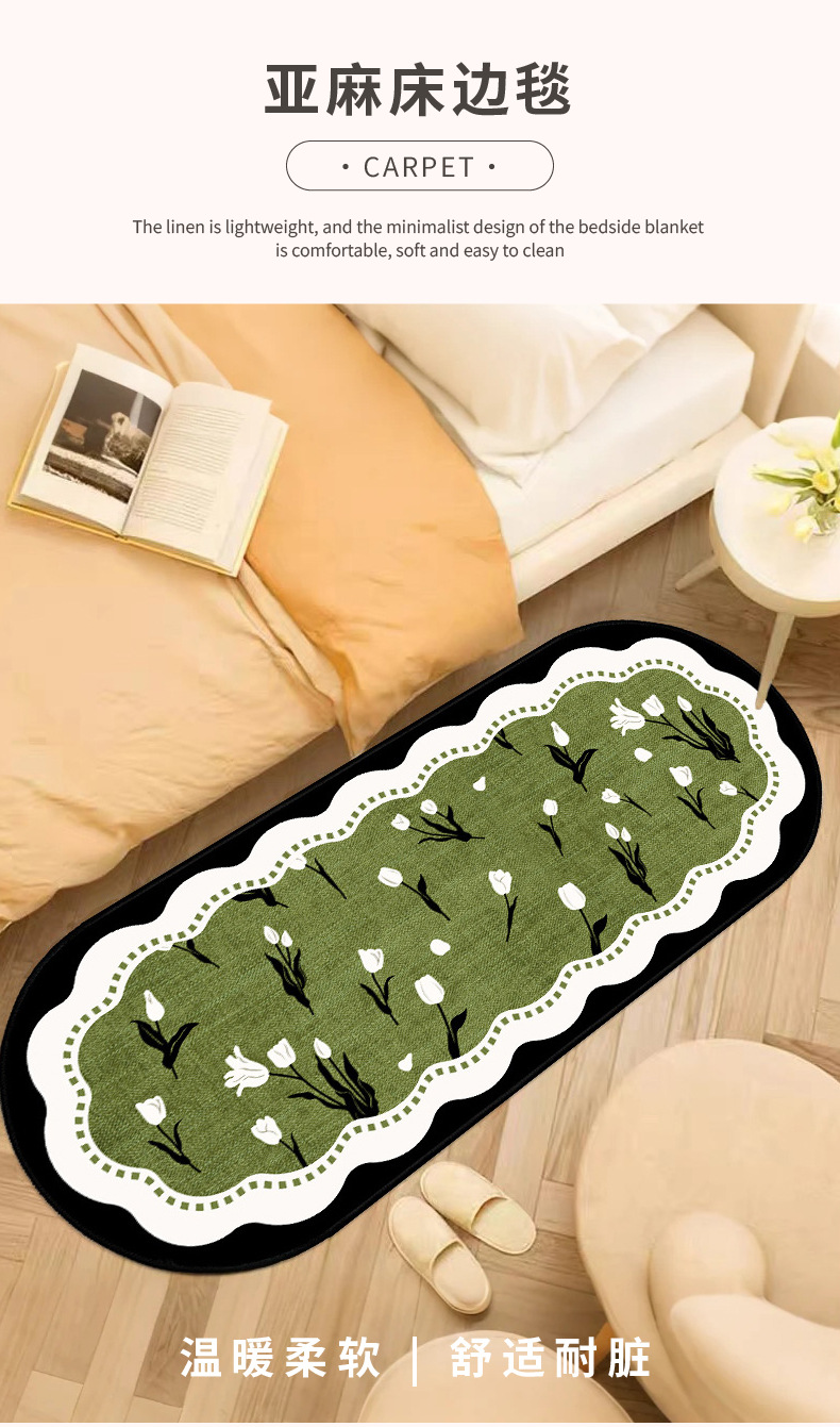 드롭 배송 녹색 중세 스타일 침실 리넨 바닥 매트 침대 옆 담요 마스터 침실 침대 앞 바닥 매트스토어 가기