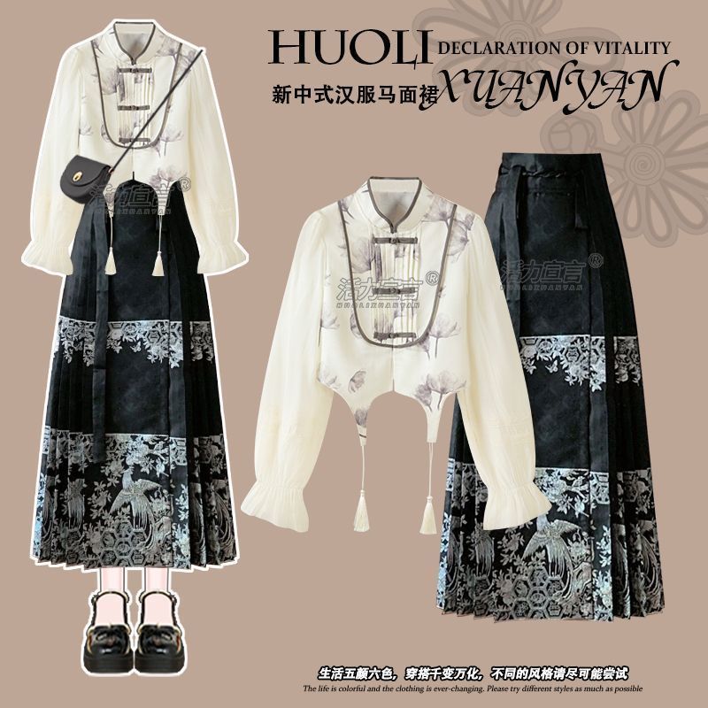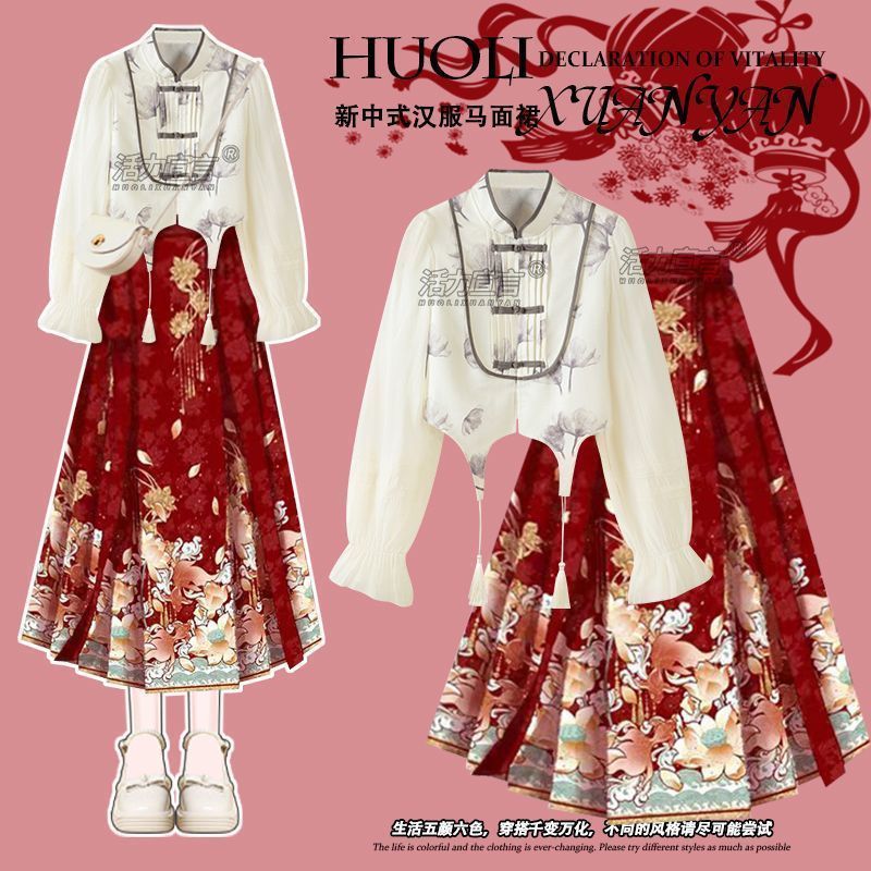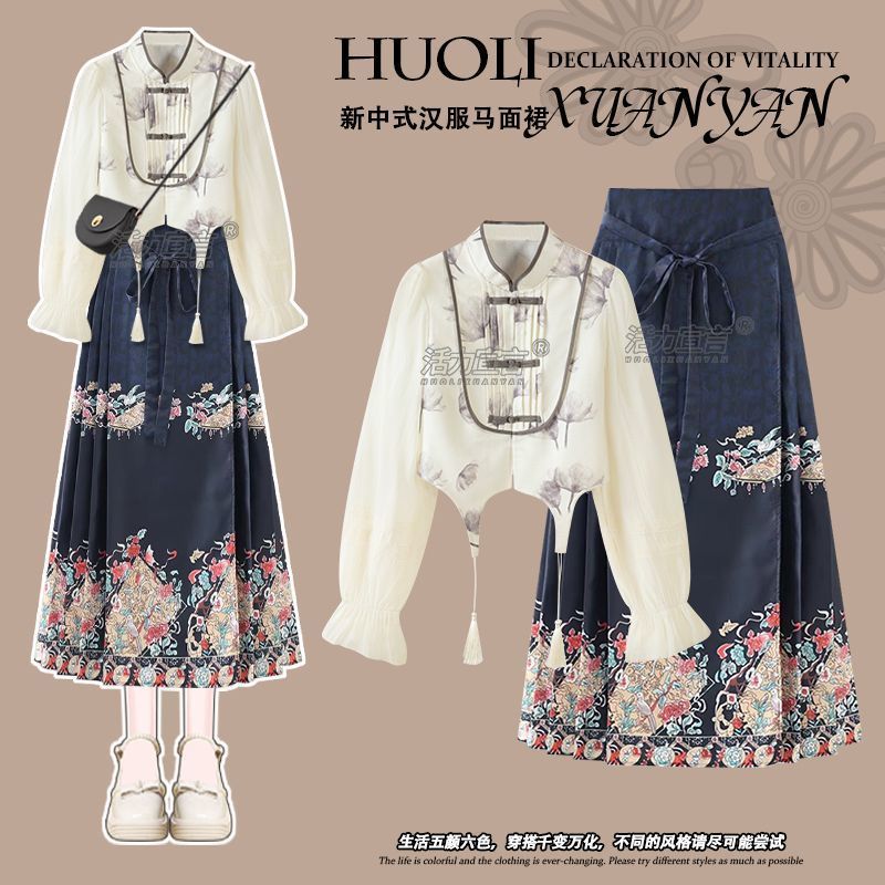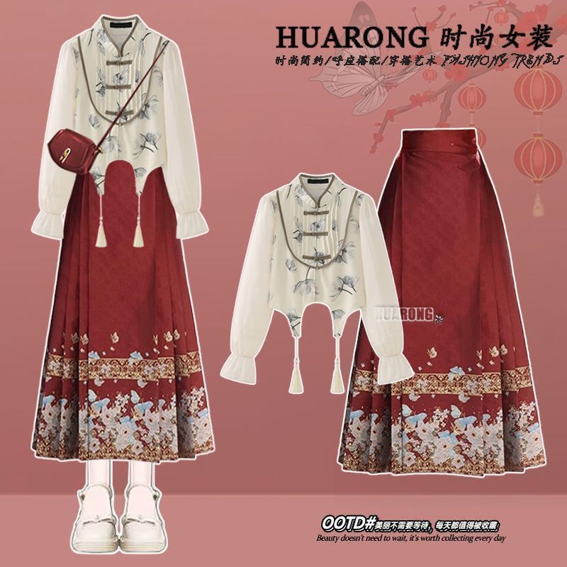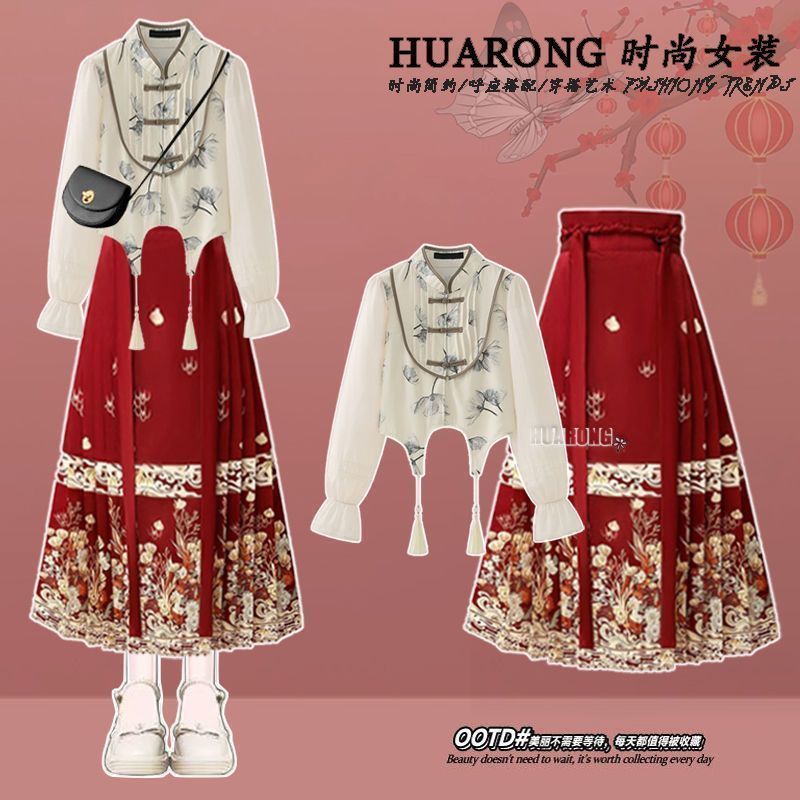 여성을 위한 새로운 중국 스타일 의류 세트 2025 새로운 스타일의 봄 의류 중국 스타일 Hanfu 탑과 말 얼굴 스커트 슈트스토어 가기