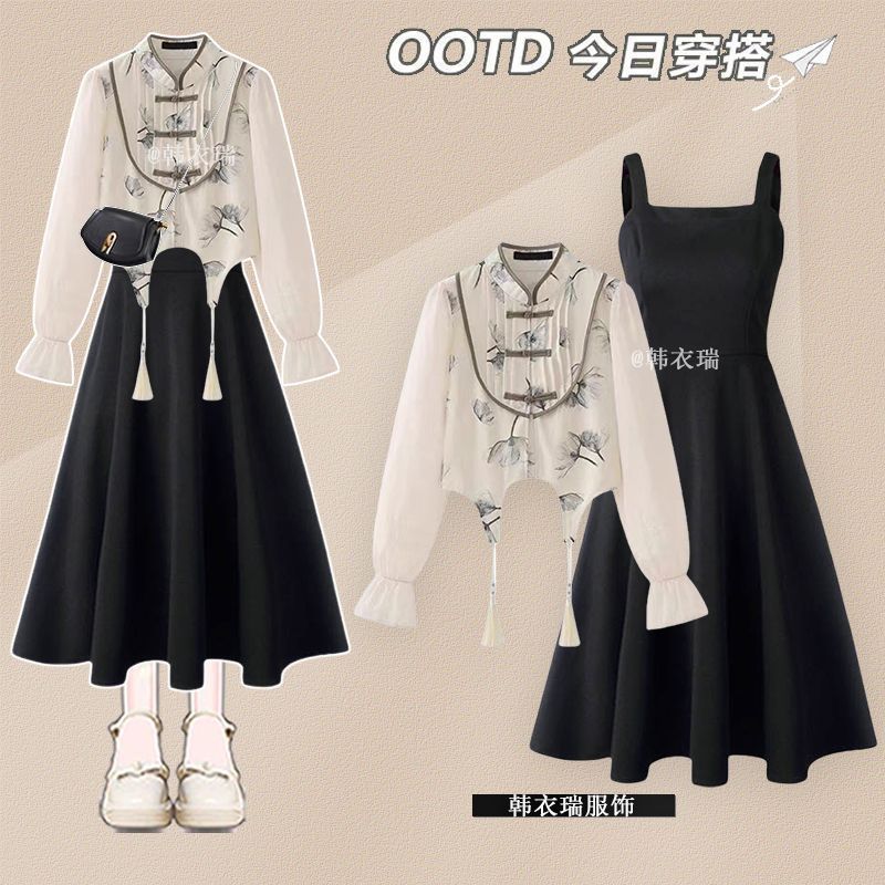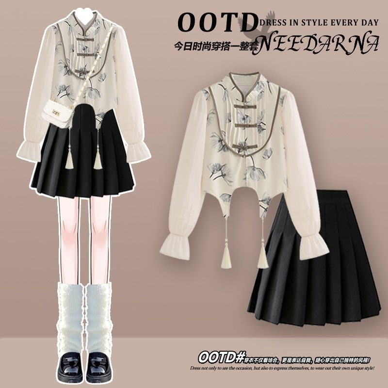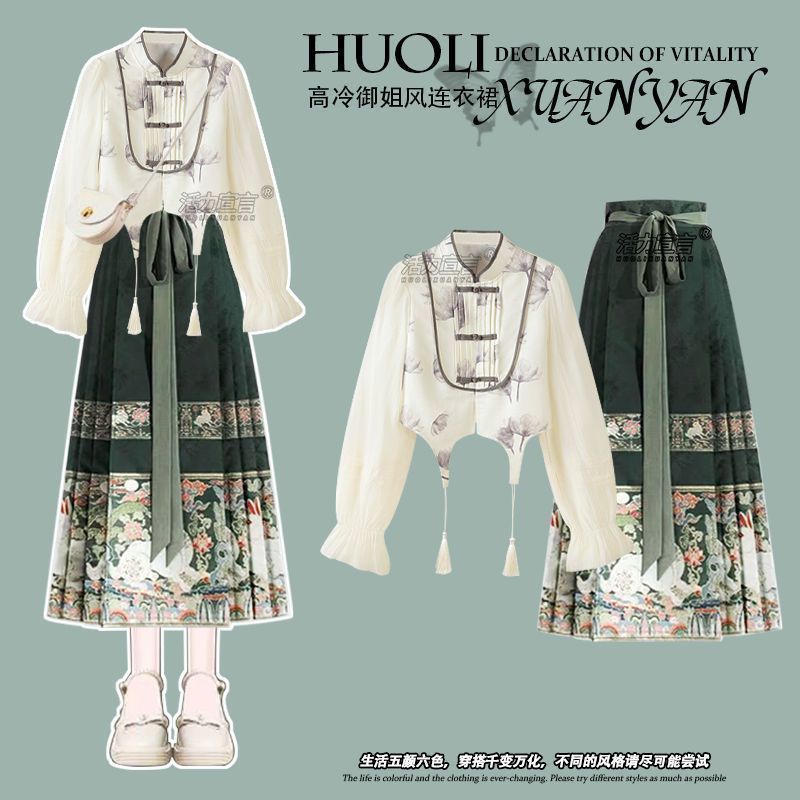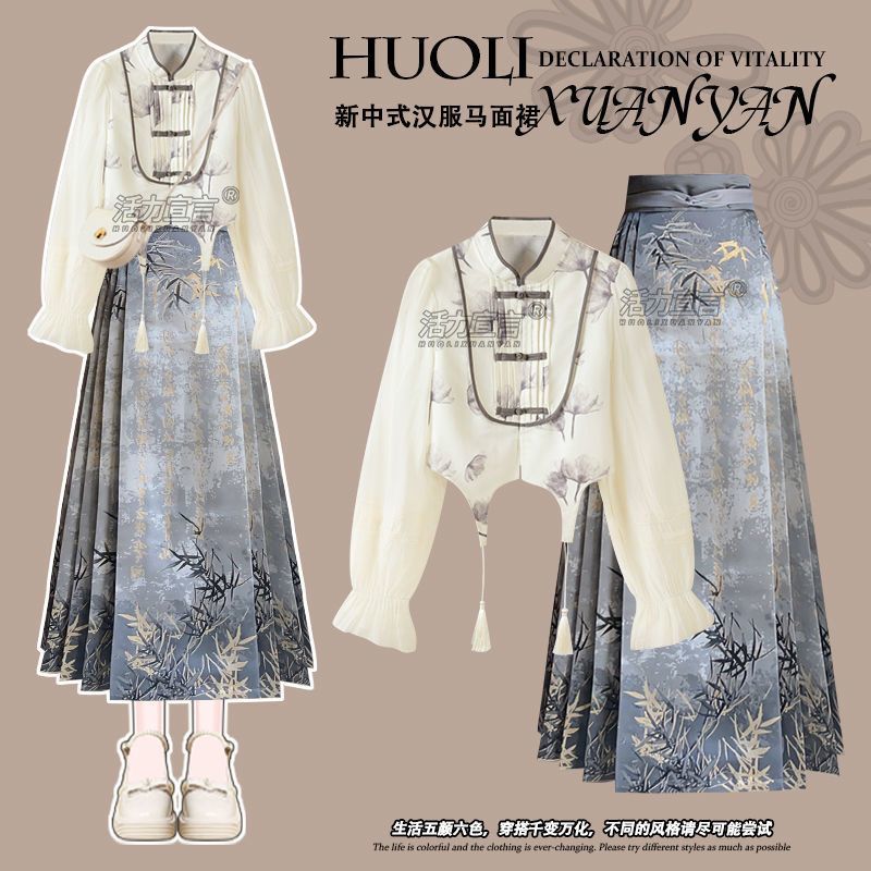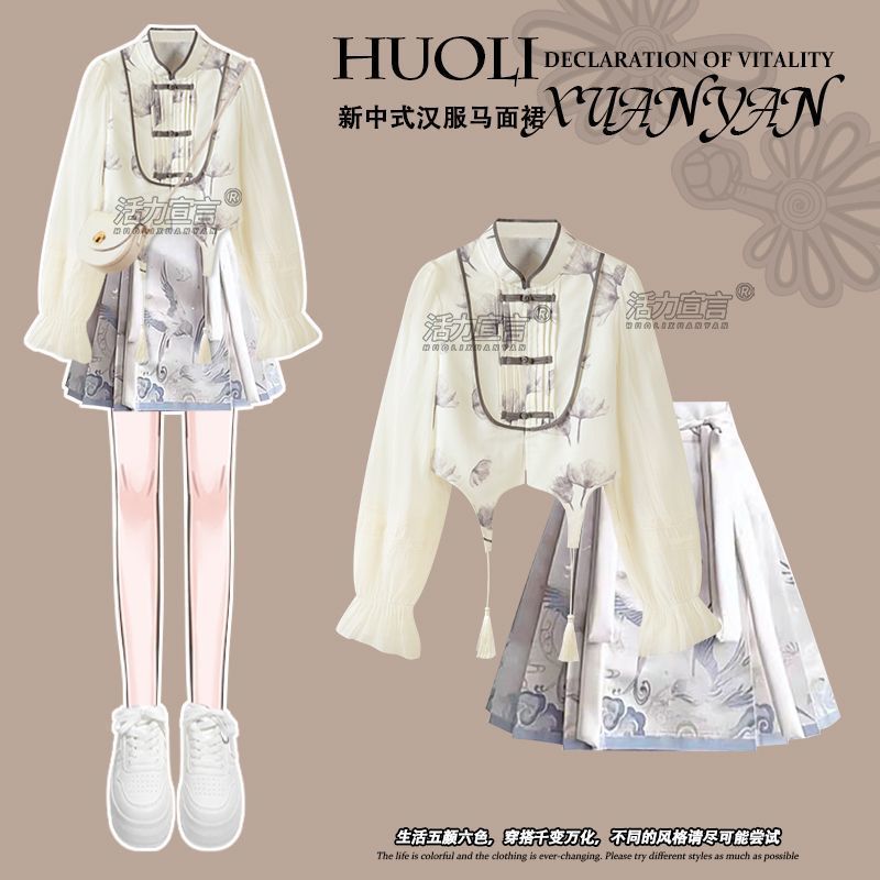 여성을 위한 새로운 중국 스타일 의류 세트 2025 새로운 스타일의 봄 의류 중국 스타일 Hanfu 탑과 말 얼굴 스커트 슈트스토어 가기