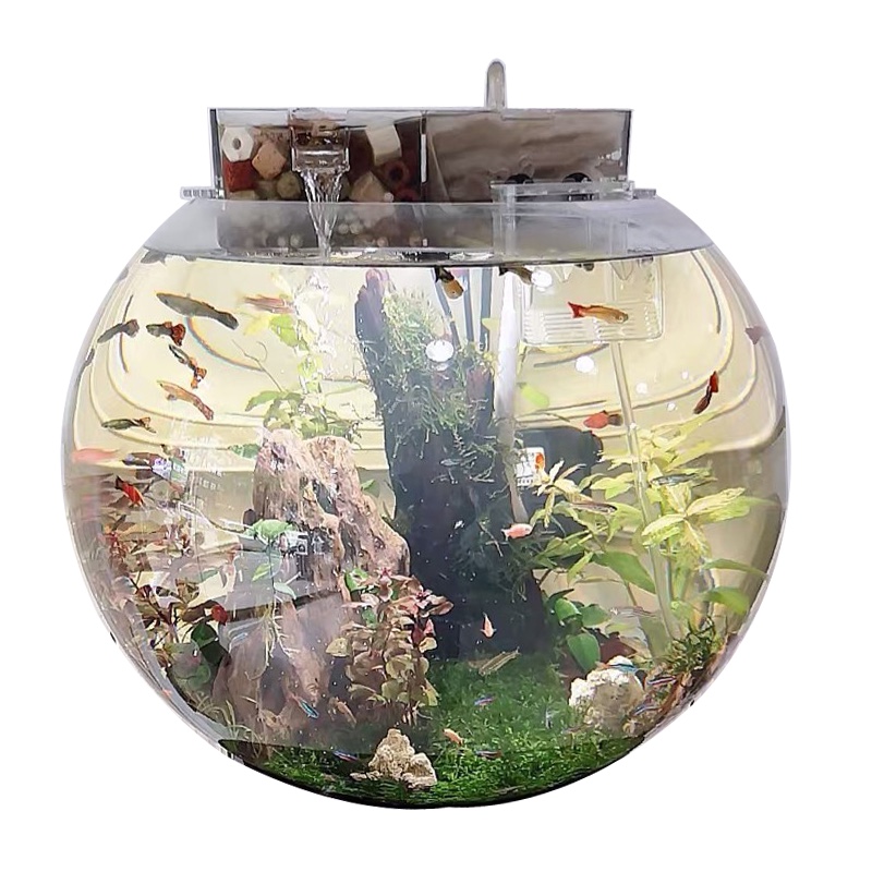 초대형 두꺼운 구형 수조 원형 투명 생태 유리 수조 데스크탑 유리 수조 거실 Metabo