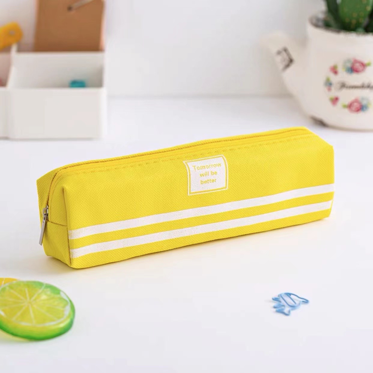 • 노란색 양 천 문구 상자