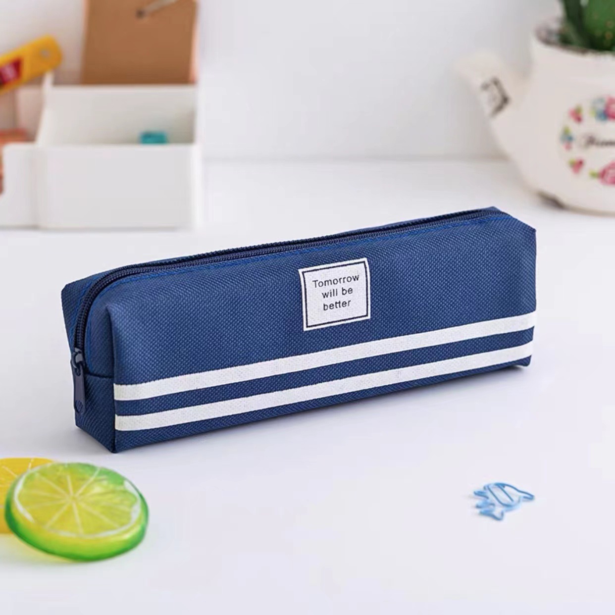 • 네이비 아보카도 천 문구 상자