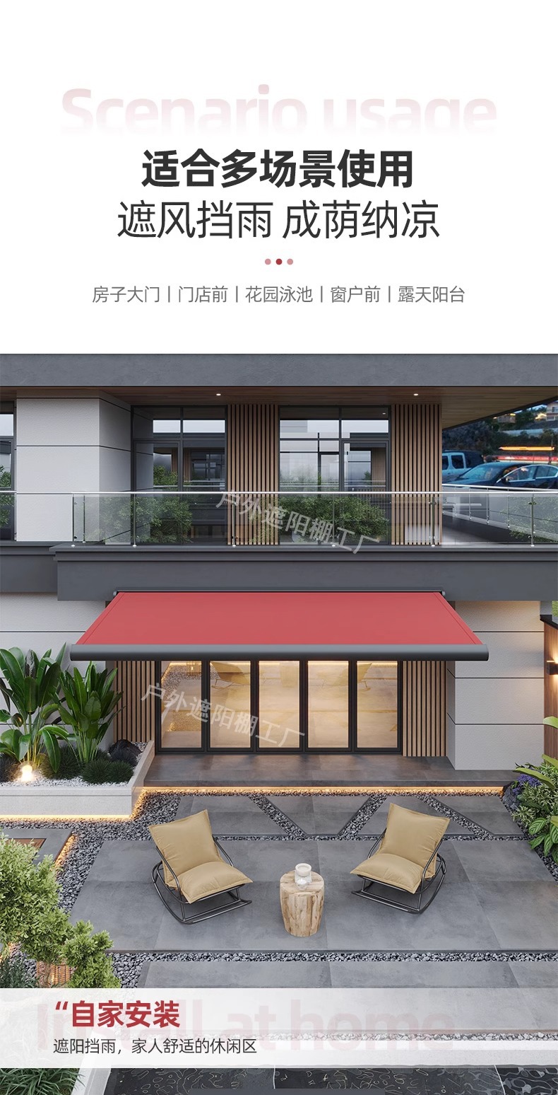 원래 제조업체 직접 판매 빌라 처마 차양 접이식 개폐식 차양 손 전동 알루미늄 합금 차양스토어 가기