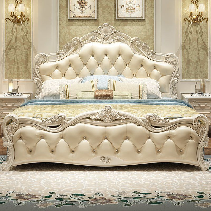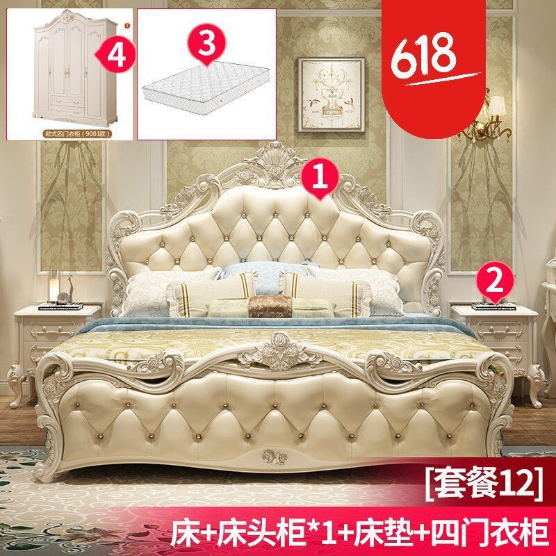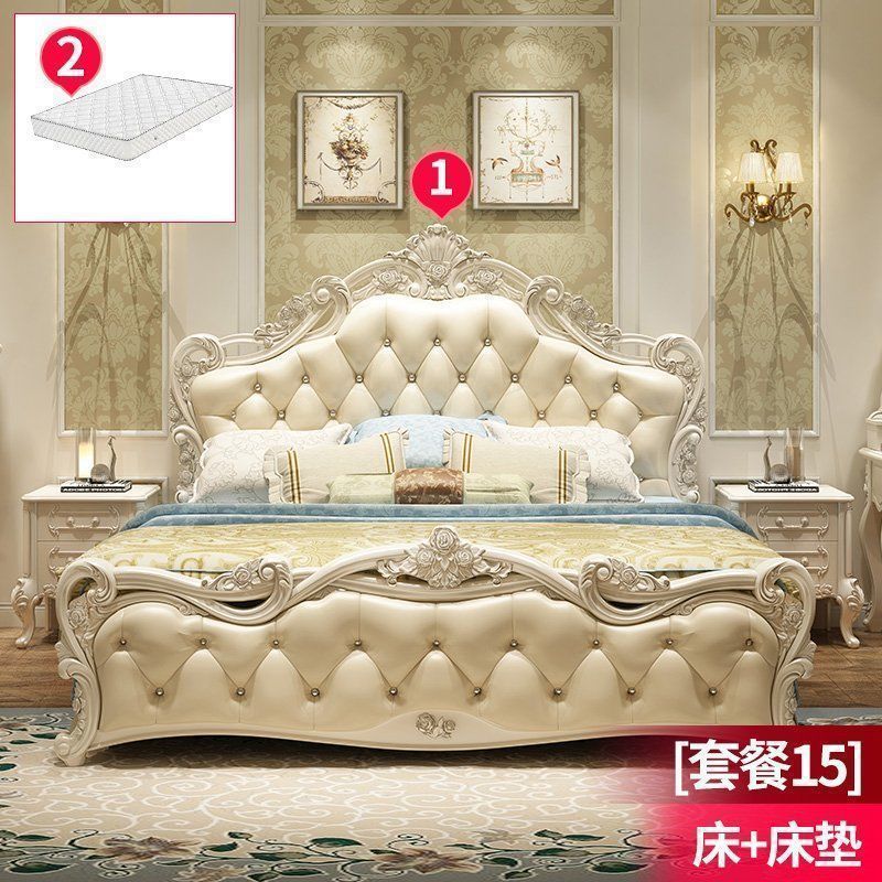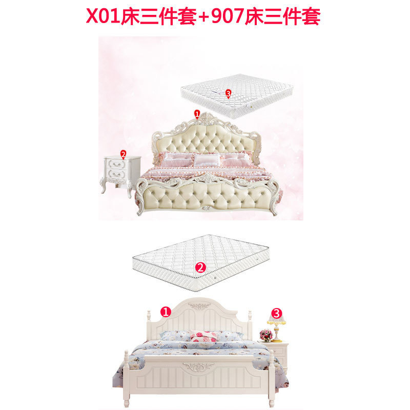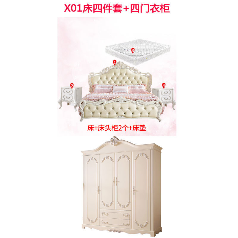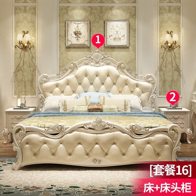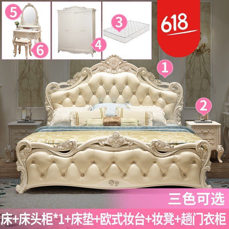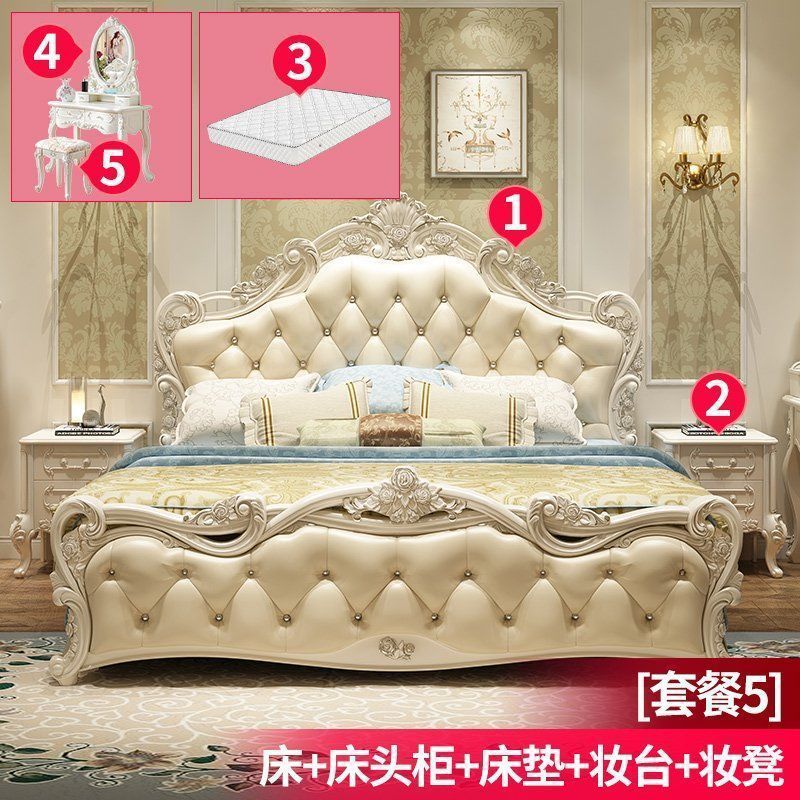 현대적인 미니멀리스트 단단한 나무 공주 침대 간단한 유럽 더블 침대 핑크 가죽 웨딩 침대 마스터 침실 가구 조합 세트스토어 가기