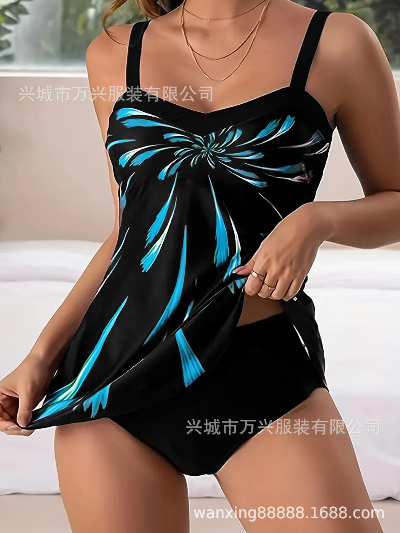 2025 유럽과 미국의 새로운 크로스보더 서스펜더 스플릿 수영복 여성 스커트 스타일 비키니 섹시 슬리밍 수영복 비키니