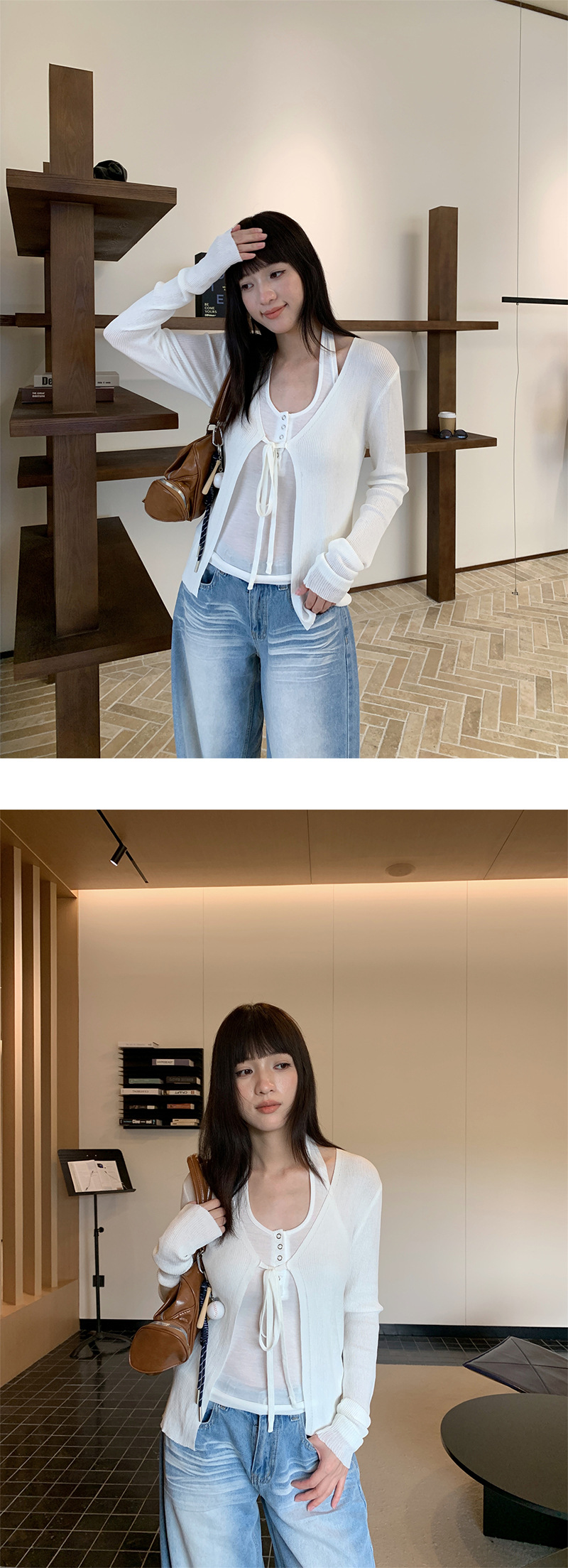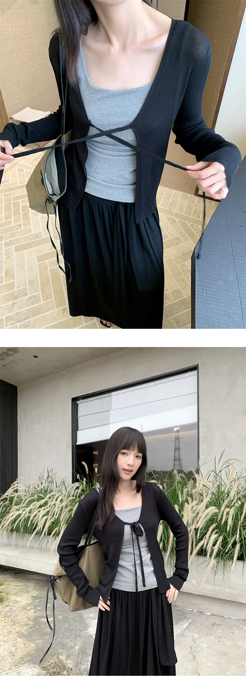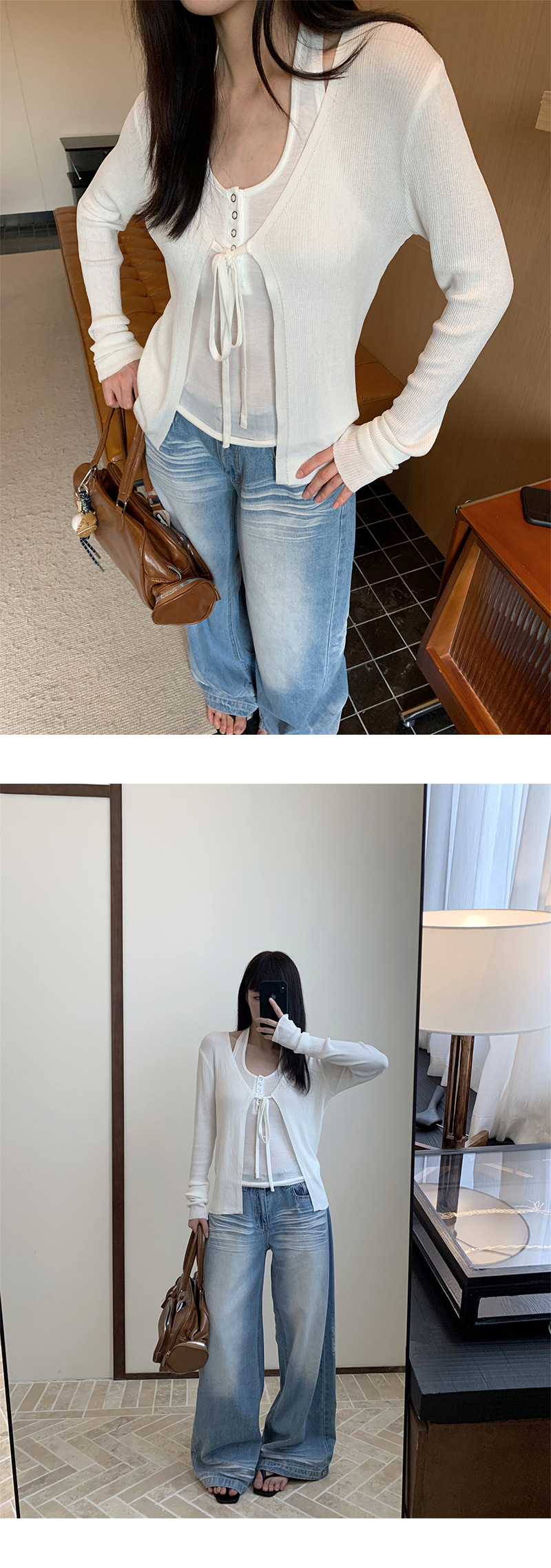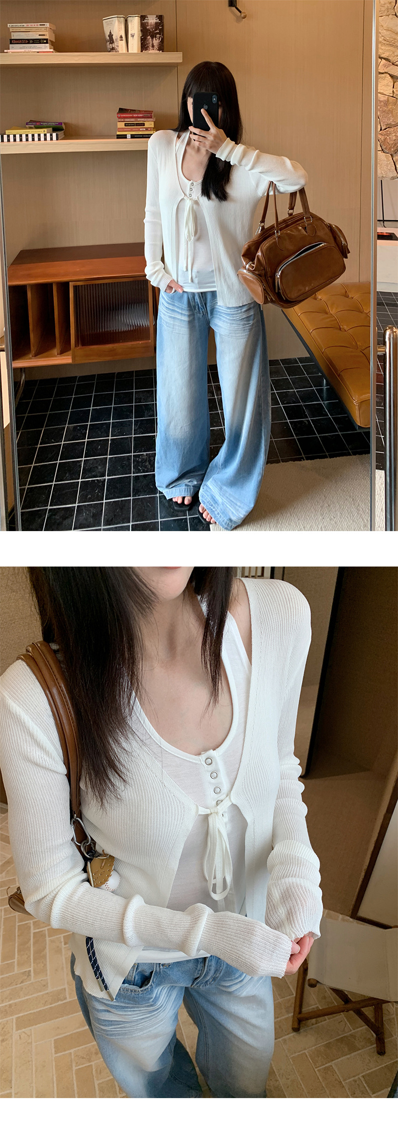 Yuyi 신상 2025 여름 한국 스타일 레이스 업 니트 가디건 여성스러운 긴팔 탑 여성 m11355스토어 가기