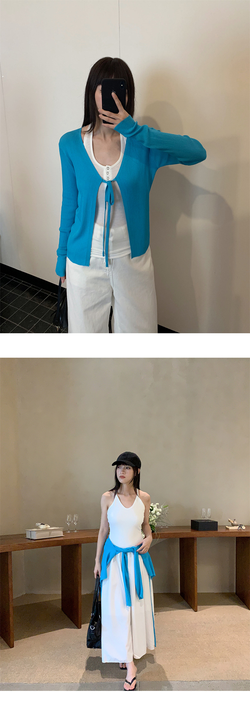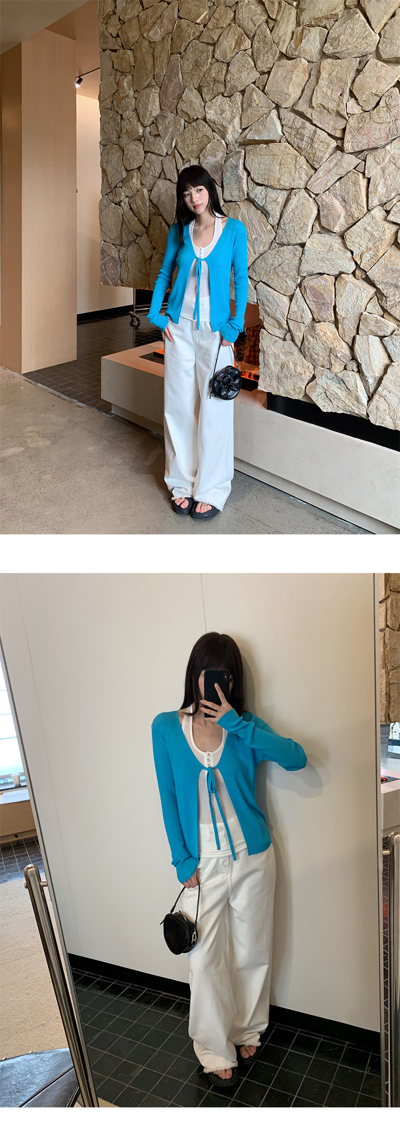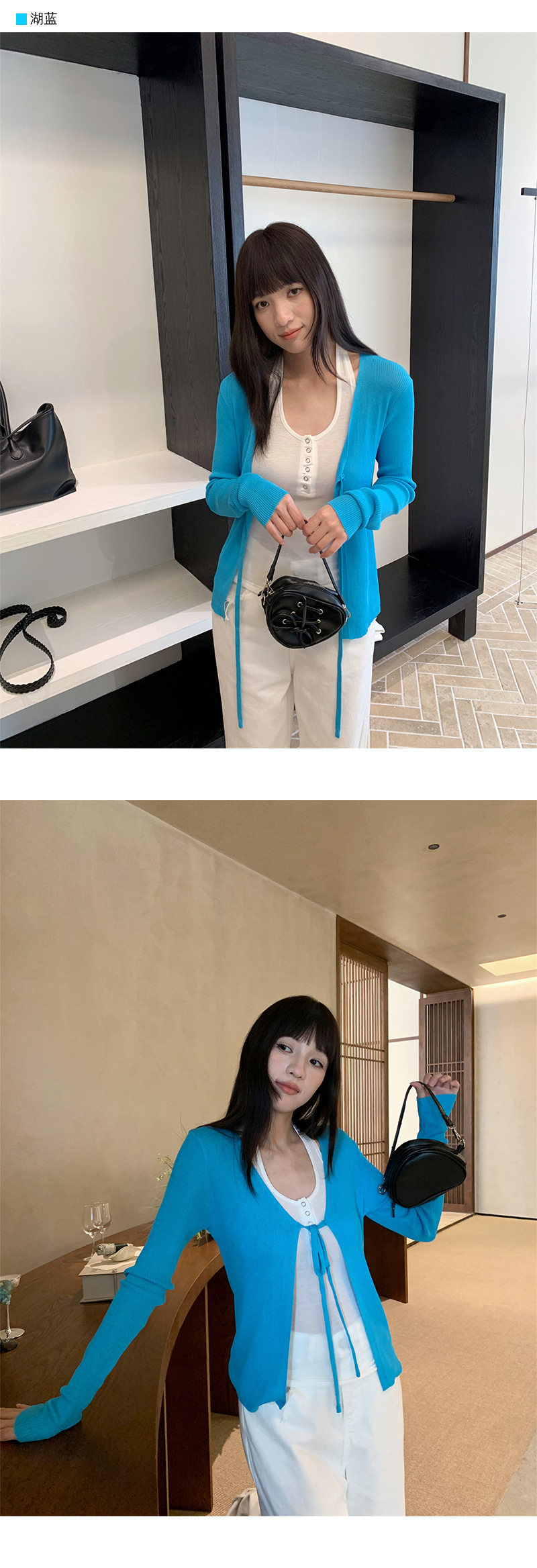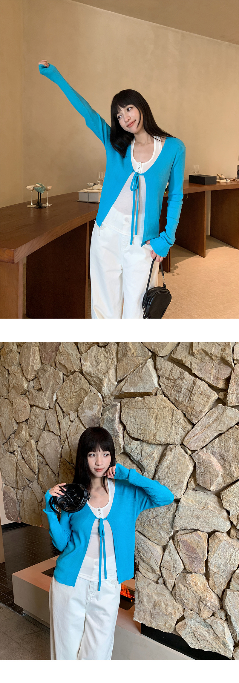 Yuyi 신상 2025 여름 한국 스타일 레이스 업 니트 가디건 여성스러운 긴팔 탑 여성 m11355스토어 가기