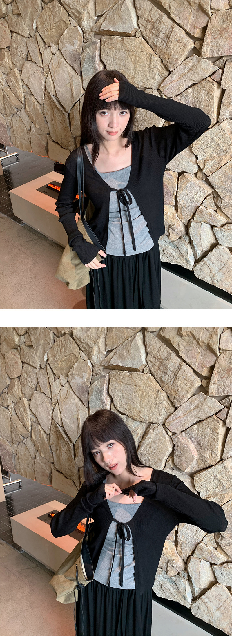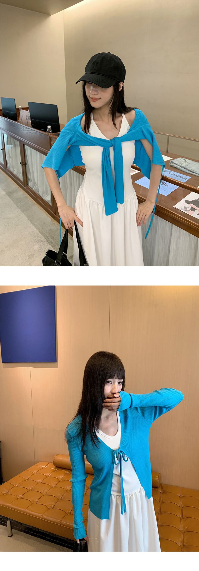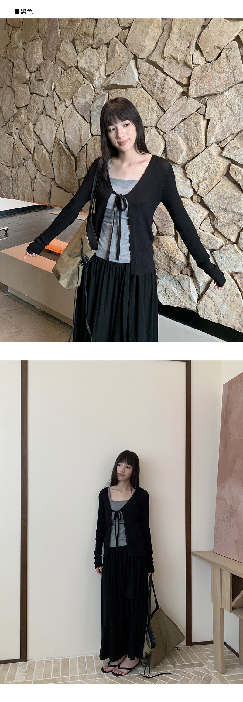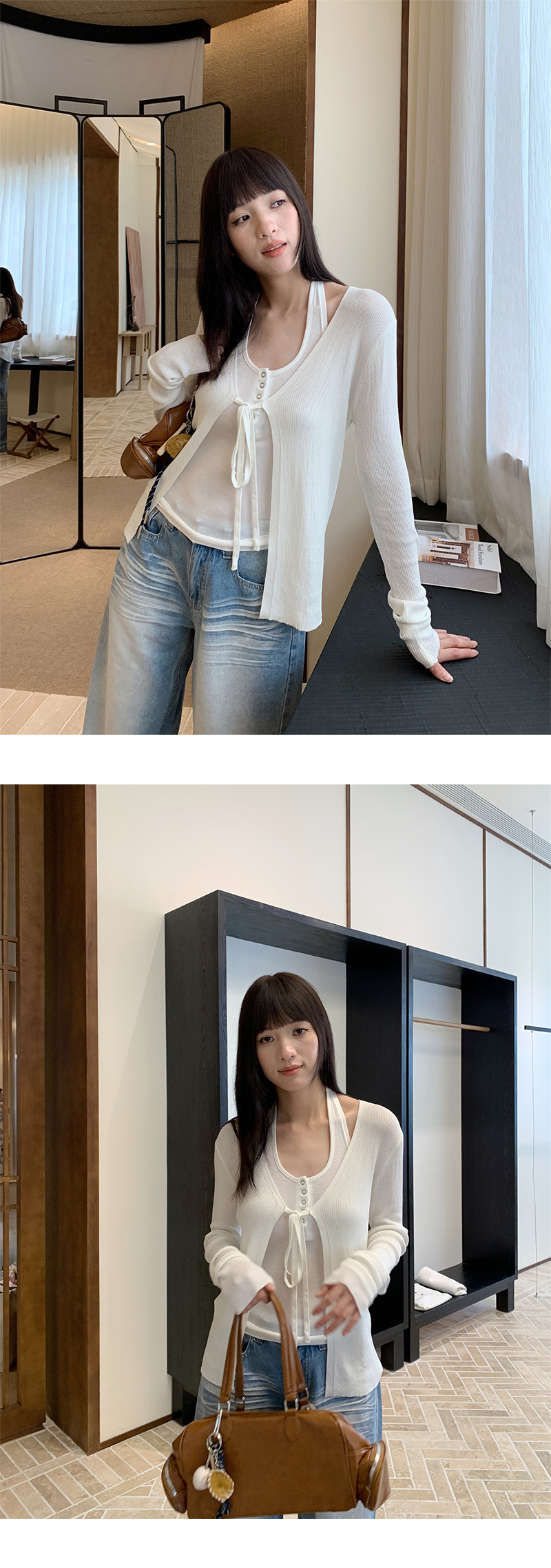 Yuyi 신상 2025 여름 한국 스타일 레이스 업 니트 가디건 여성스러운 긴팔 탑 여성 m11355스토어 가기