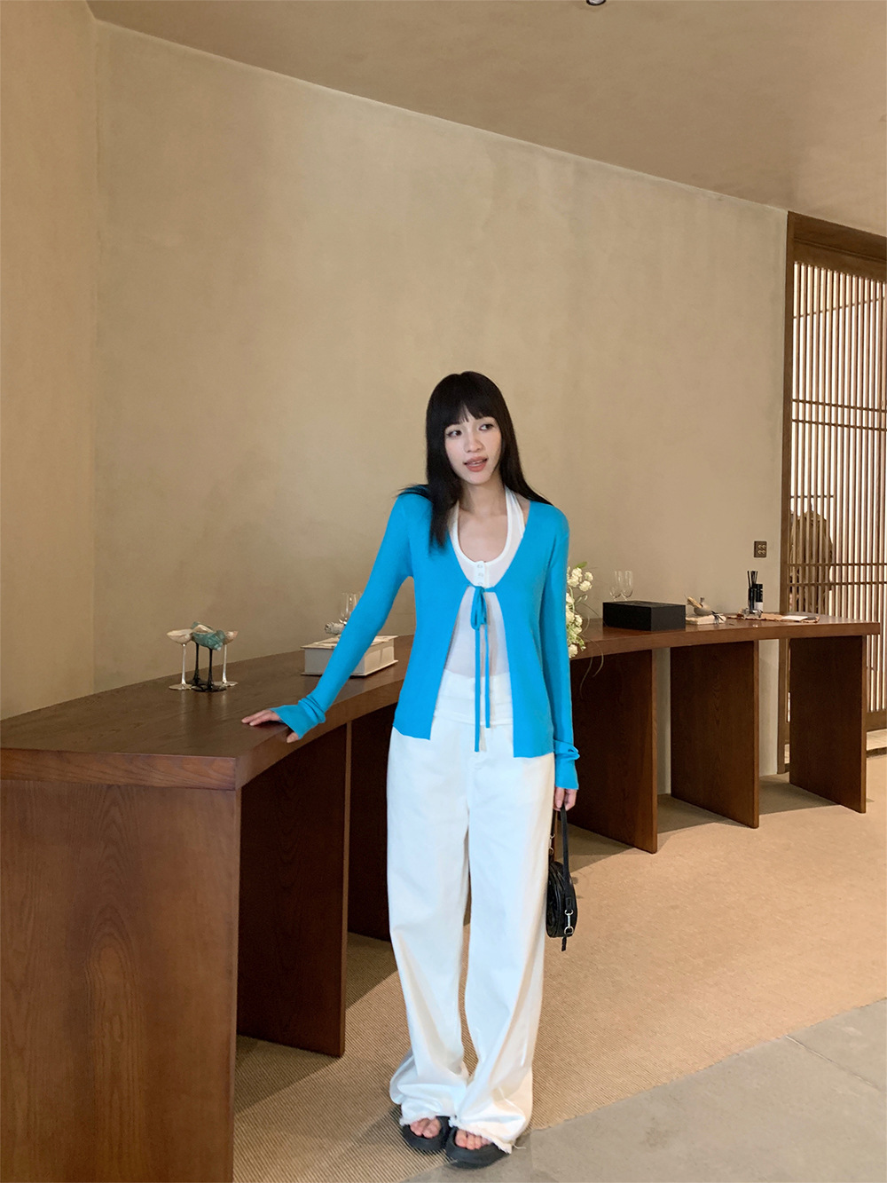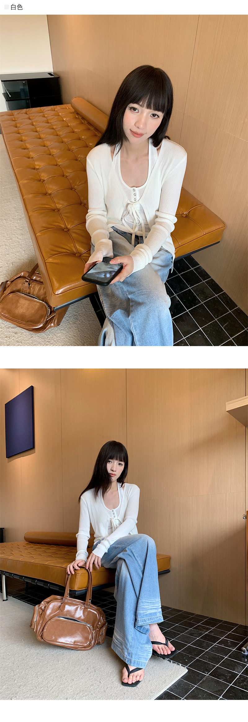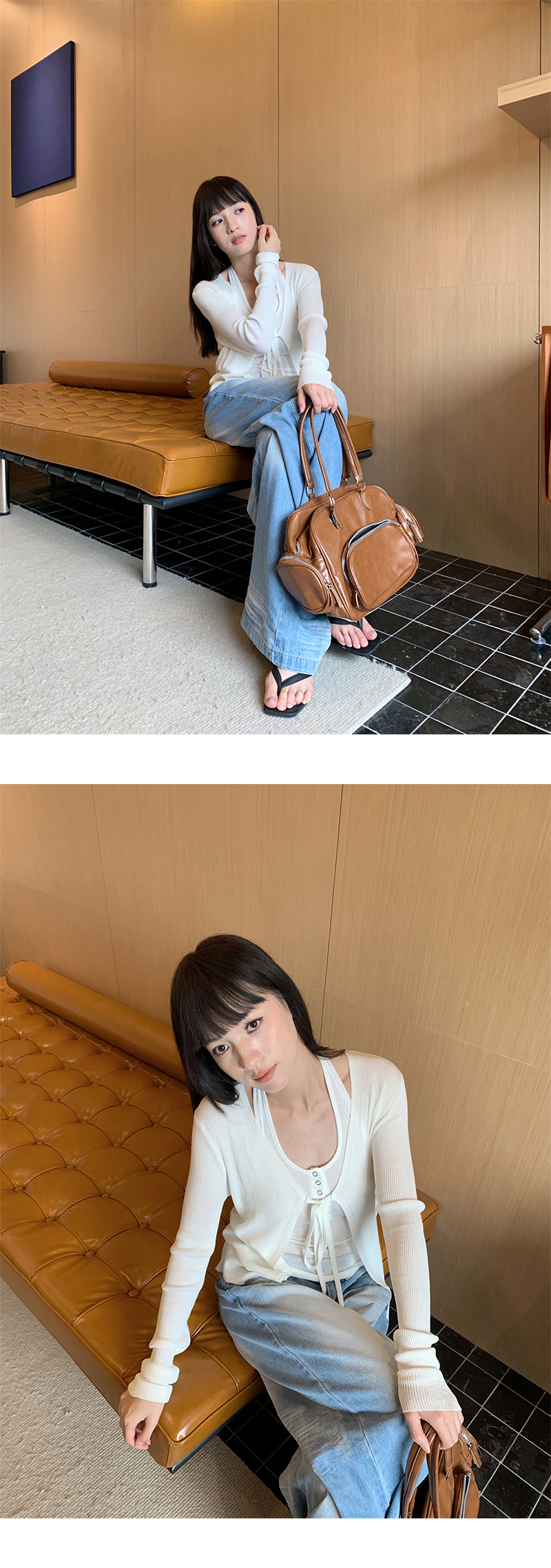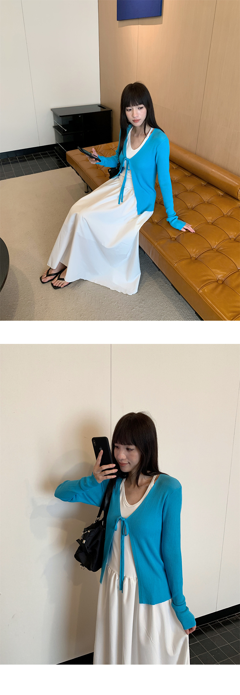 Yuyi 신상 2025 여름 한국 스타일 레이스 업 니트 가디건 여성스러운 긴팔 탑 여성 m11355스토어 가기