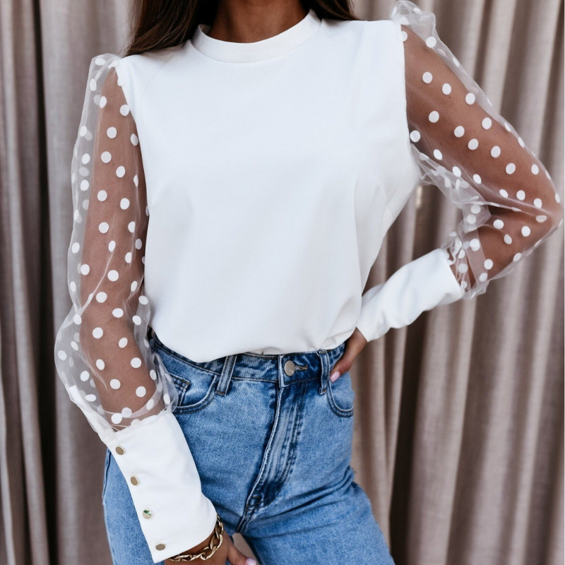 새로운 캐주얼 쉬폰 셔츠/풀오버 레이스 셔츠 봄 옷 하프 하이 칼라 레이스 슬리브스토어 가기