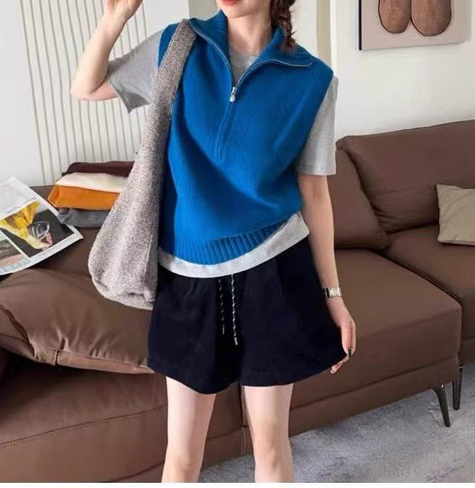 심플한 스타일의 하프 지퍼 니트 조끼 여성 가을 신상 레이어드 아우터 시크한 연령 감소 조끼 탑스토어 가기